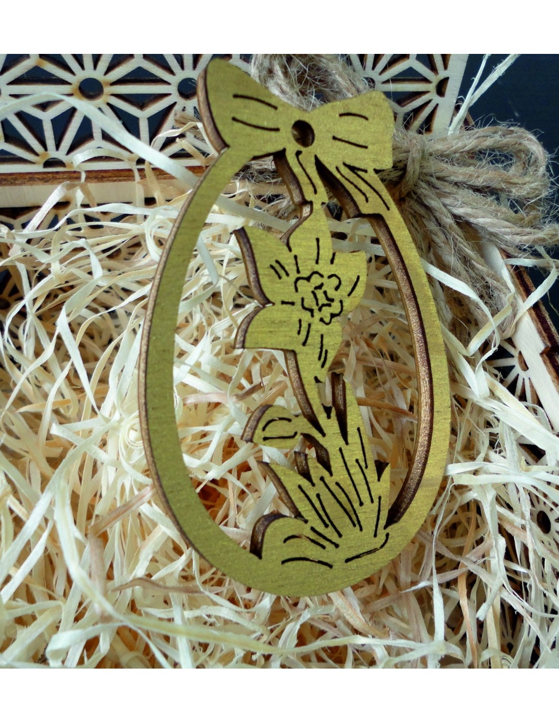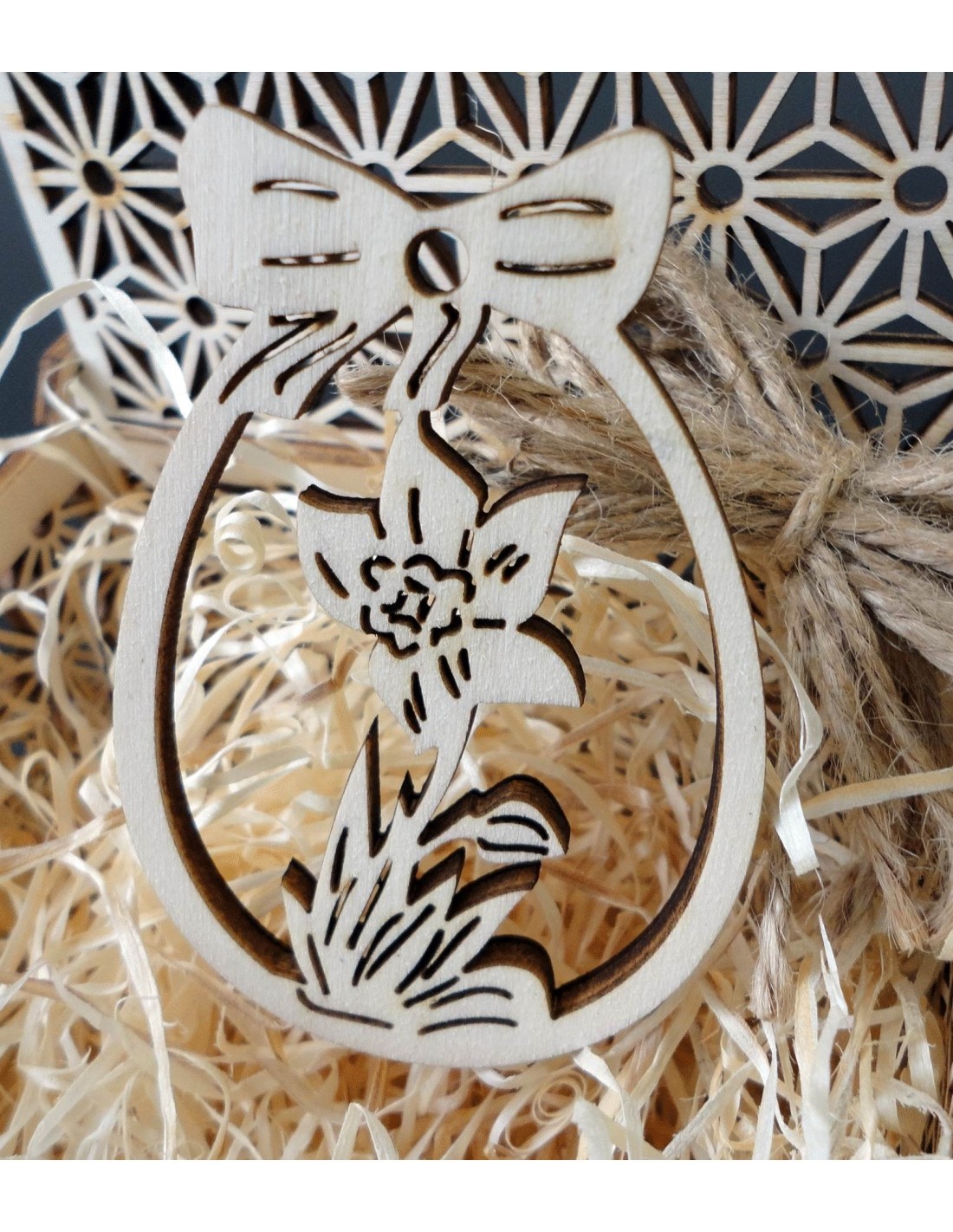 Ożyw swój dom tym wyjątkowym, dekoracyjnym, drewnianym jajkiem, które idealnie sprawdzi się na każdą okazję. Jajko wykonane jest z wysokiej jakości drewna i ma elegancki, rzeźbiony wzór z motywem kwiatowym i kokardą . To połączenie dodaje jajku gracji i uroku. Rzeźbiony motyw kwiatowy z kokardą jest nie tylko estetyczny, ale i symboliczny, dzięki czemu idealnie nadaje się na wielkanocne uroczystości lub do dekoracji wnętrz. Jajko wykonane jest z wysokiej jakości sklejki, co gwarantuje trwałość i wytrzymałość, a jego naturalny wygląd dodaje przytulnego i ciepłego akcentu. Można je po prostu postawić na stole, półce lub wykorzystać do stworzenia kompozycji z innymi dekoracjami.