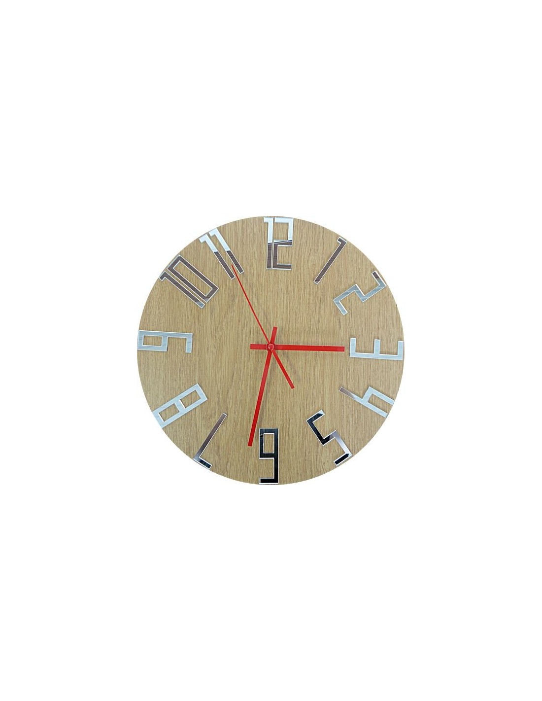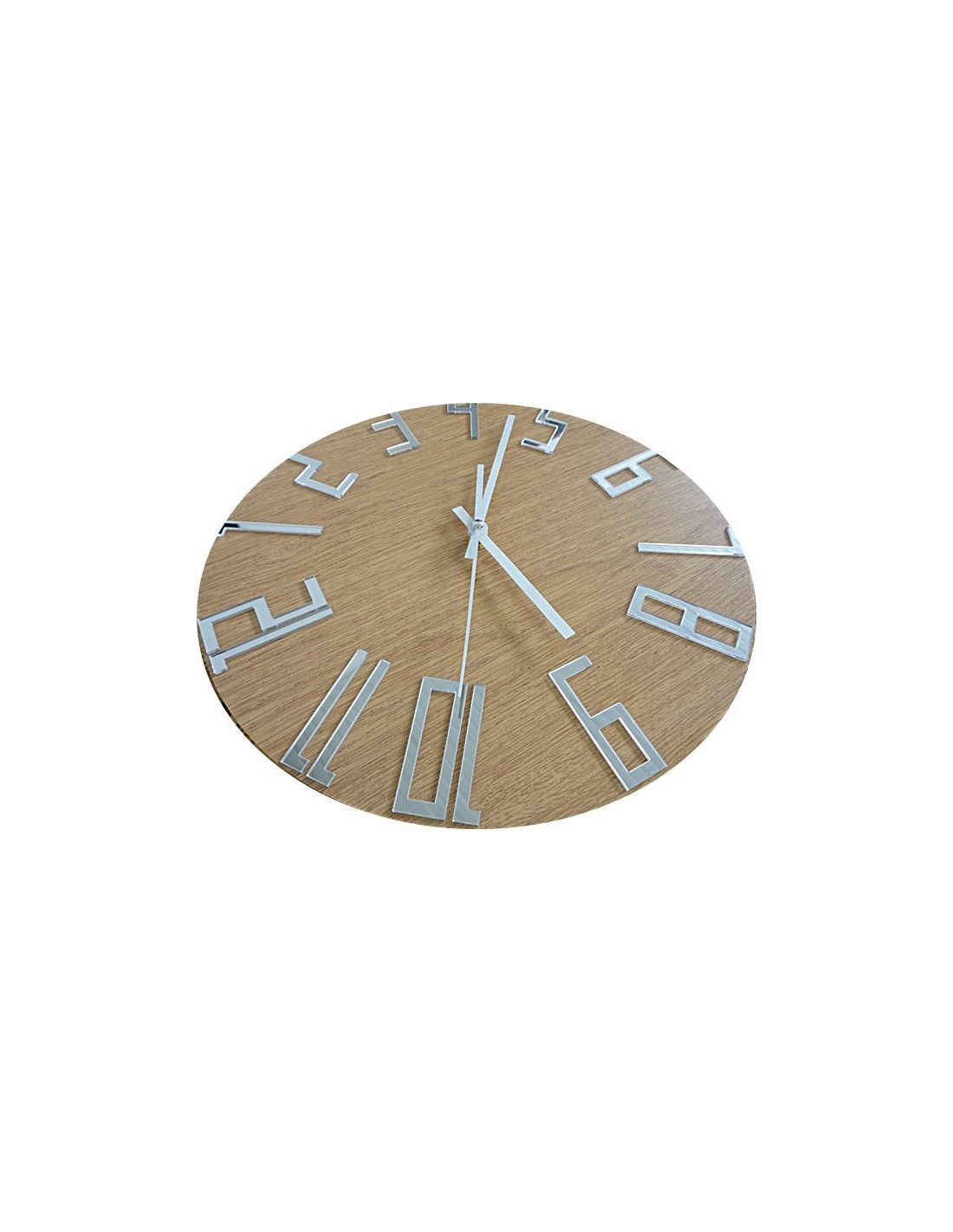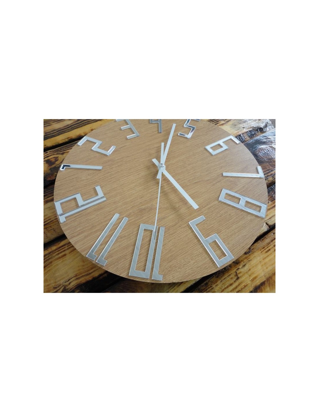 Nowoczesny zegar ścienny z cyframi Dąb - Srebrny I SENTOP HDFK006