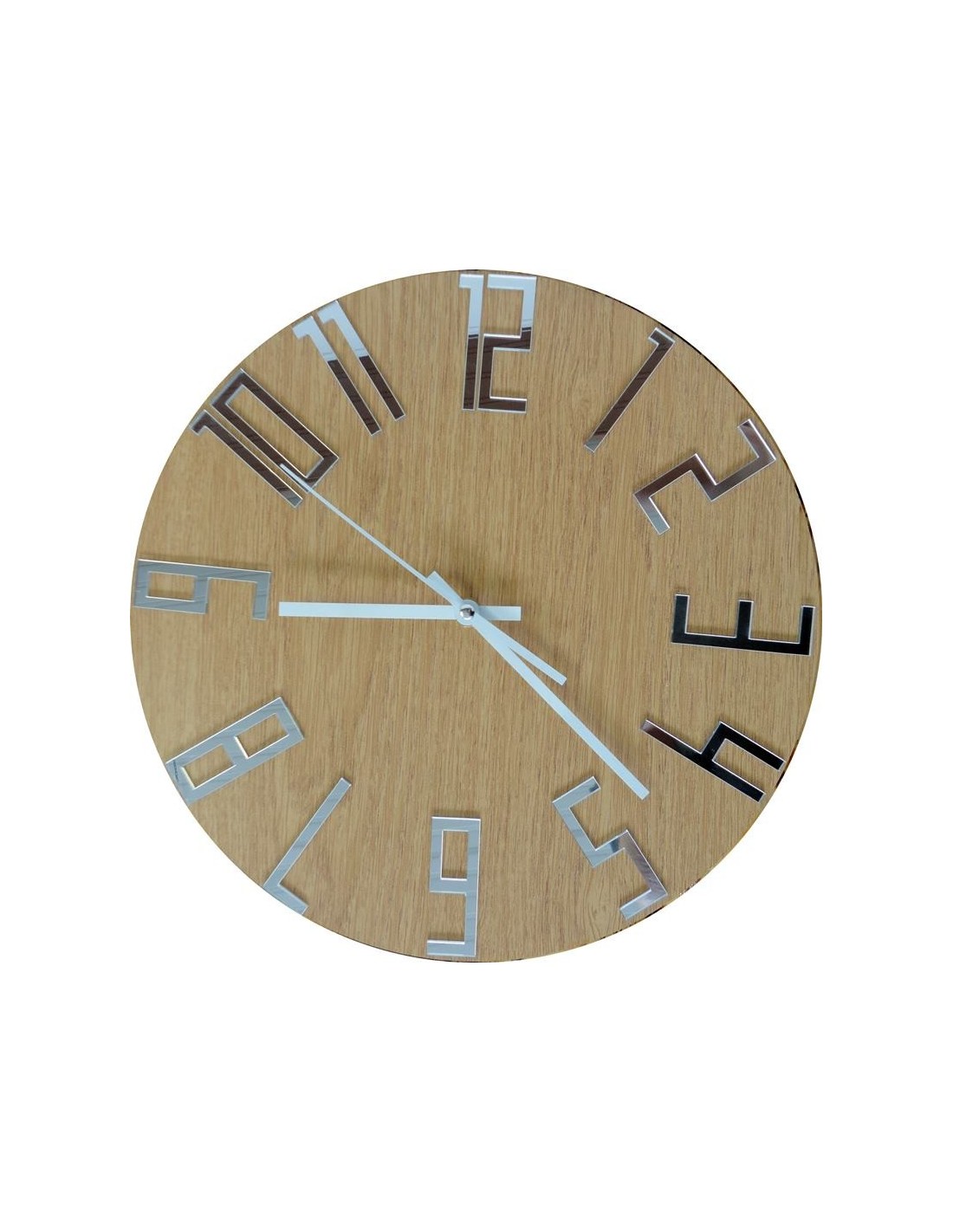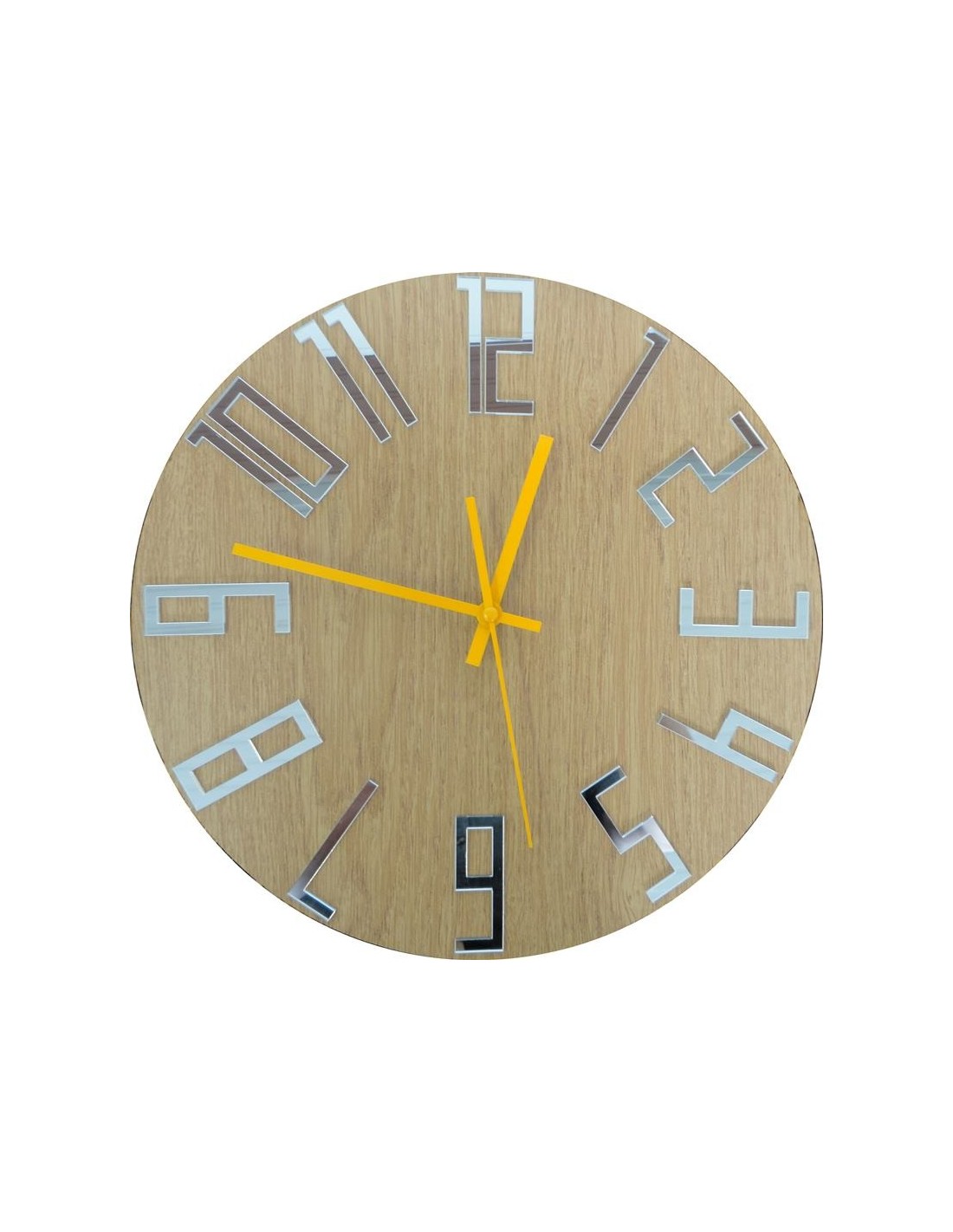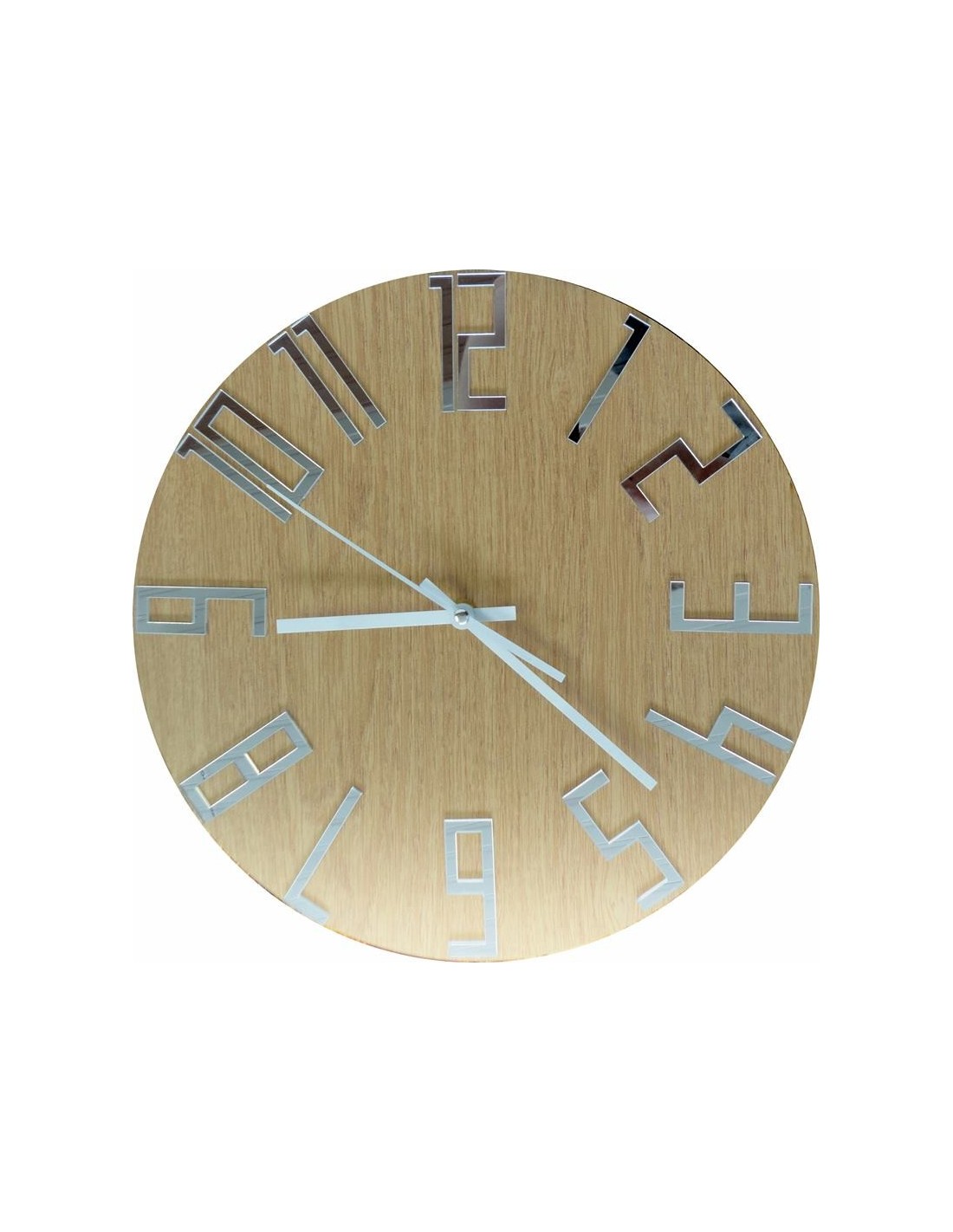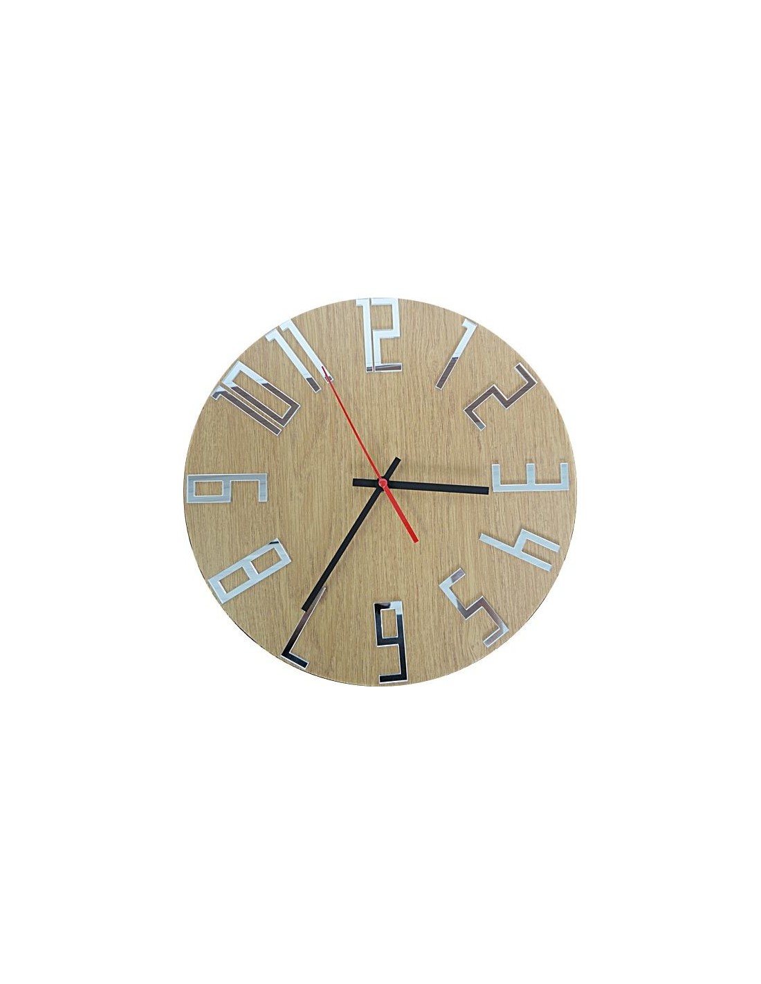 Nowoczesny zegar ścienny z cyframi Dąb - Srebrny I SENTOP HDFK006