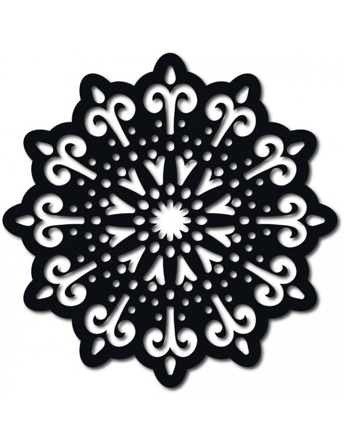 Ten elegancki, okrągły obraz przedstawia misterny wzór inspirowany tradycyjnymi koronkami lub mandalami.
