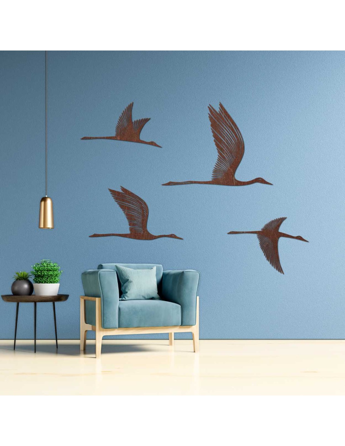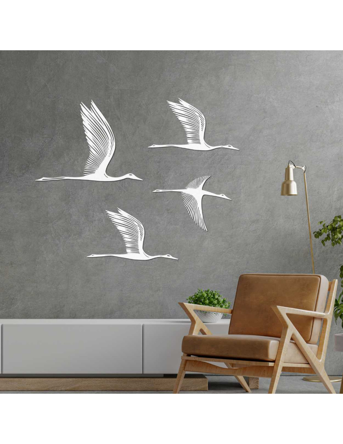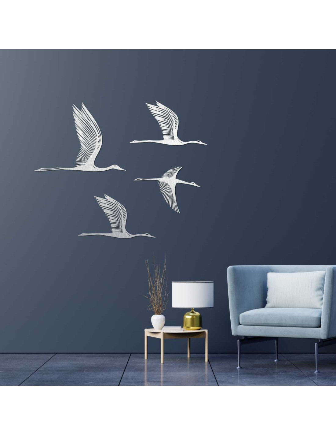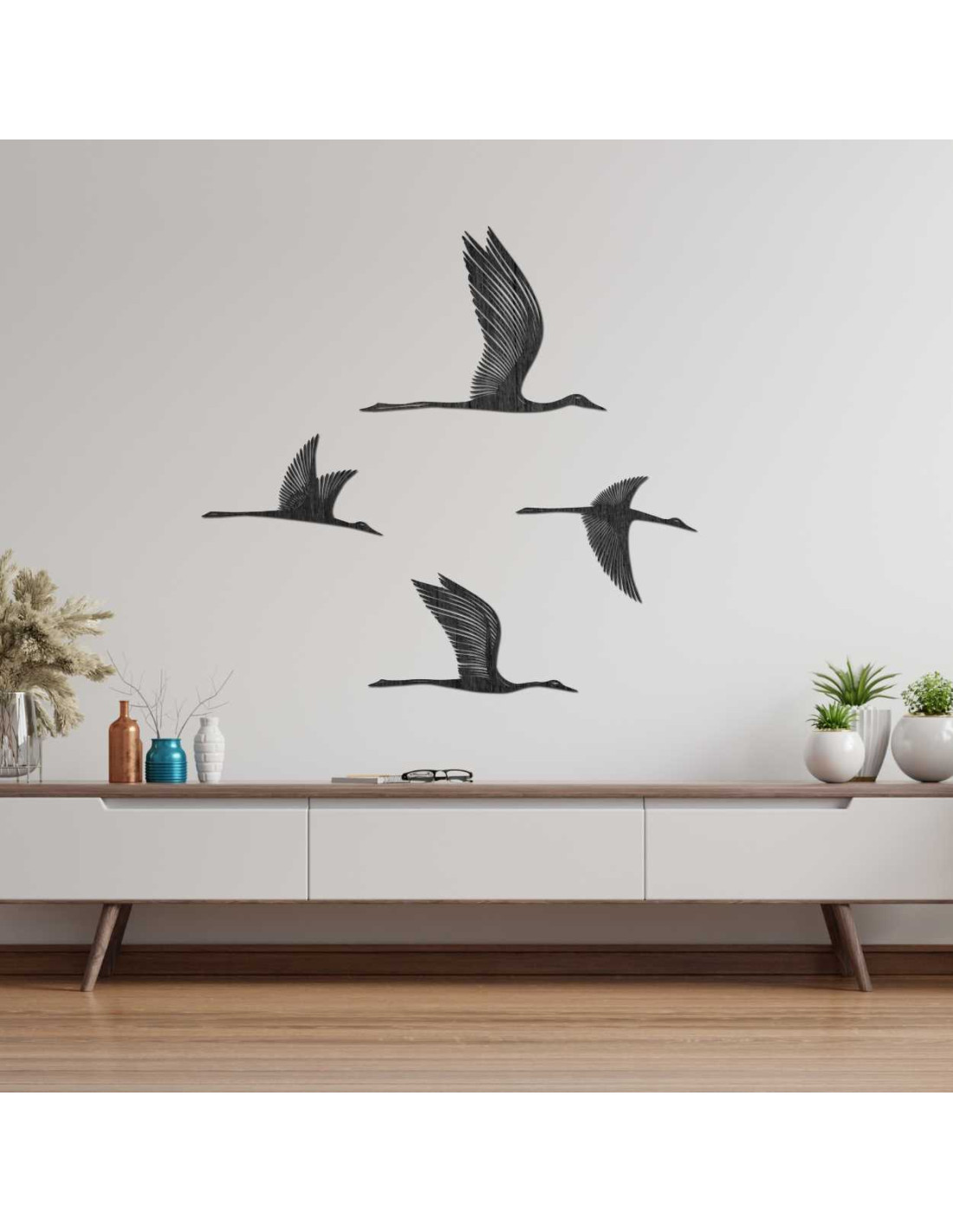 Drewniana dekoracja ścienna z czterema latającymi ptakami w stylu minimalistycznym