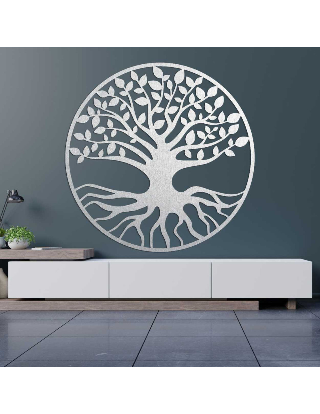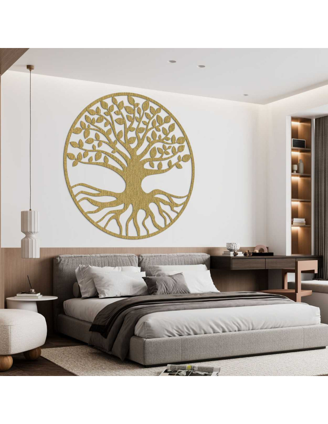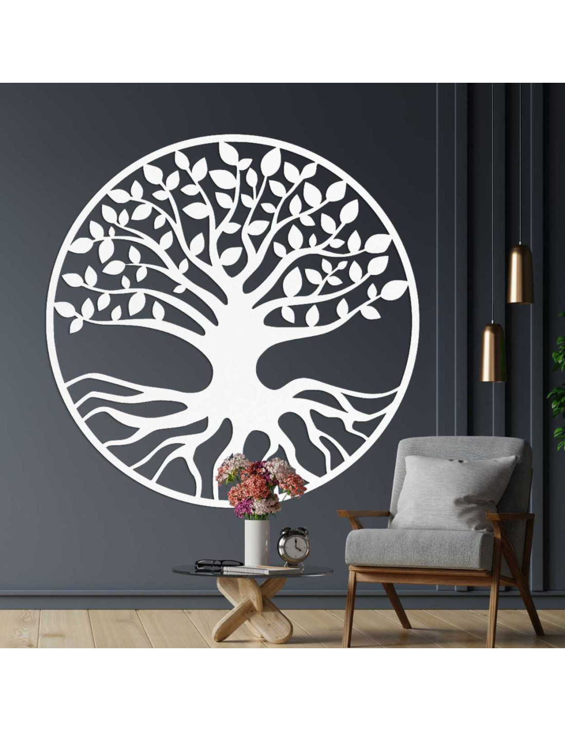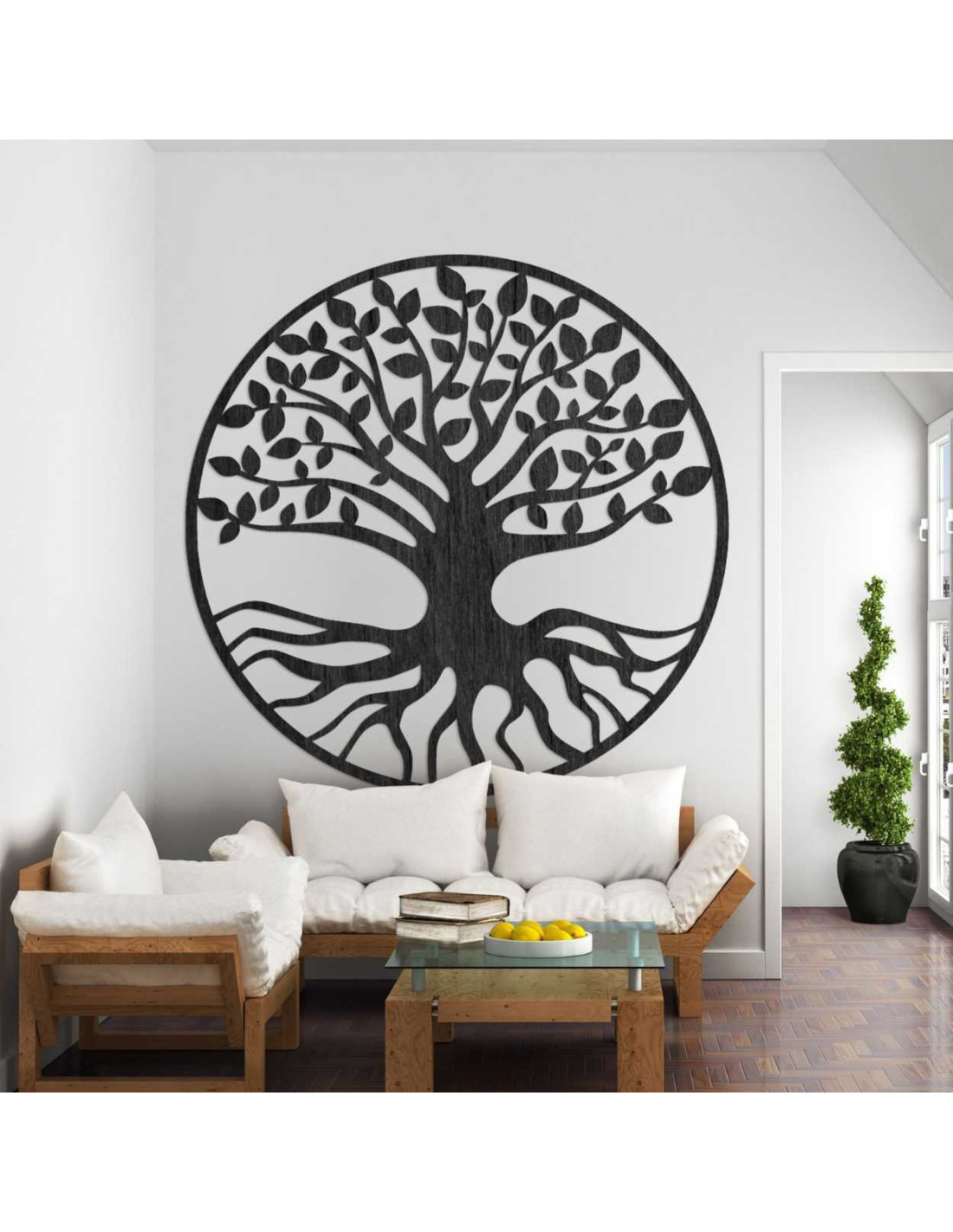 Elegancka drewniana dekoracja przedstawia symbol drzewa życia - związek wzrostu, siły i równowagi.