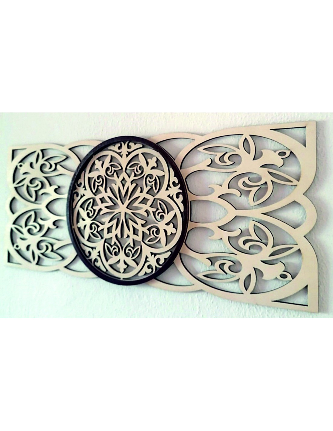 Panel charakteryzuje się precyzyjnie rzeźbionym ornamentem, który pięknie odbija światło, tworząc ciekawe refleksy i cienie . Połączenie jasnych i ciemnych kolorów nadaje temu dziełu głębi i kontrastu wizualnego, który natychmiast przyciągnie uwagę wszystkich odwiedzających.
