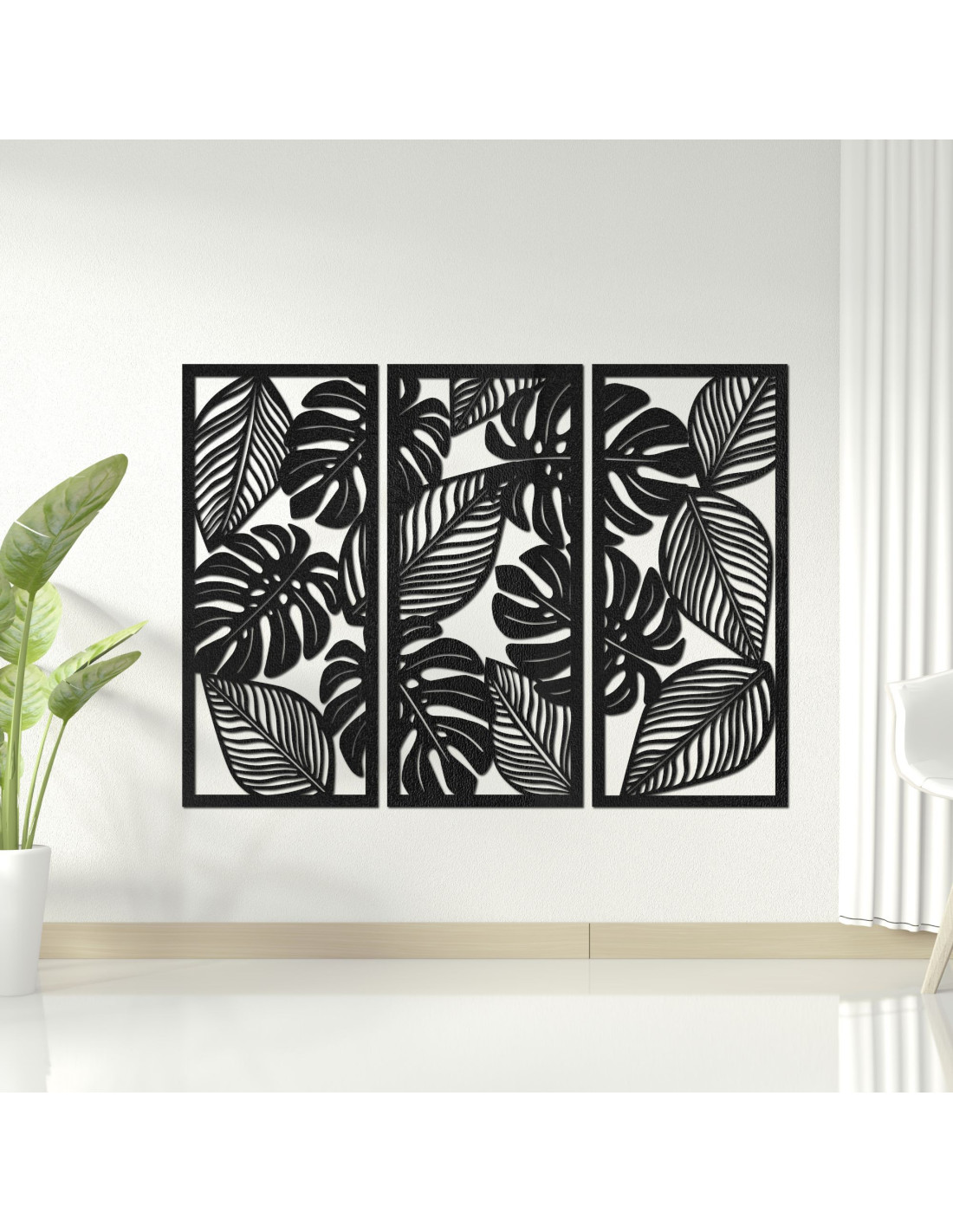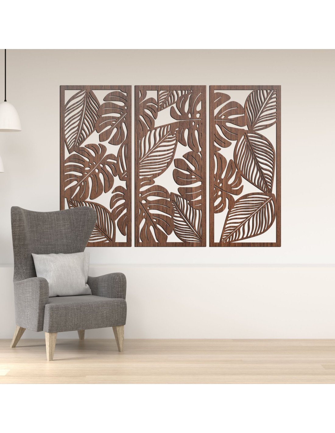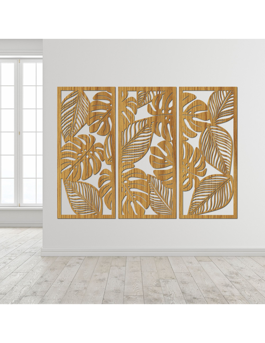 Ciesz się naturalną harmonią z naszą trzyczęściową drewnianą grafiką ścienną Monstera .