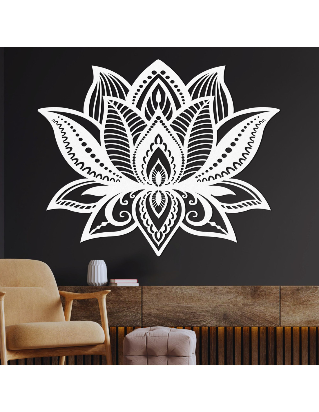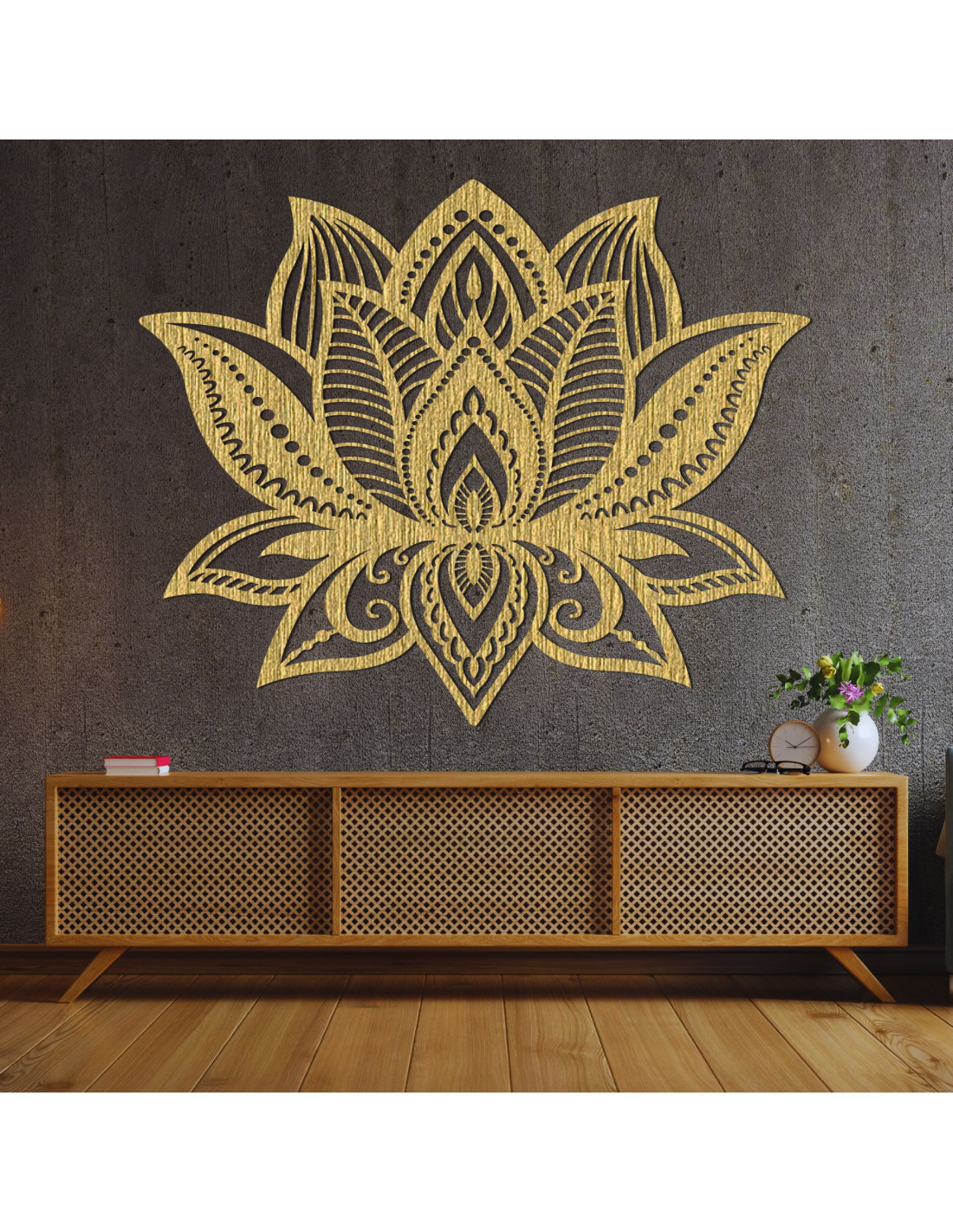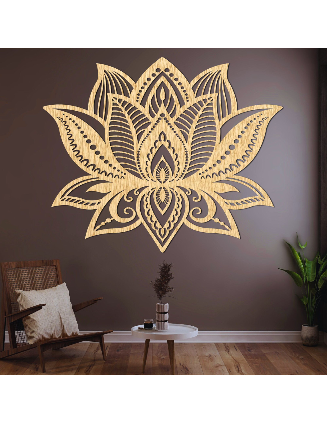 Kwiat lotosu od czasów starożytnych symbolizuje czystość, odrodzenie i wewnętrzny spokój. Ta drewniana dekoracja ścienna ma na celu wprowadzenie równowagi, spokoju i delikatnego światła do Twojego domu, wypełniając przestrzeń pozytywną energią.