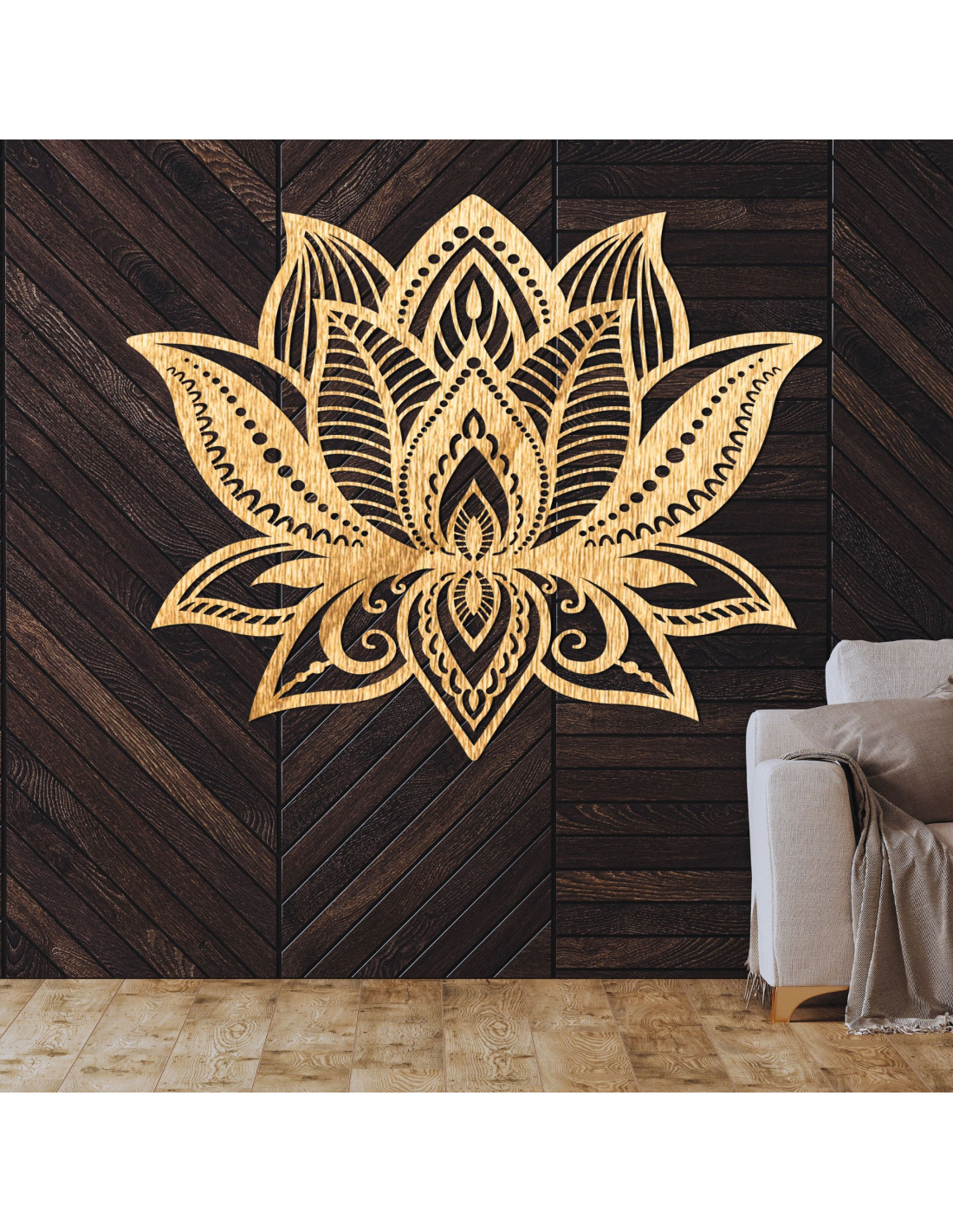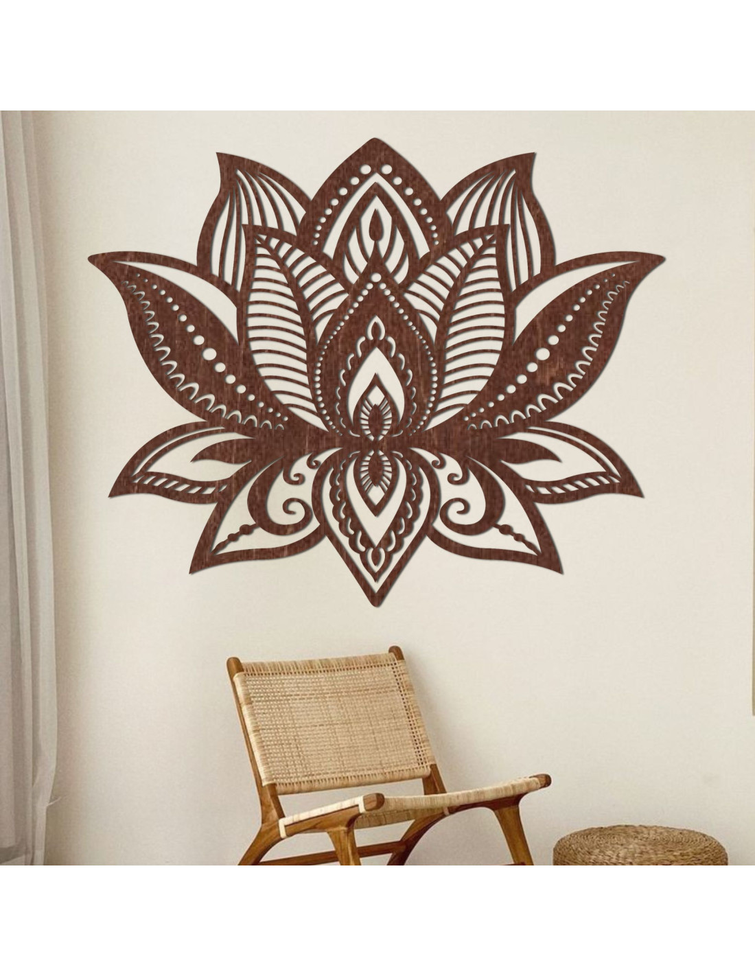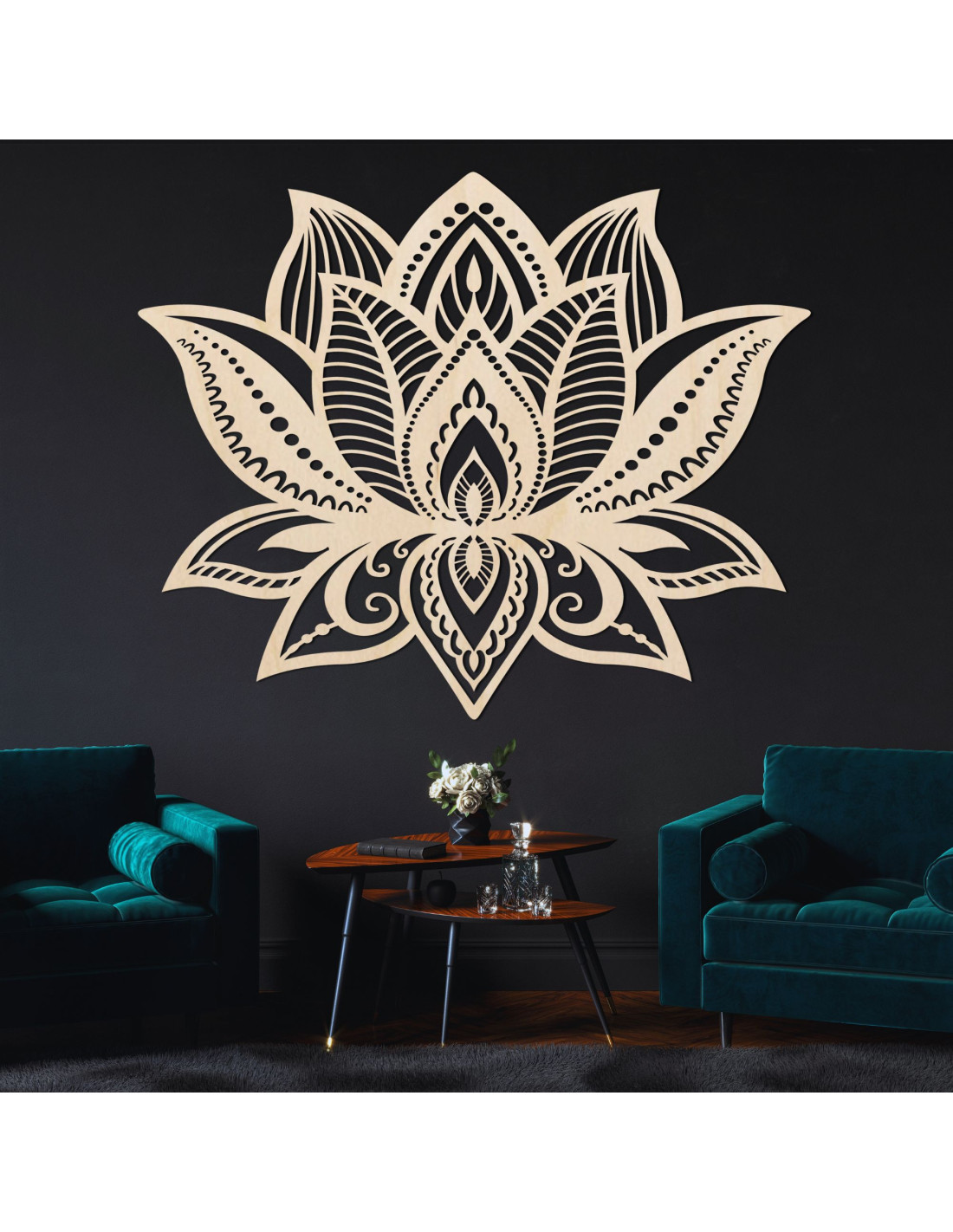 Symetria kwiatu lotosu symbolizuje nowy początek, czystość i wewnętrzną siłę, a pieczołowicie rzeźbione detale nadają każdemu pomieszczeniu wyjątkową fakturę i ciepły akcent drewna.