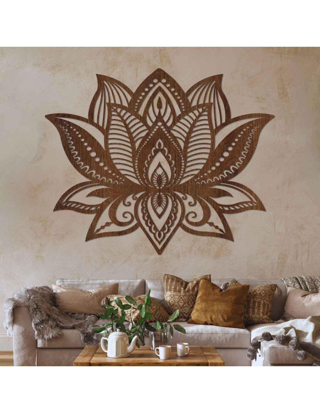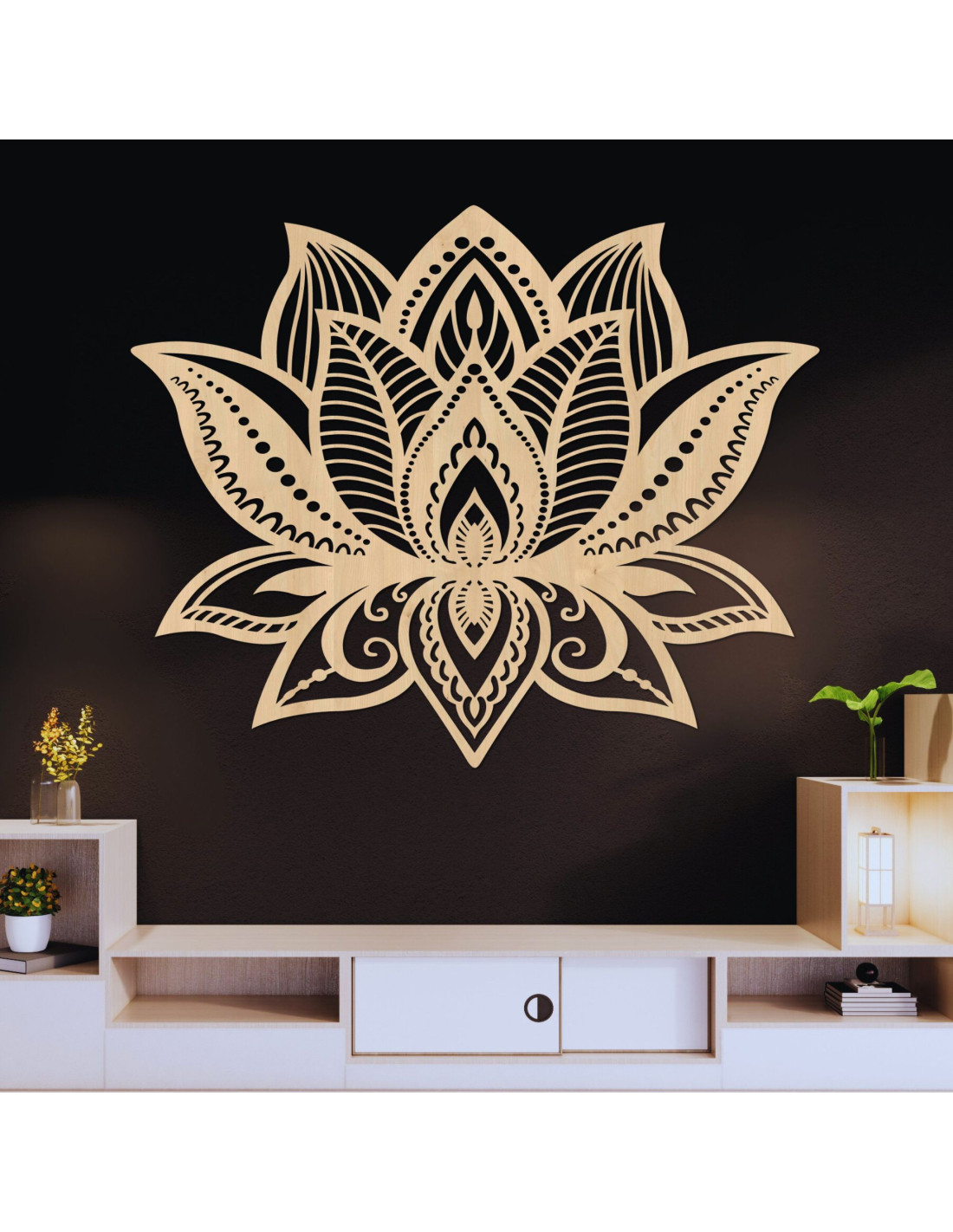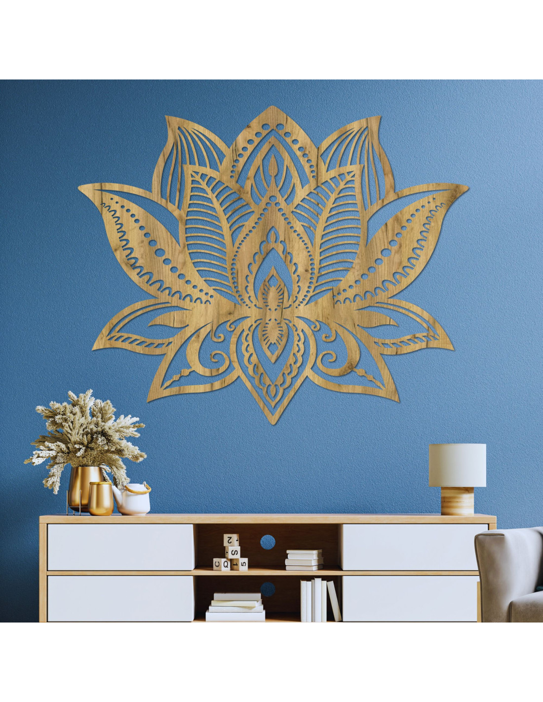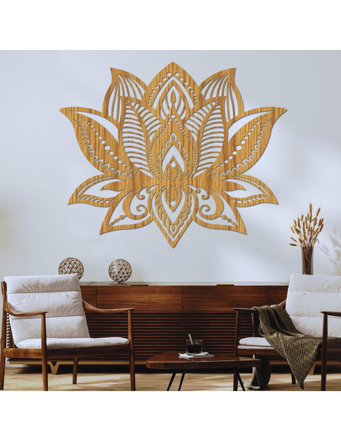 Drewniana dekoracja w kształcie kwiatu lotosu LOTONIS łączy w sobie estetyczną elegancję z duchową głębią.
