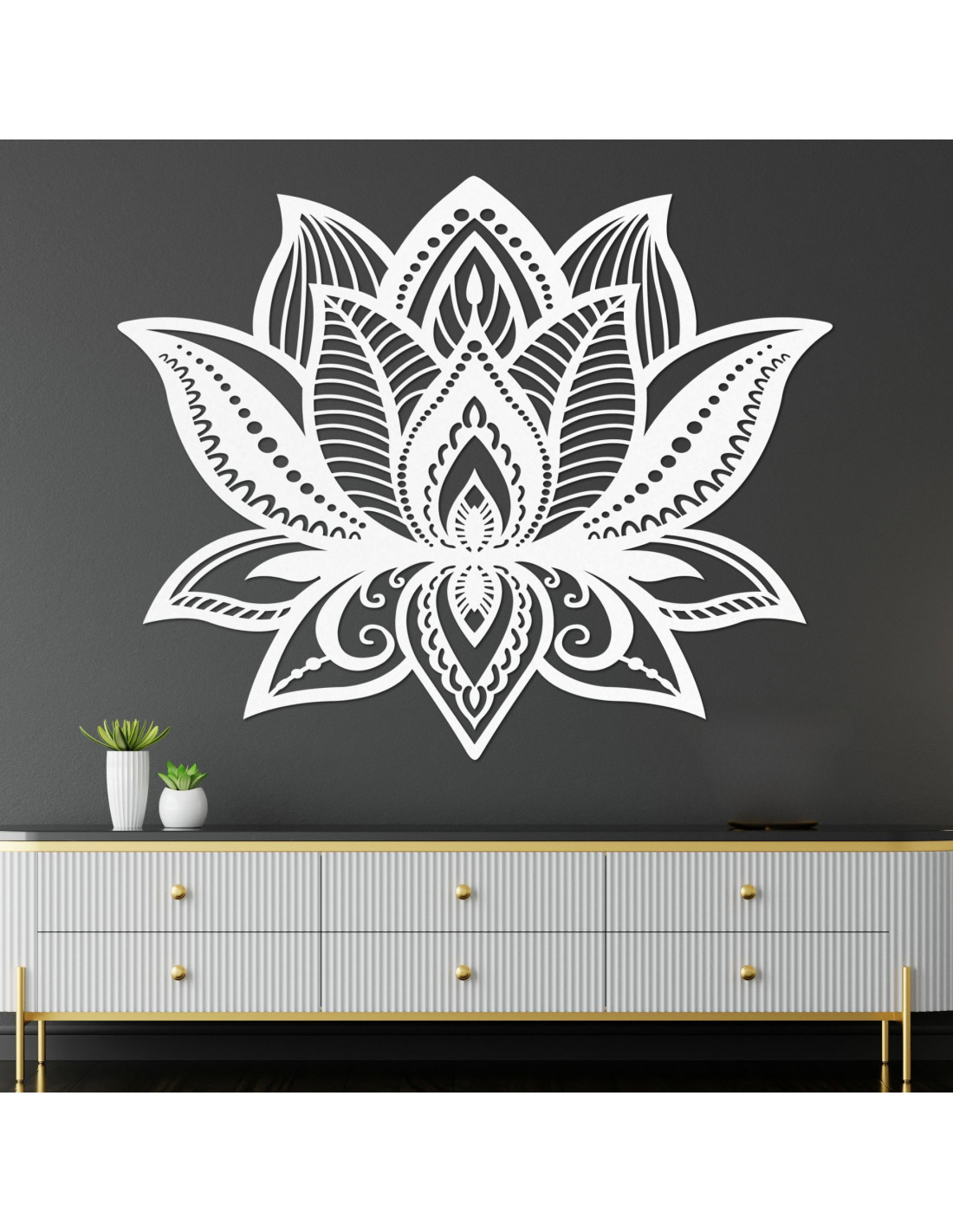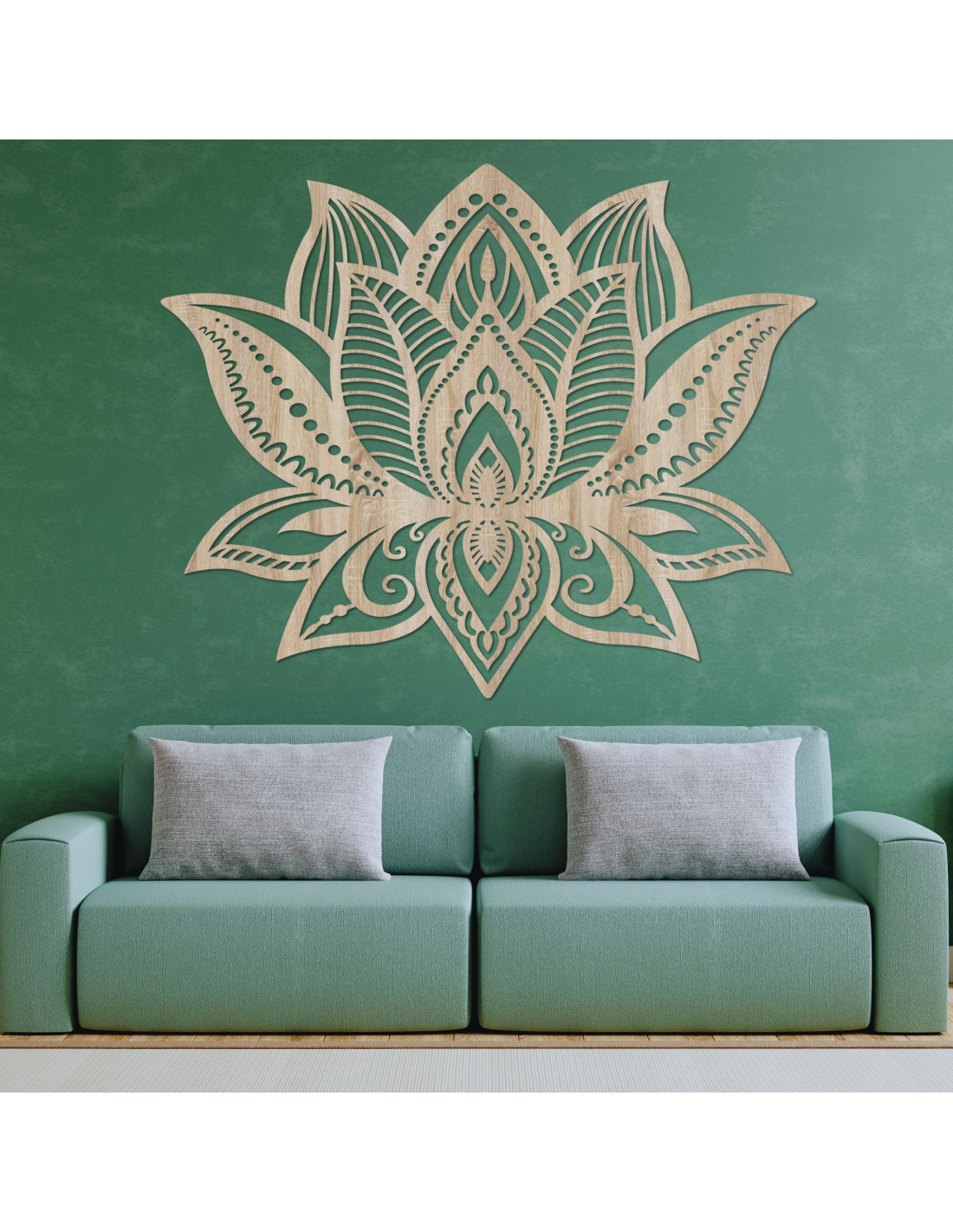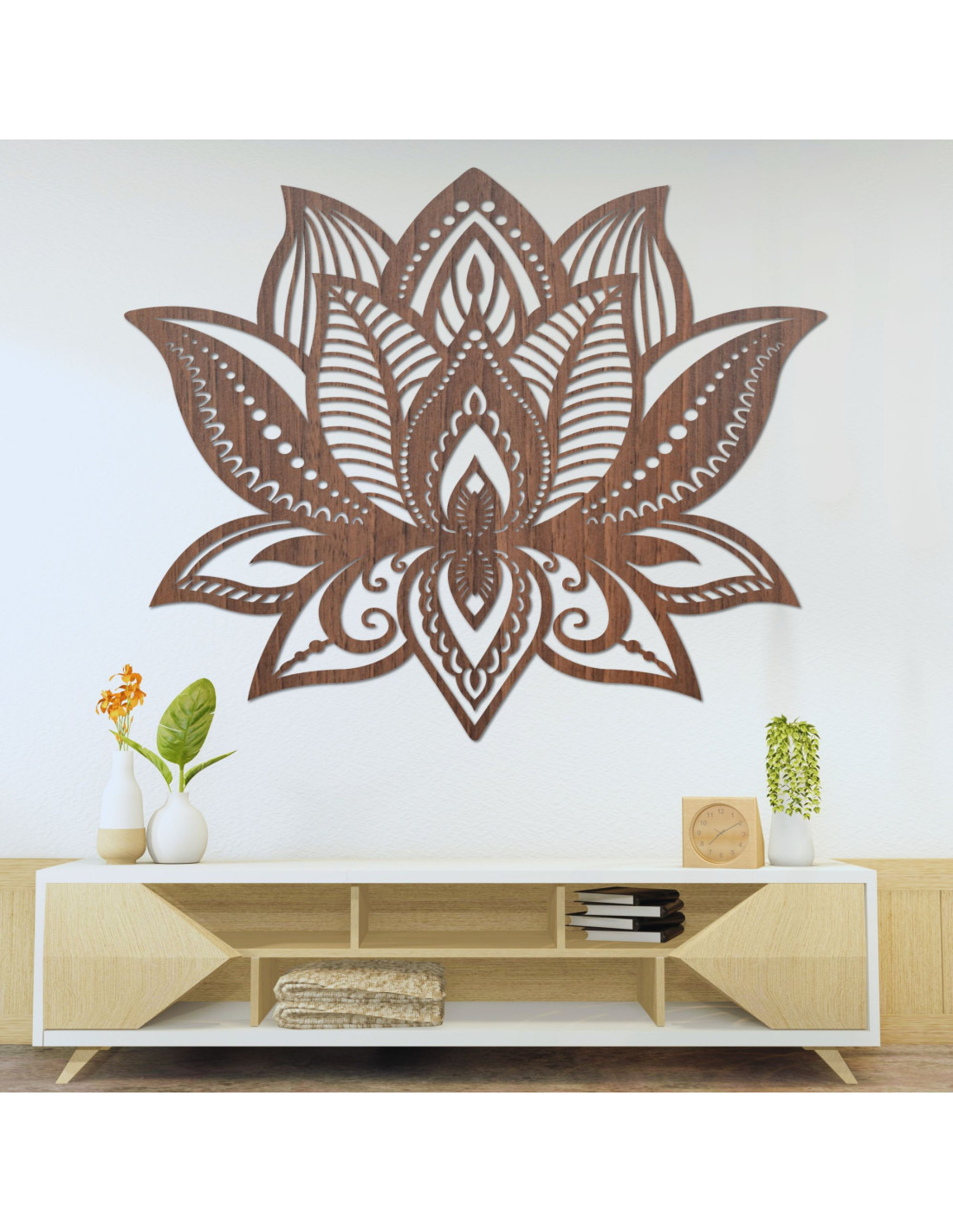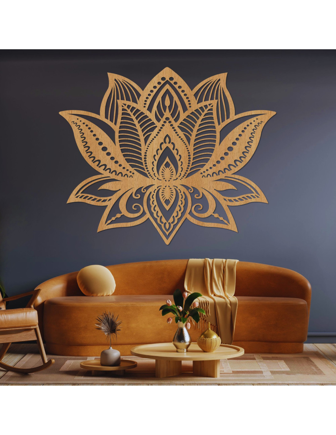Drewniana dekoracja w kształcie kwiatu lotosu LOTONIS łączy w sobie estetyczną elegancję z duchową głębią.