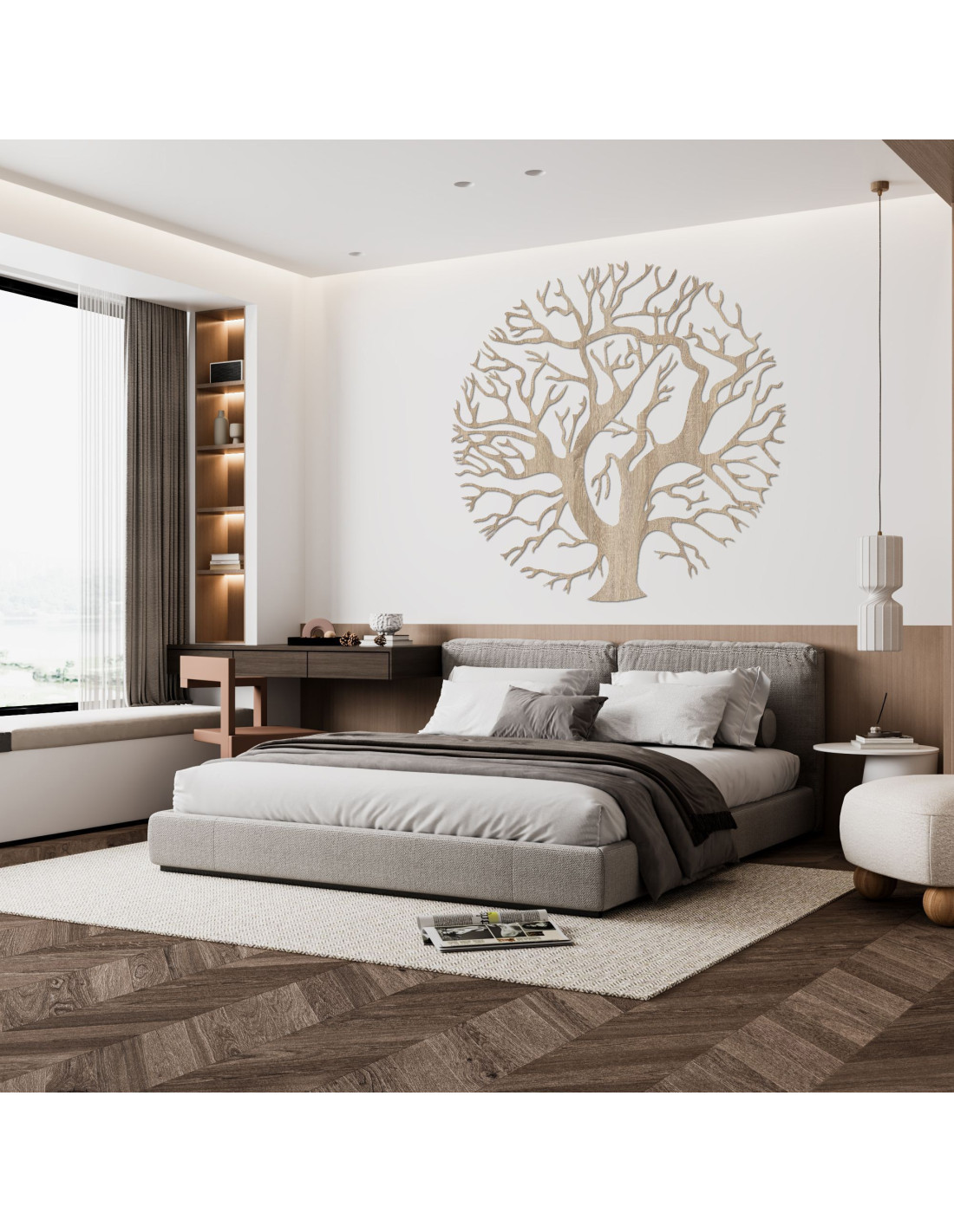 Elegancki obraz "Drzewo Życia" ze sklejki z precyzyjnie rzeźbionymi gałęziami wyróżnia się ponadczasową estetyką i symboliką . Subtelne detale tworzą harmonijny, lekki wzór, który wniesie spokój, równowagę i nutę natury do Twojego wnętrza. Dzięki swojemu naturalnemu charakterowi obraz idealnie pasuje zarówno do nowoczesnych, jak i klasycznych wnętrz i z łatwością można go zestawić z drewnem, kamieniem lub roślinami.