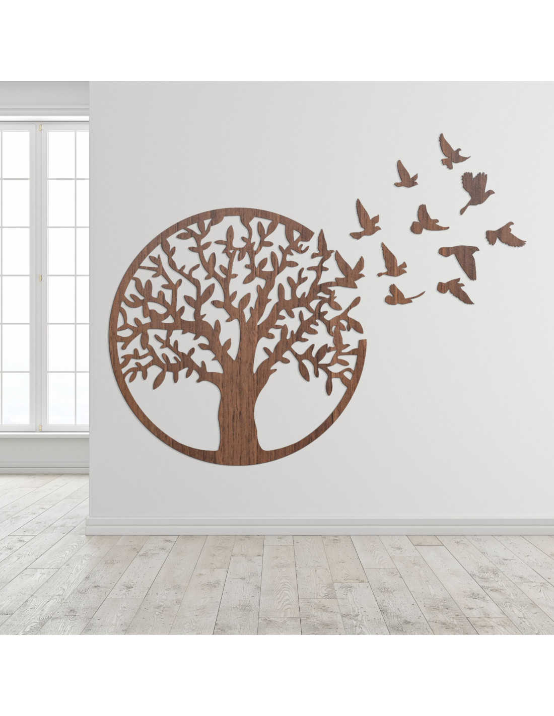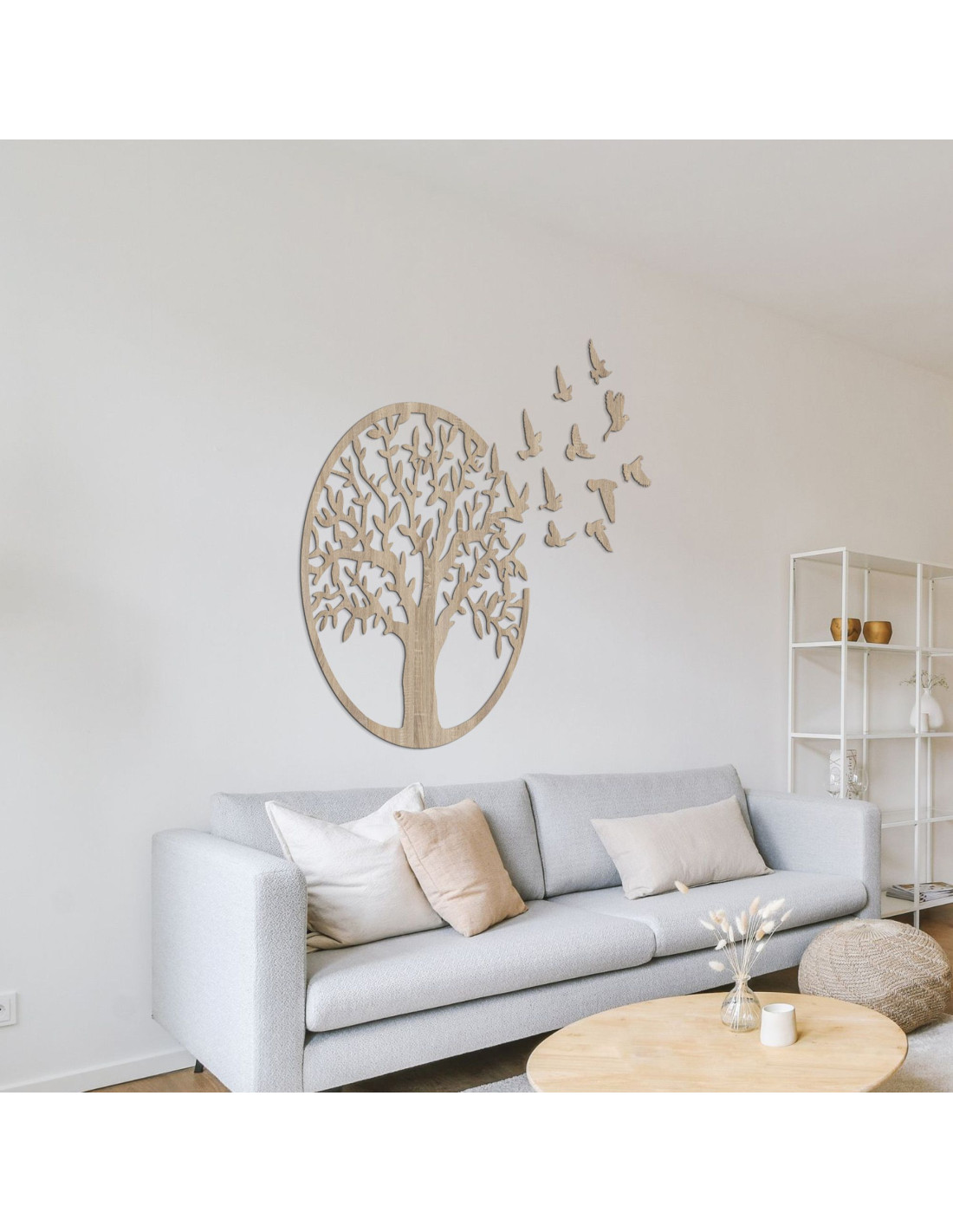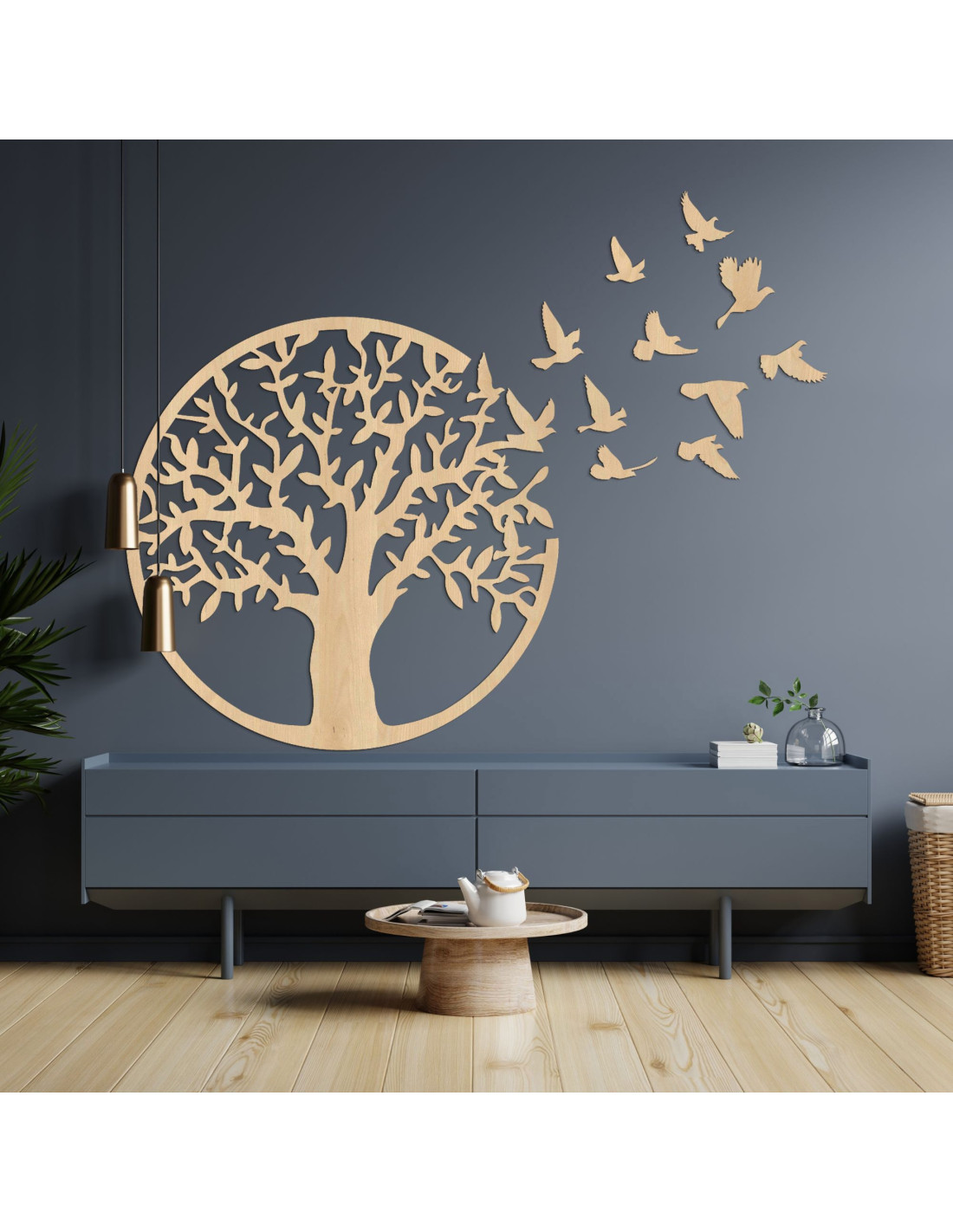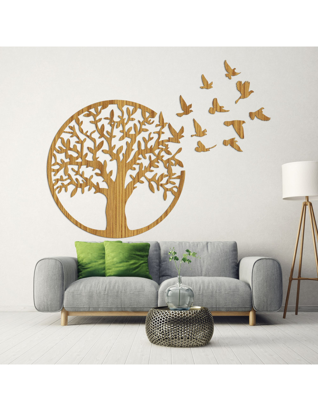 Wprowadź do swojego domu wyjątkowy element natury dzięki naszej eleganckiej drewnianej dekoracji ściennej z motywem drzewa i szybujących ptaków. Ten nowoczesny wzór nie tylko upiększy wnętrze, ale także stworzy przytulną atmosferę. Idealnie sprawdzi się w pokojach dziecięcych, salonach i biurach, gdzie doda przestrzeni ciepła i charakteru. Wykonana z wysokiej jakości drewna, gwarantuje trwałość i długowieczność. Zamów ją już dziś i ożyw swoje ściany! Drewniana dekoracja ścienna Drzewo Życia: Rustykalny panel dekoracyjny do domu