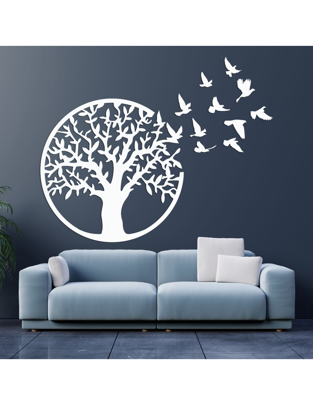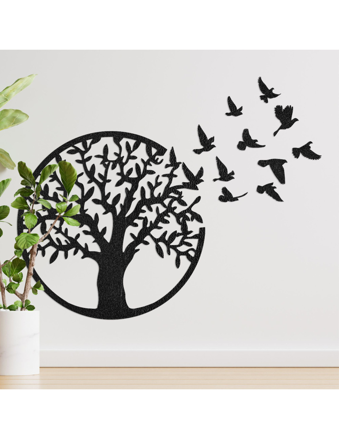 Rozjaśnij swoje wnętrze elegancką drewnianą dekoracją ścienną, która oddaje piękno drzewa z szybującymi ptakami. To wyjątkowe dzieło sztuki jest idealne dla tych, którzy szukają nowoczesnych i naturalnych akcentów w swoich przestrzeniach.