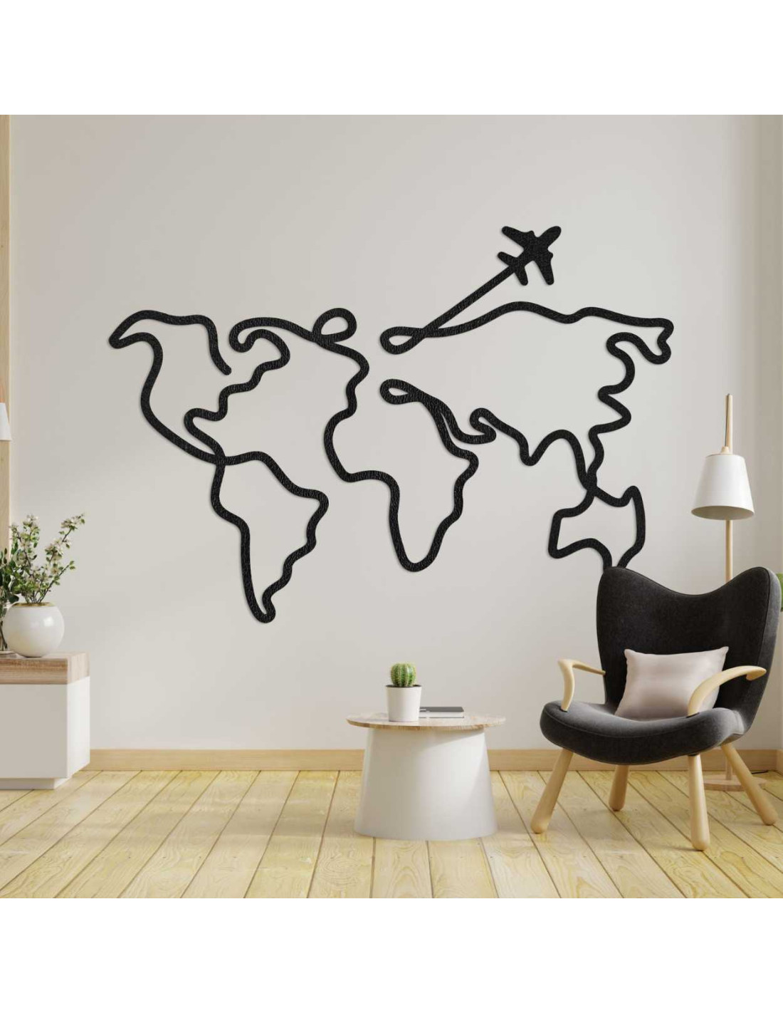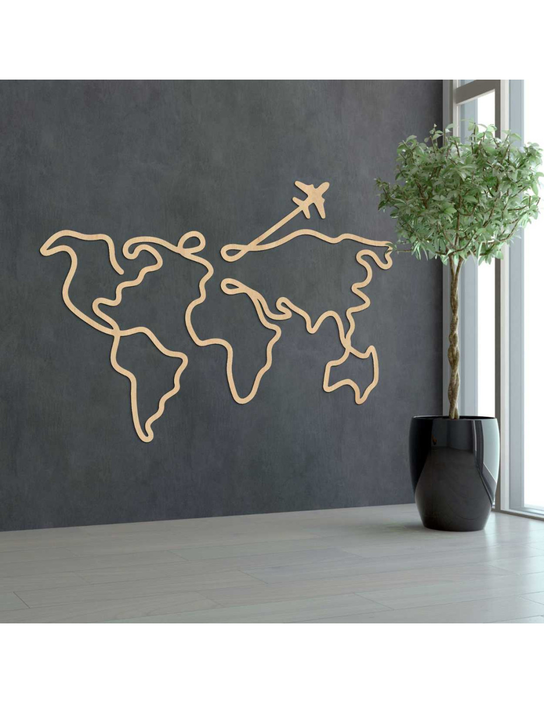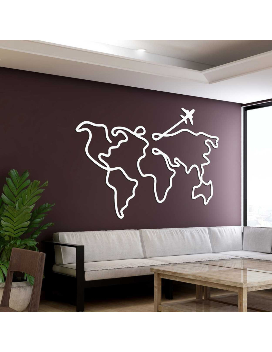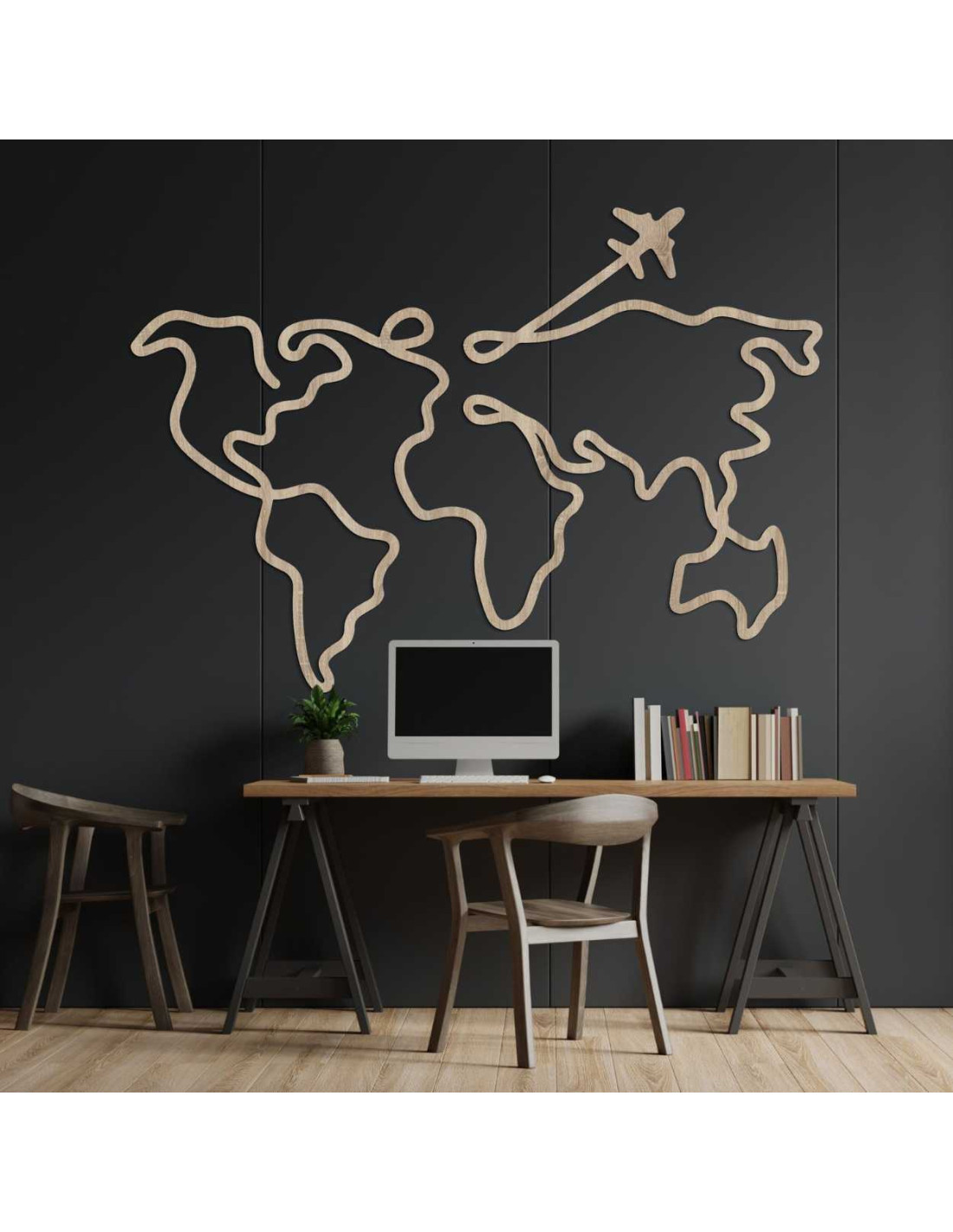 Kształt mapy świata połączony jednym eleganckim pociągnięciem tworzy wrażenie ciągłej podróży.