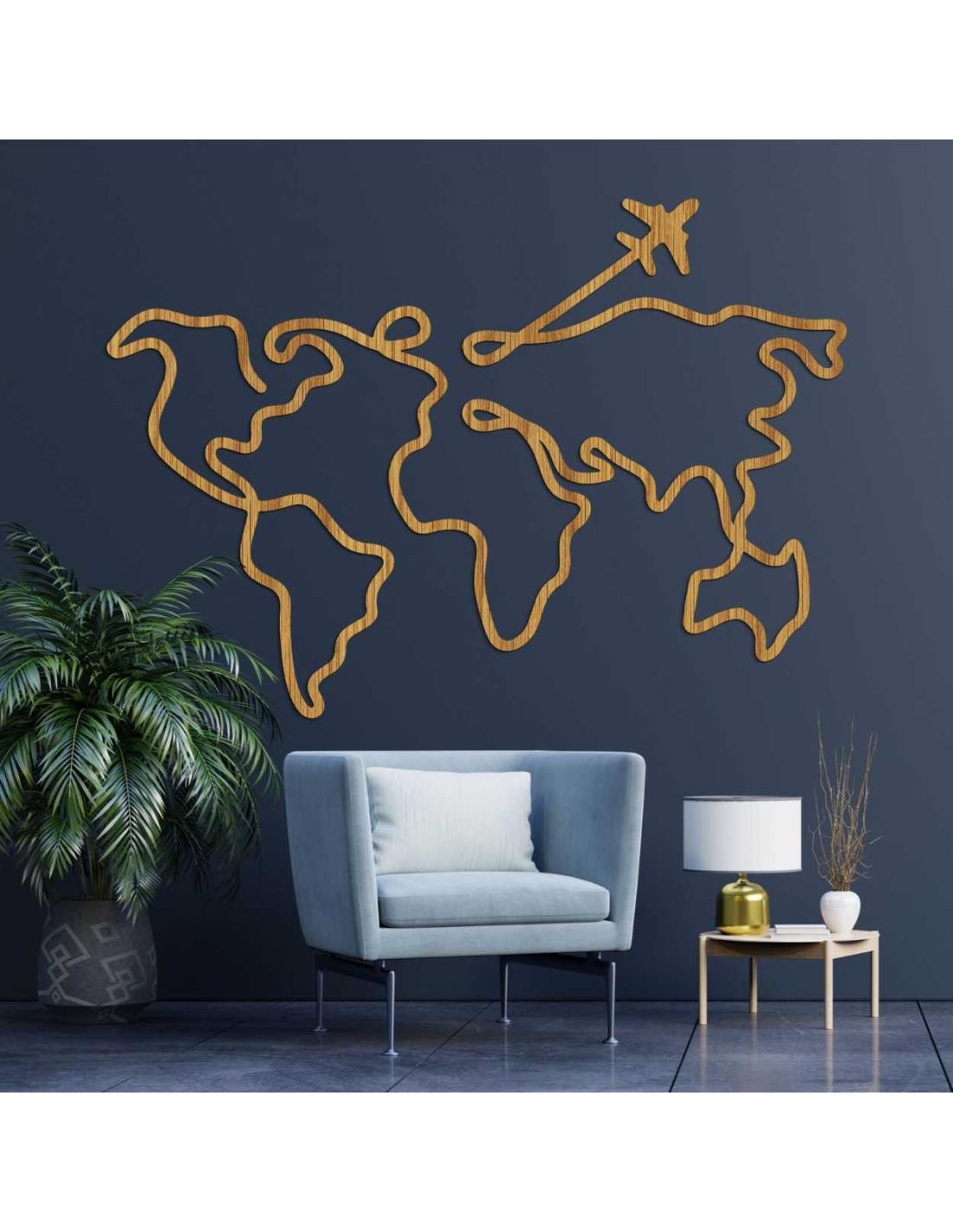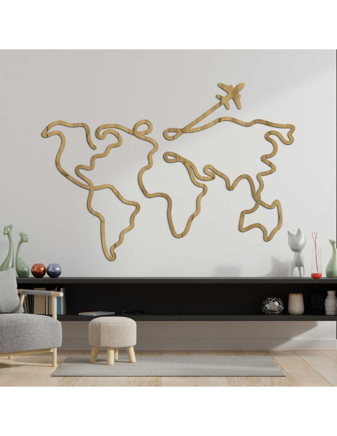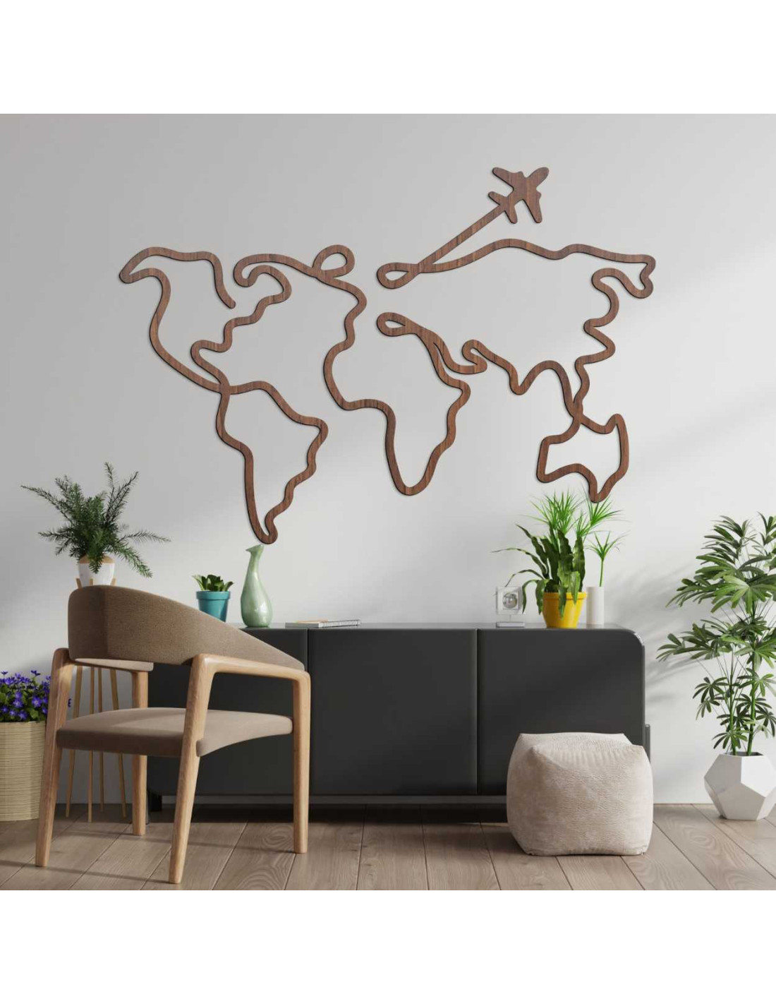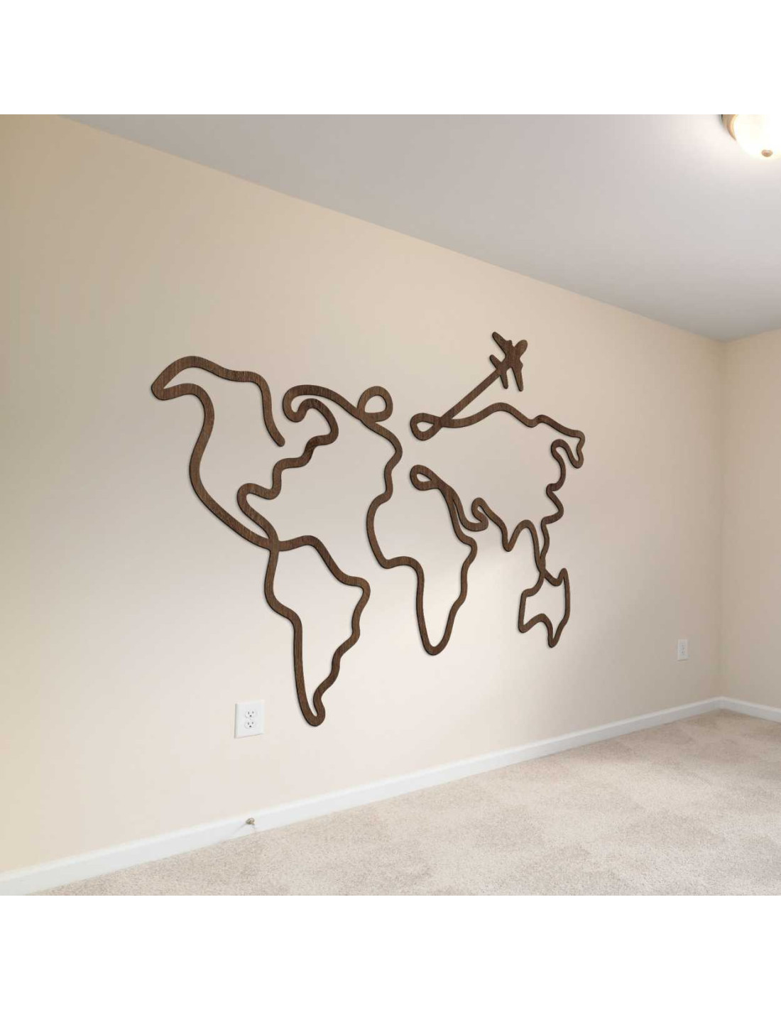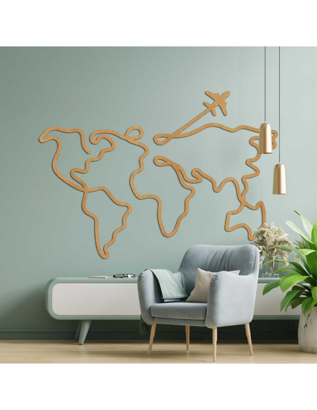 Kształt mapy świata połączony jednym eleganckim pociągnięciem tworzy wrażenie ciągłej podróży.