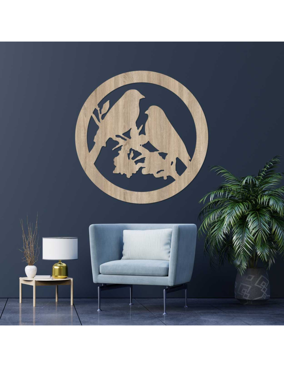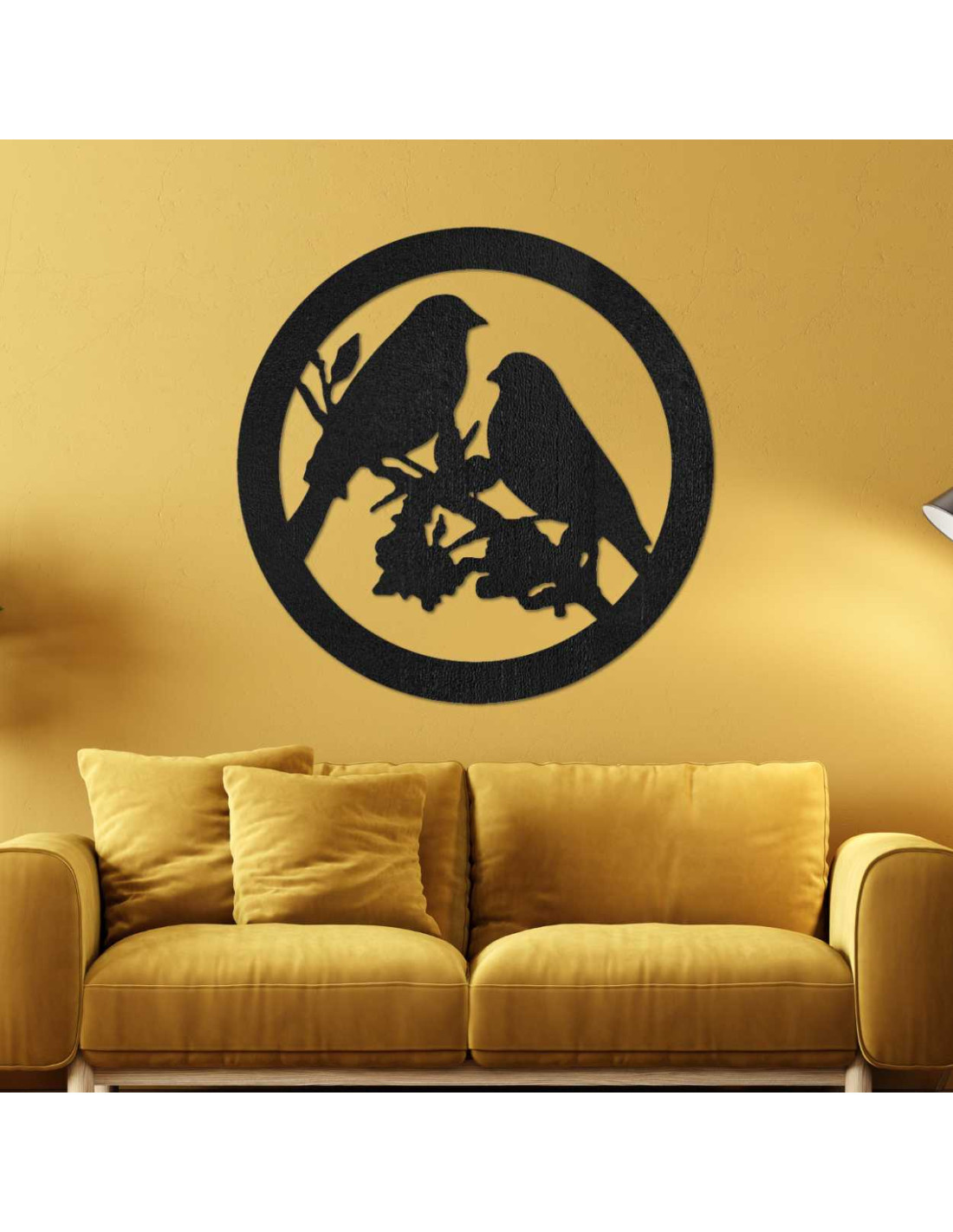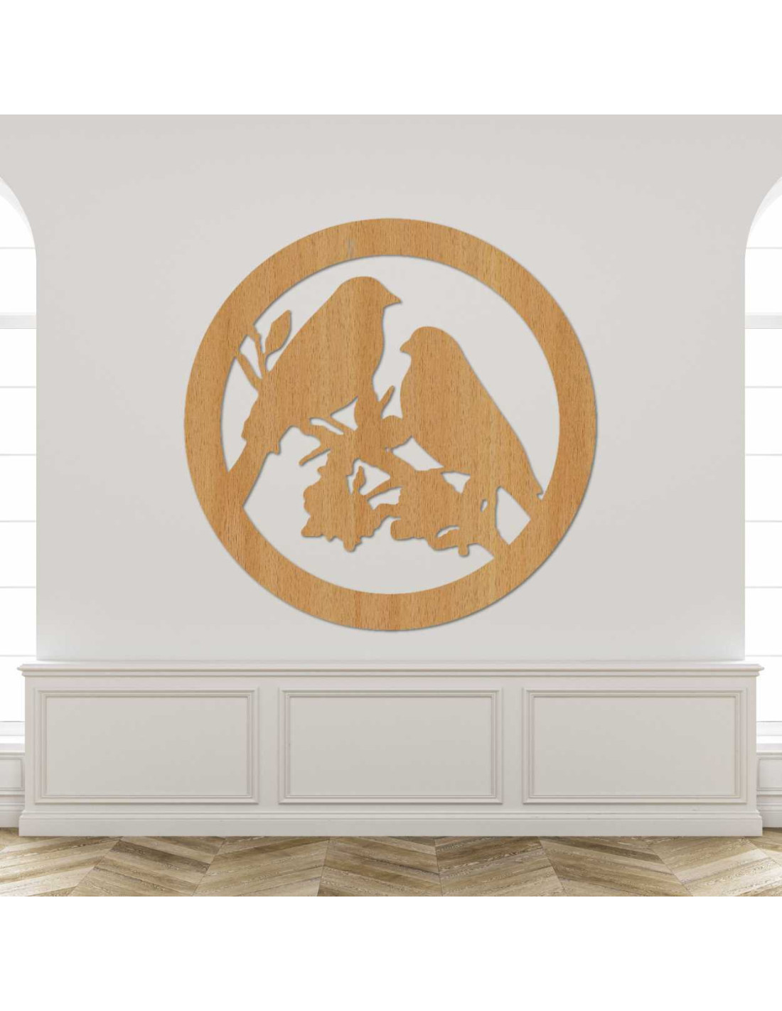 Dekoracyjny obraz z motywem dwóch ptaków na gałęzi w okrągłym wzorze emanuje delikatnością i naturalnym urokiem.