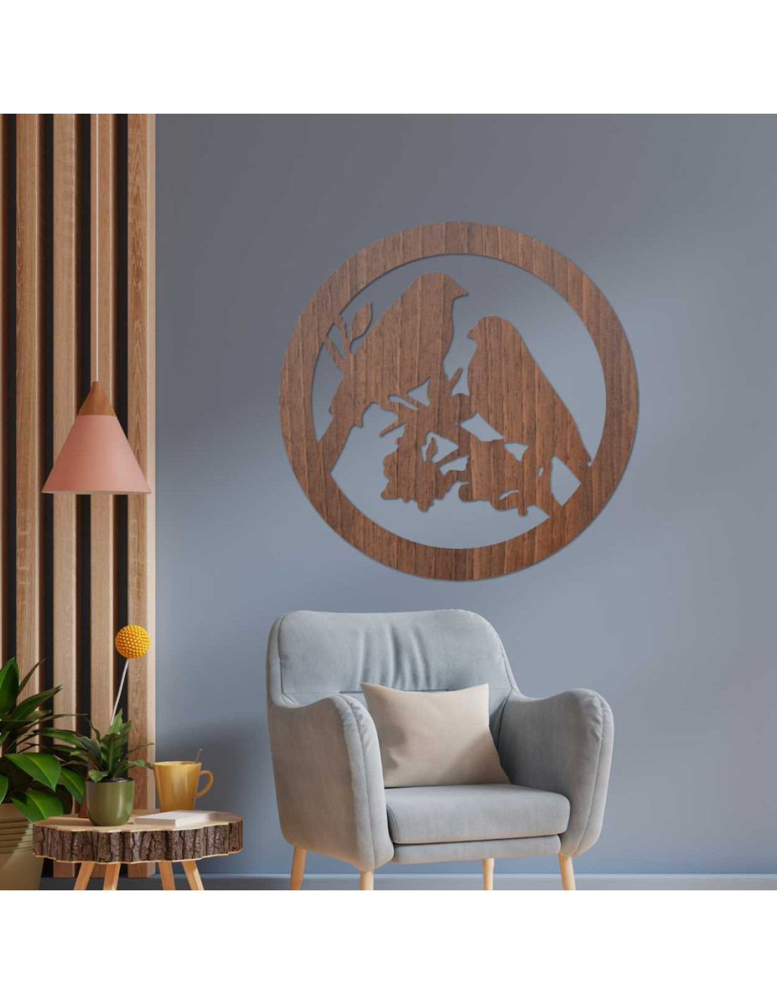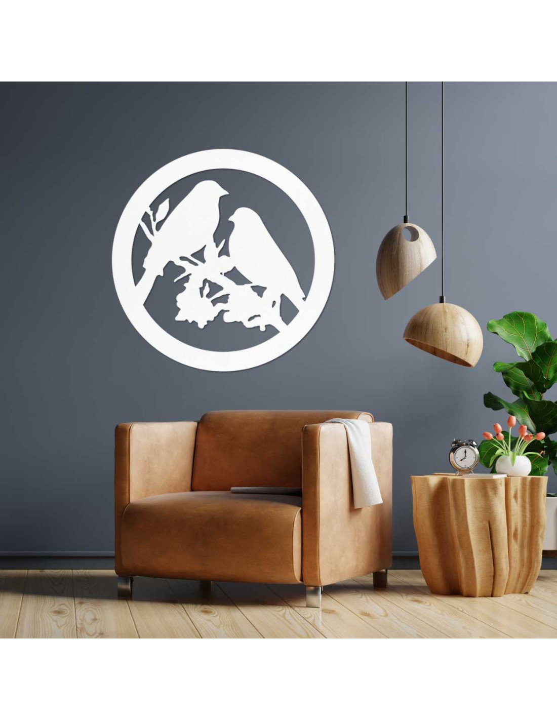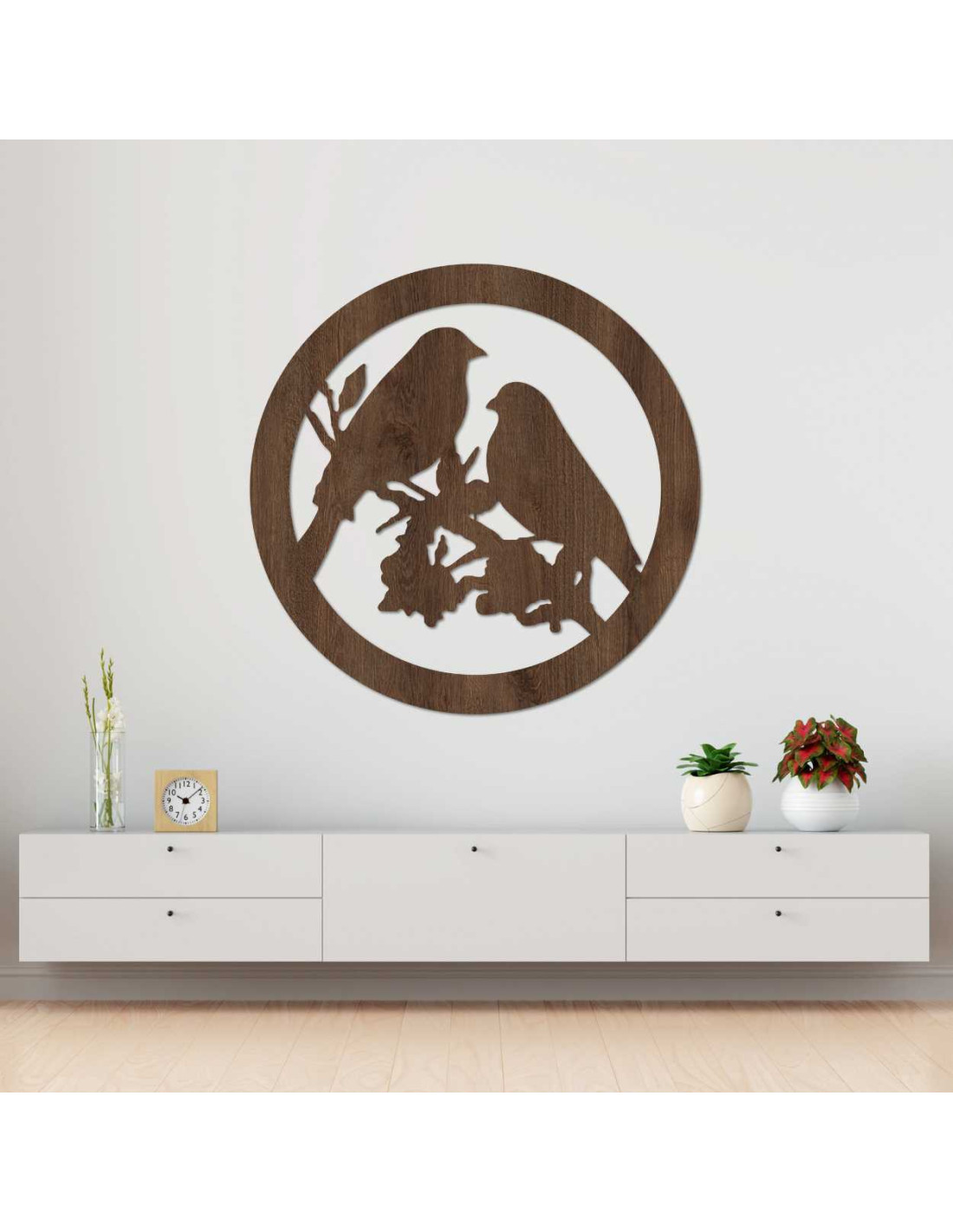 Dekoracyjny obraz z motywem dwóch ptaków na gałęzi w okrągłym wzorze emanuje delikatnością i naturalnym urokiem.