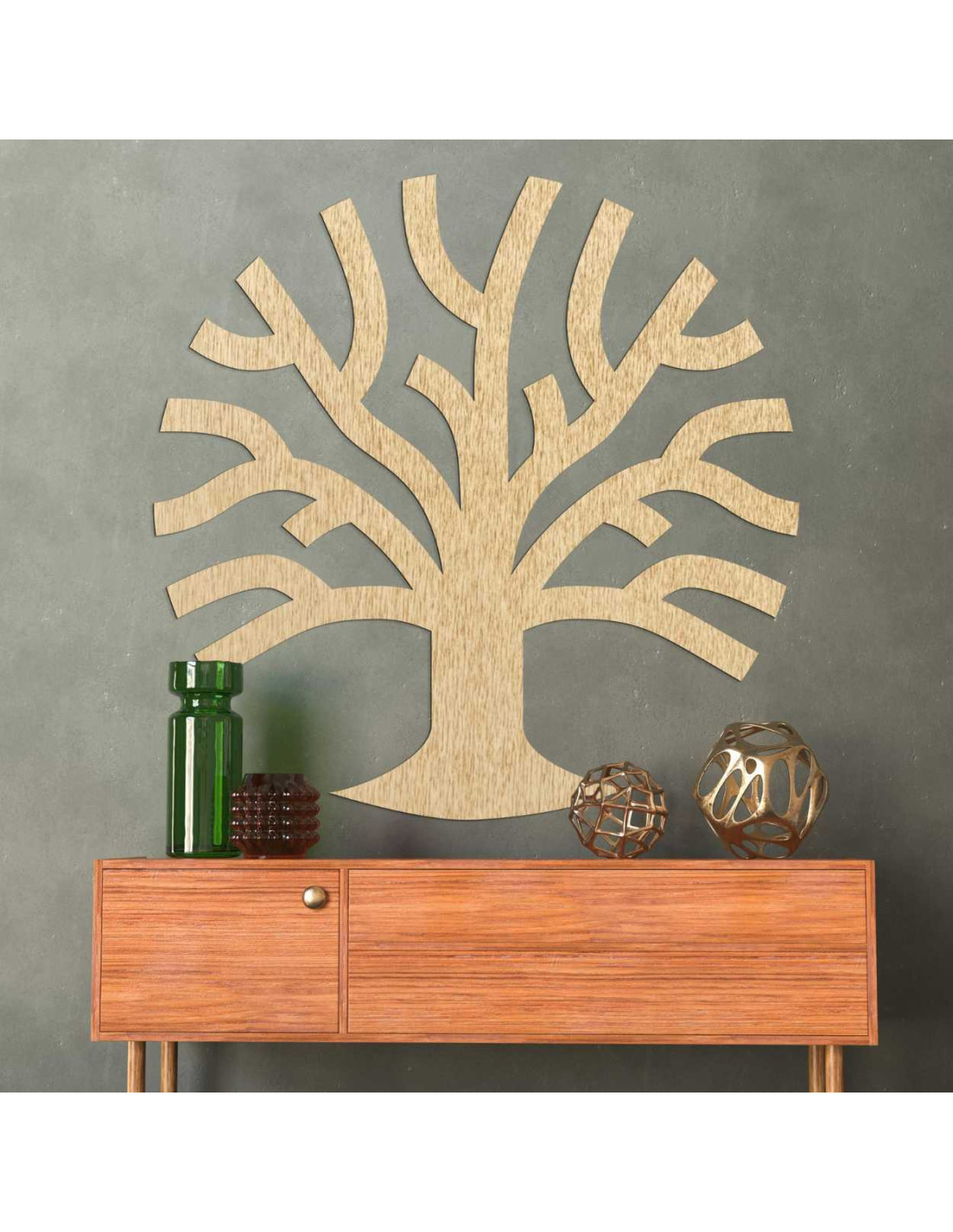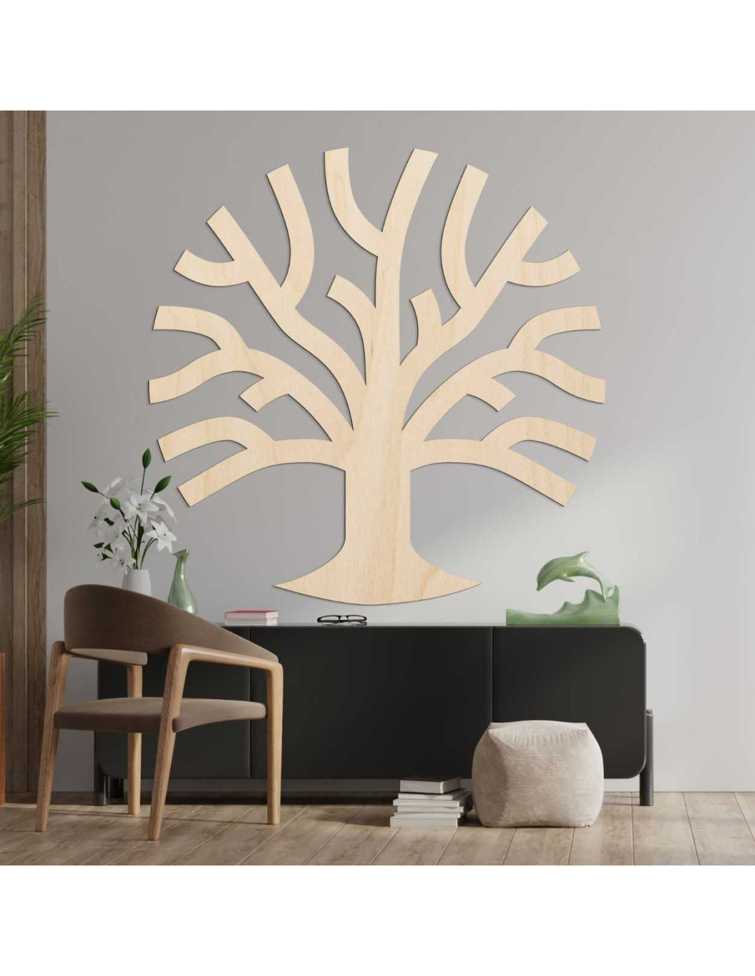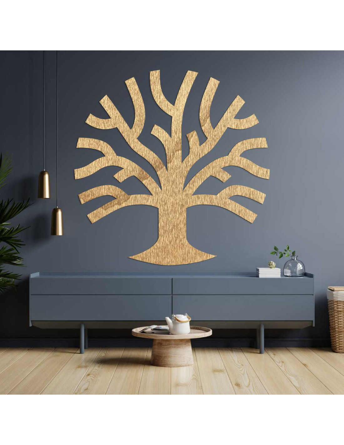 Drewniana dekoracja ścienna w kształcie drzewa życia zachwyci swoimi czystymi liniami i ponadczasowym designem .