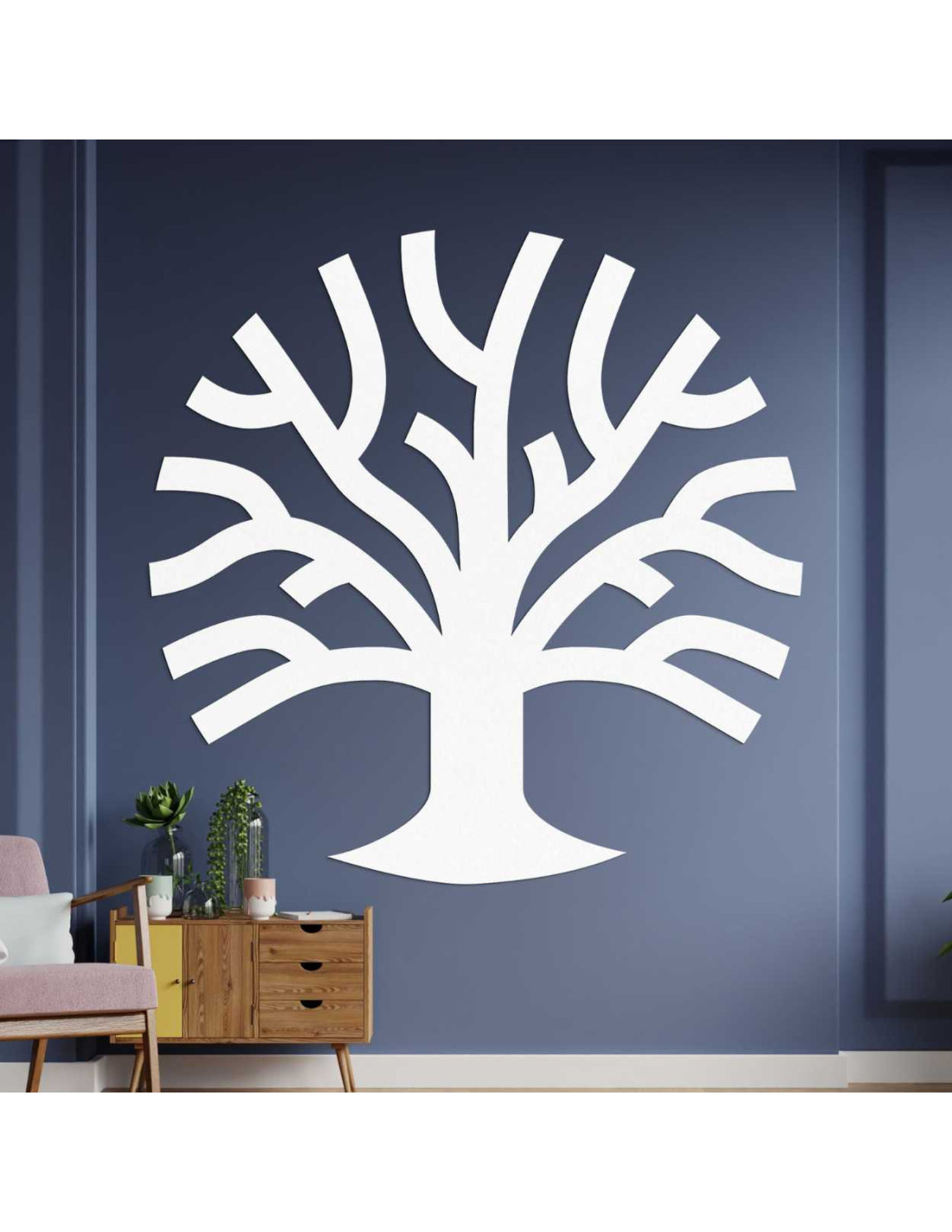 To przyciągające wzrok drzewo symbolizuje siłę , stabilność i wzrost , przez co stanowi harmonijny element wnętrza.