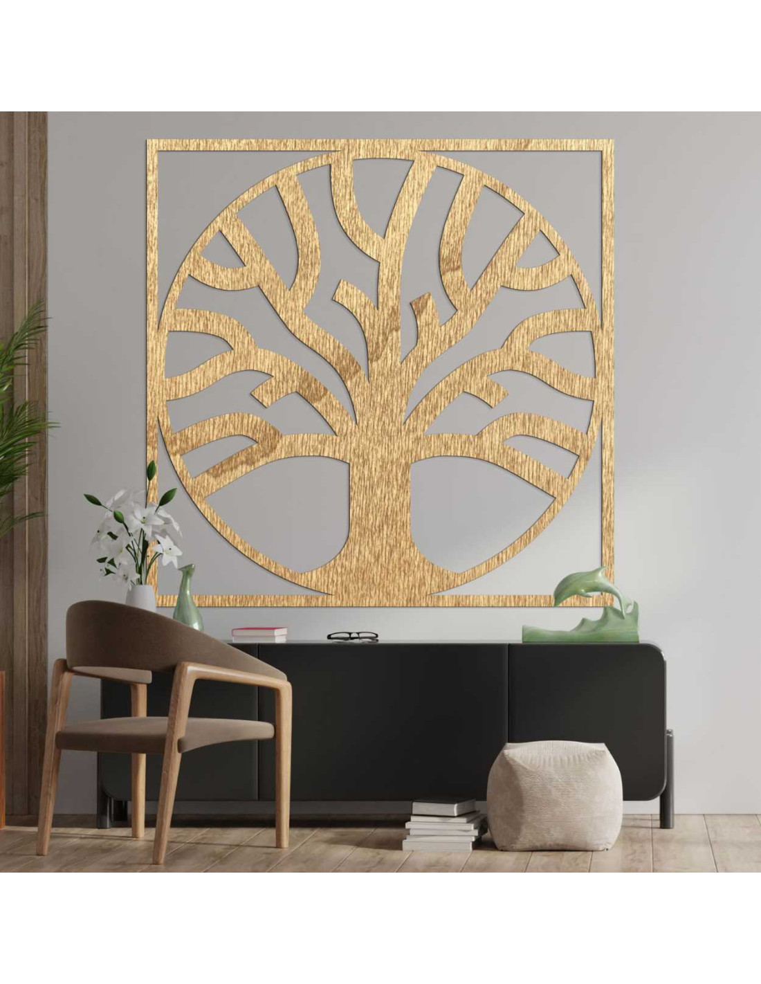 Drewniana dekoracja ścienna Drzewo Życia i Łagodności kwadrat - BALERIAN
