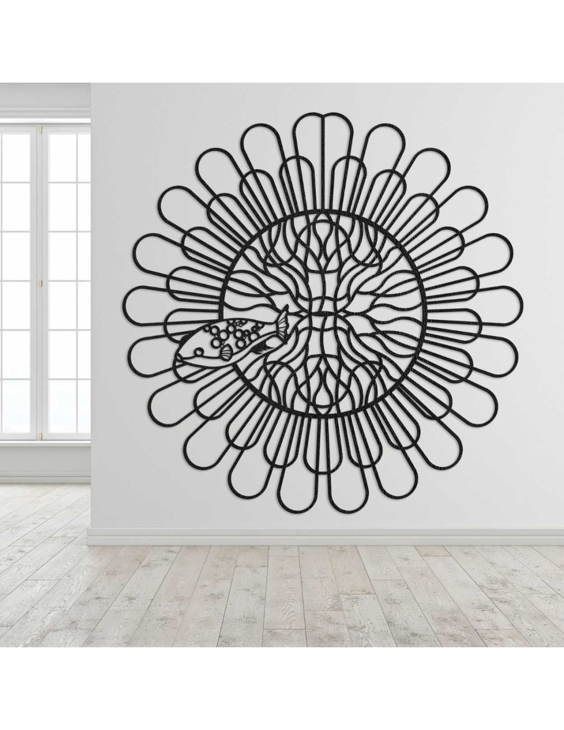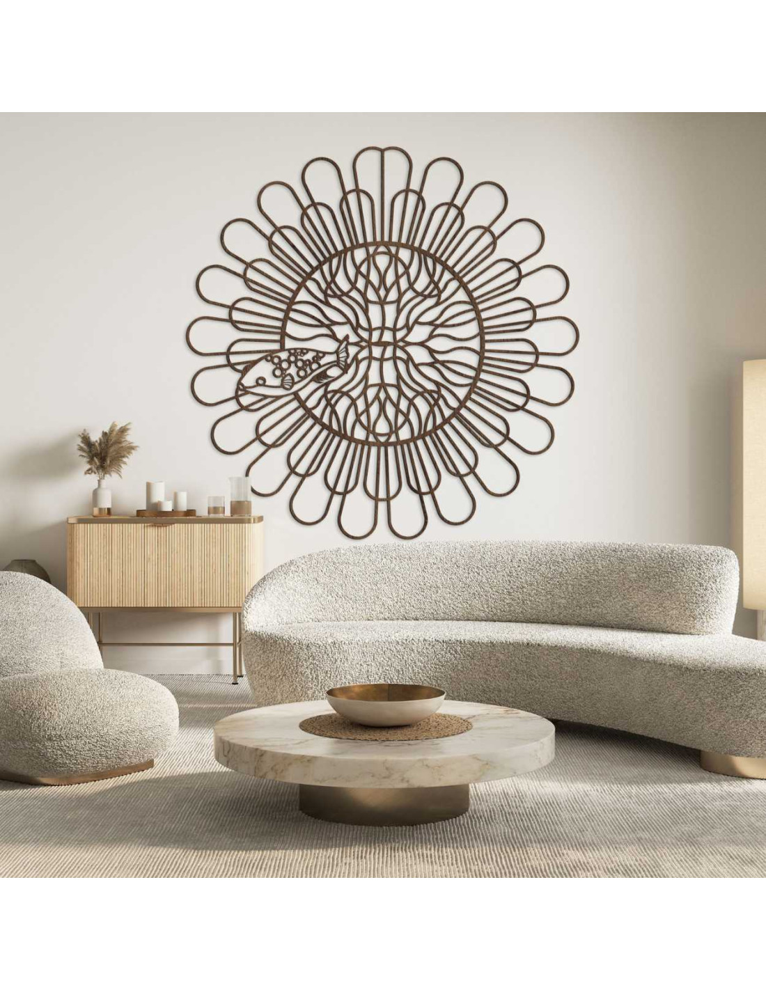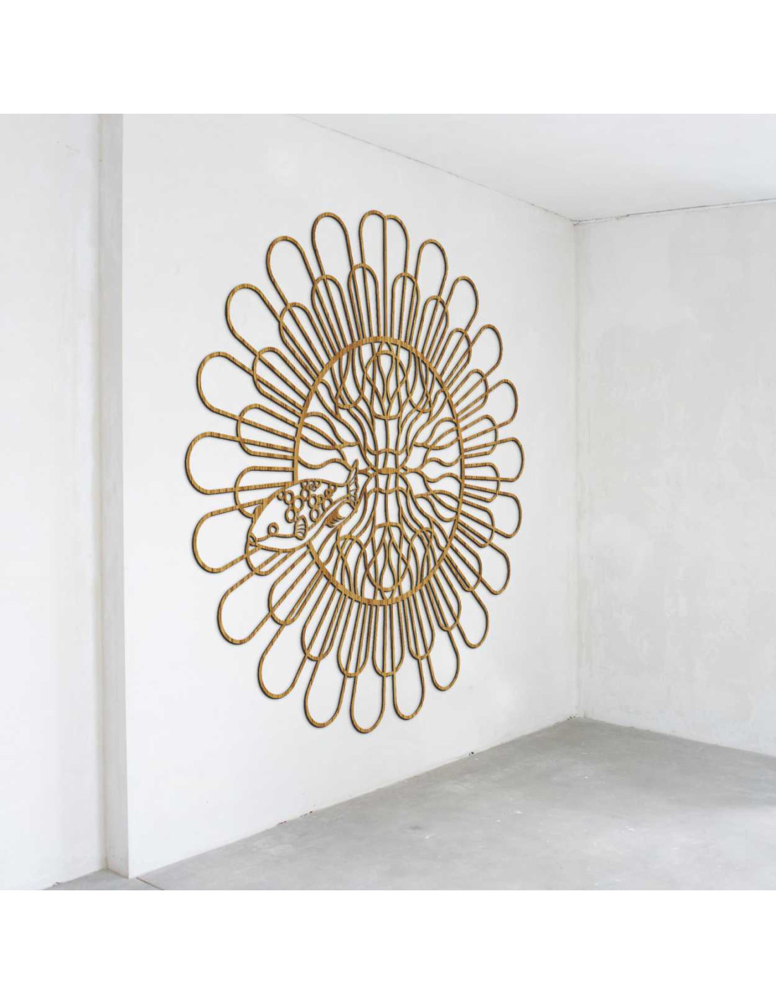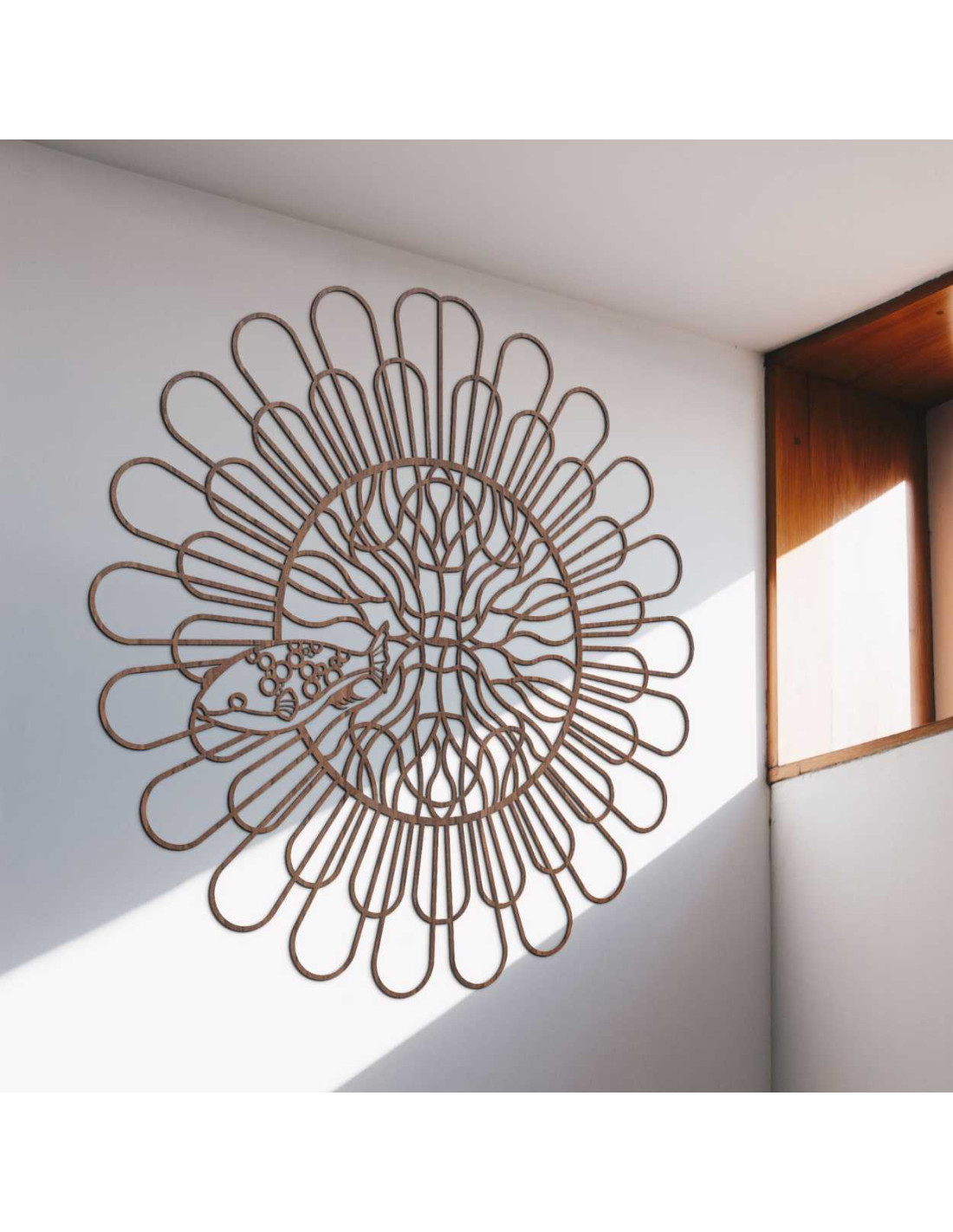 Dekoracja ścienna z charakterystycznym, okrągłym wzorem przypominającym kwitnący kwiat.