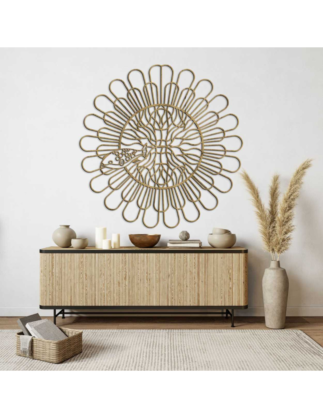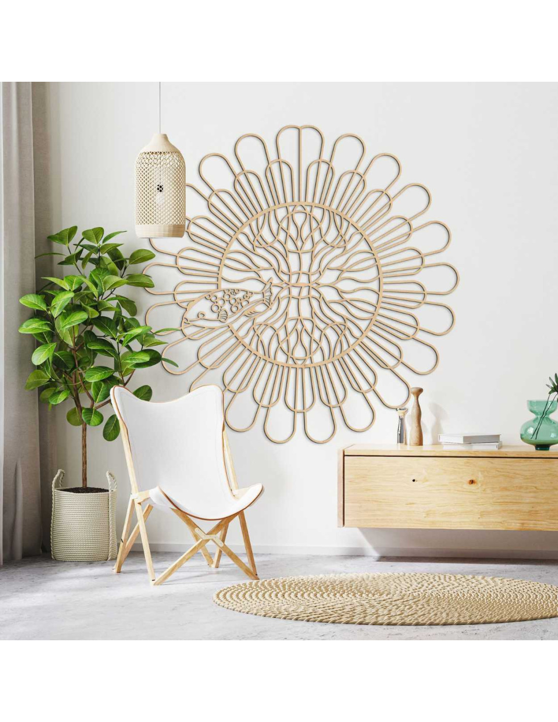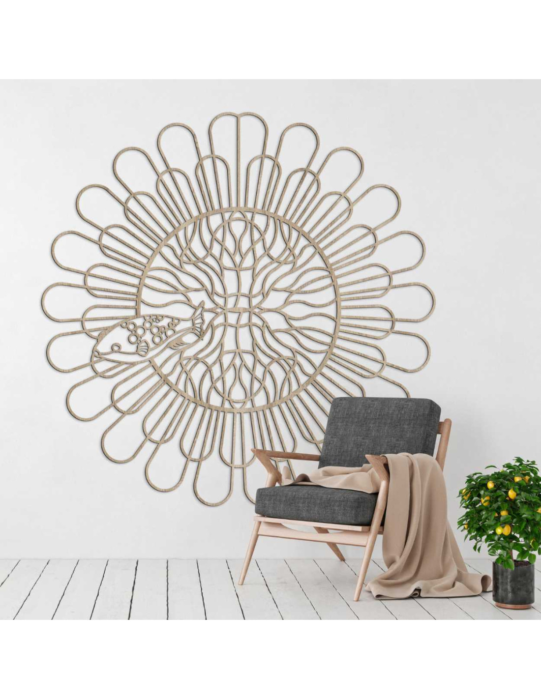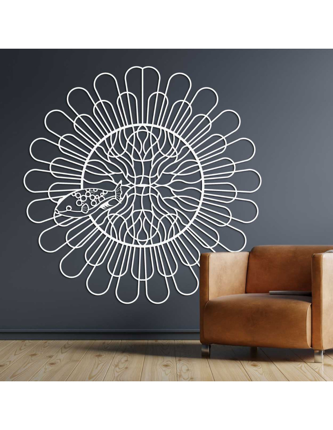 Dekoracja ścienna z charakterystycznym, okrągłym wzorem przypominającym kwitnący kwiat.