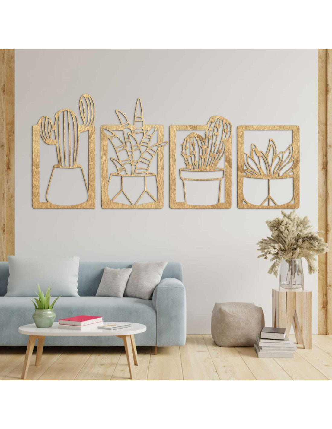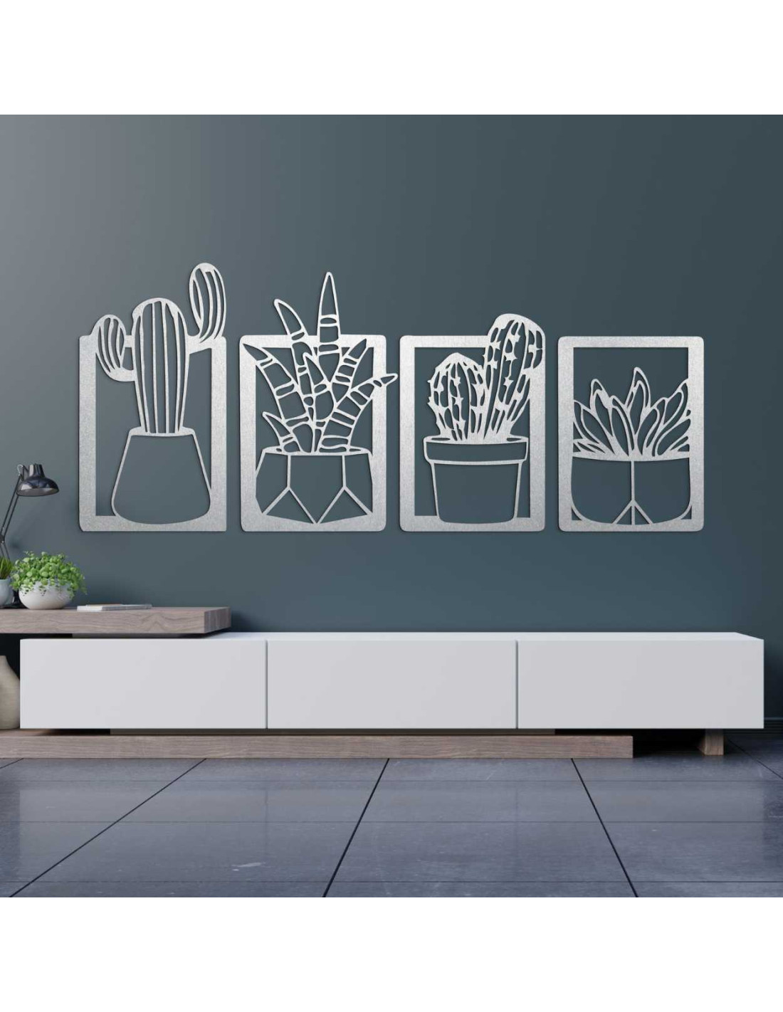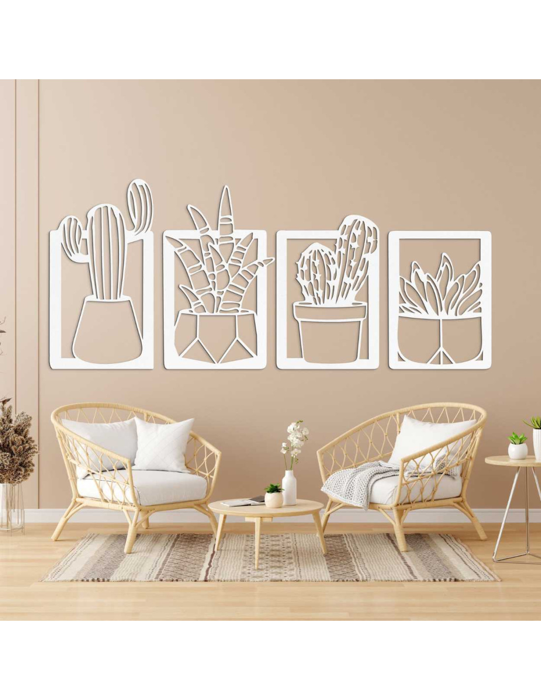 Czteroczęściowy obraz ścienny z kaktusami i sukulentami - KOFEN