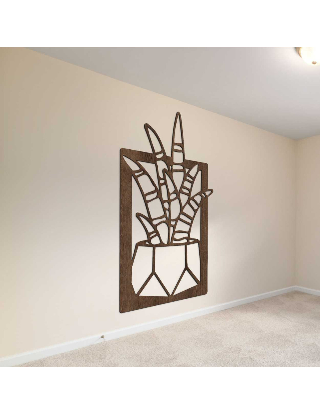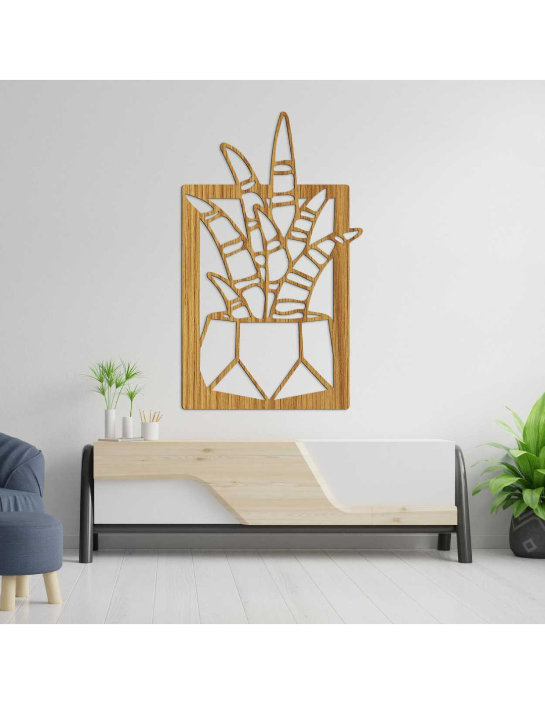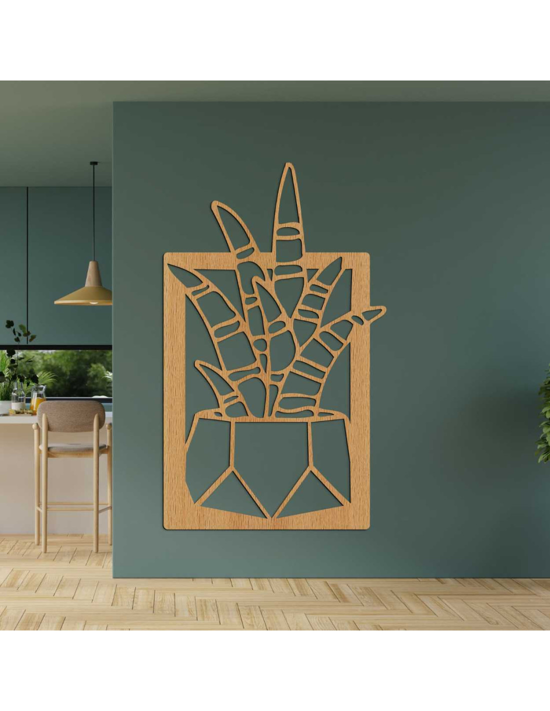 Wycinany laserowo drewniany obrazek z sukulentami w eleganckich ramkach