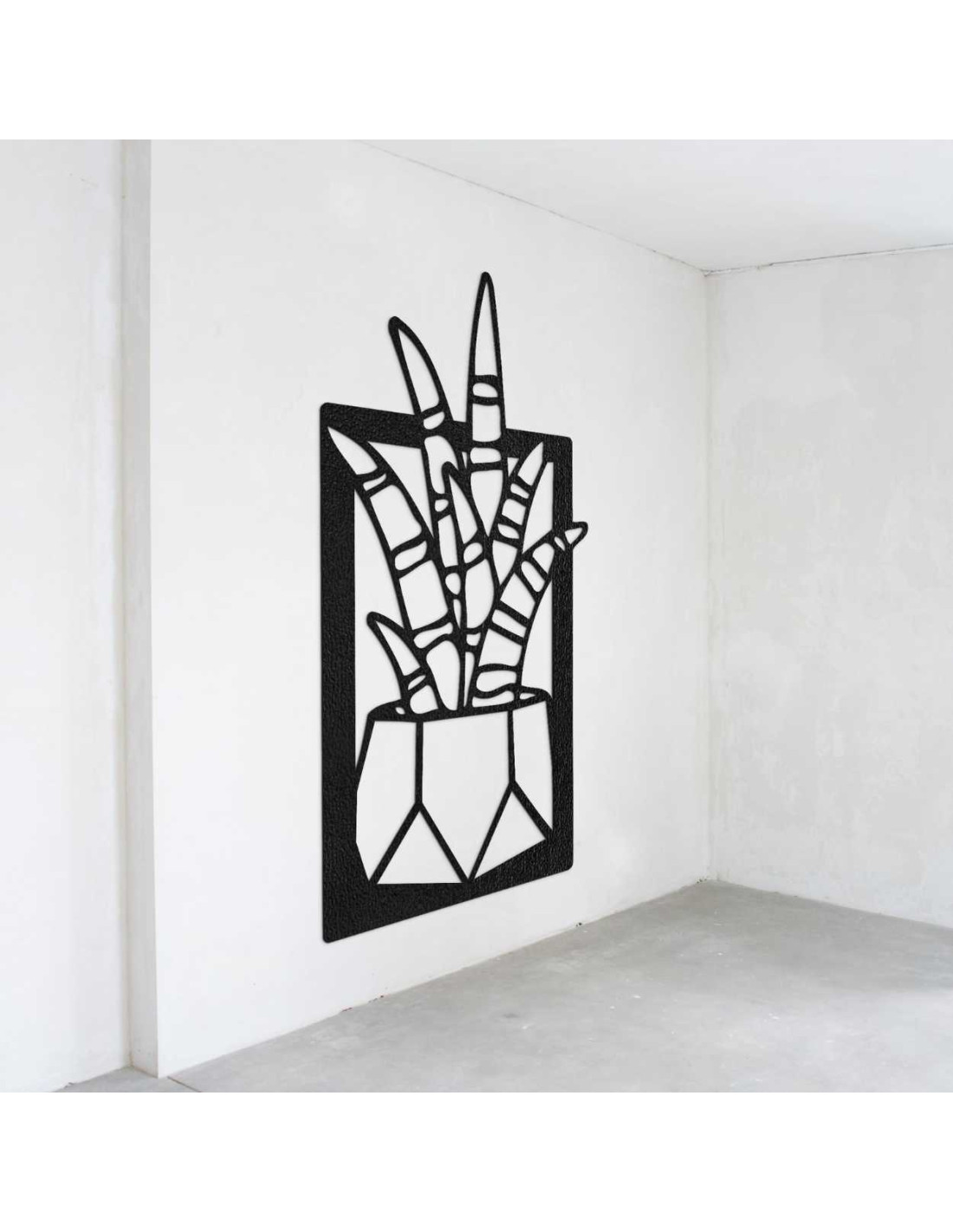 Nowoczesny obraz z drewna z rzeźbionymi kaktusami i roślinami w kwadratowych ramach