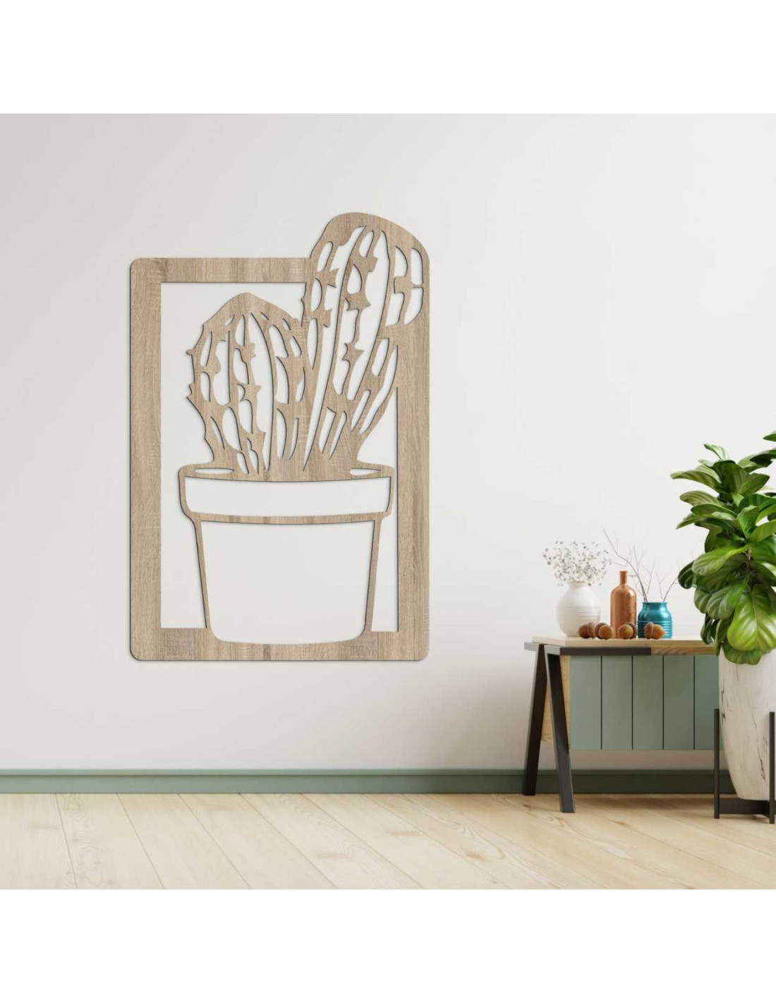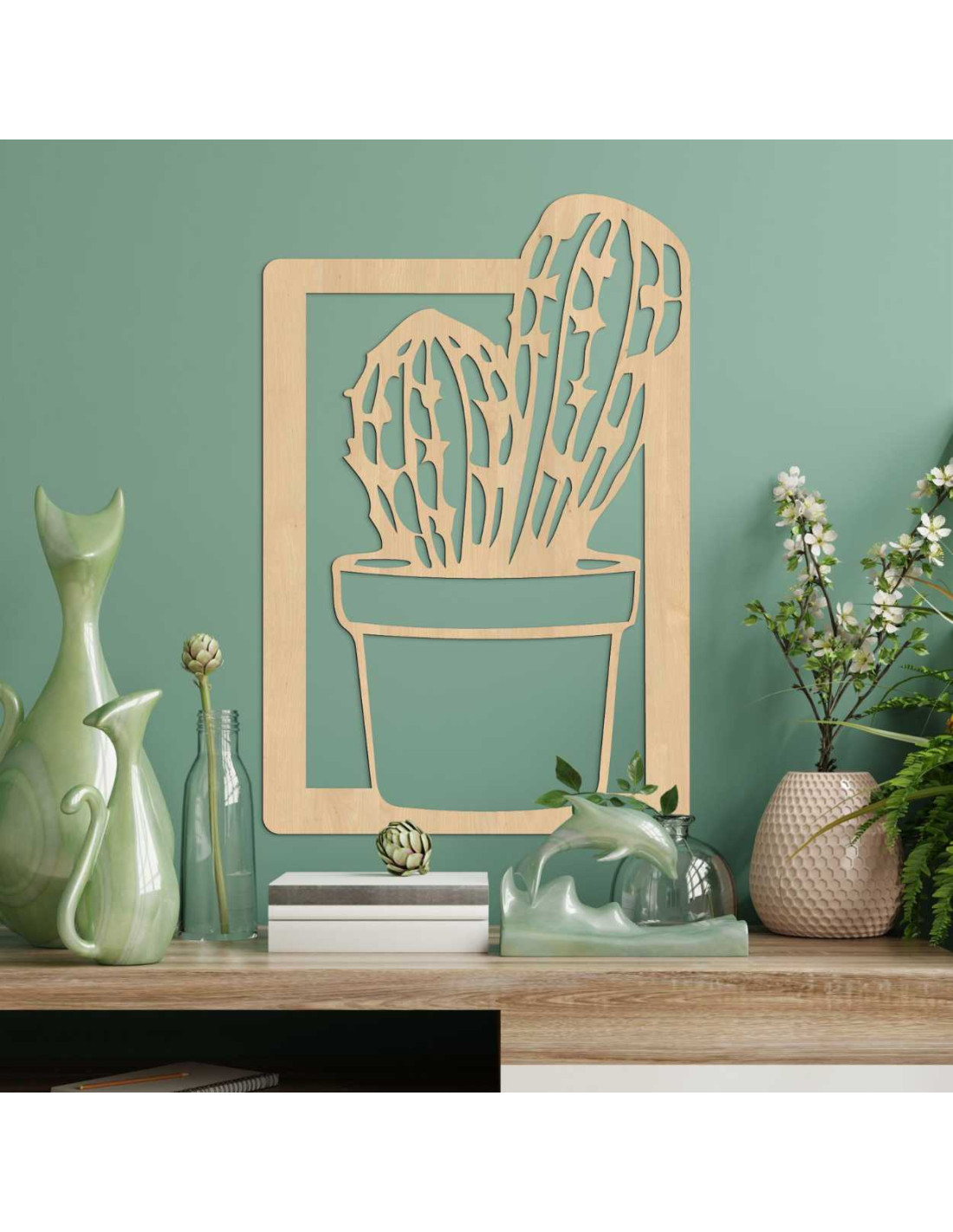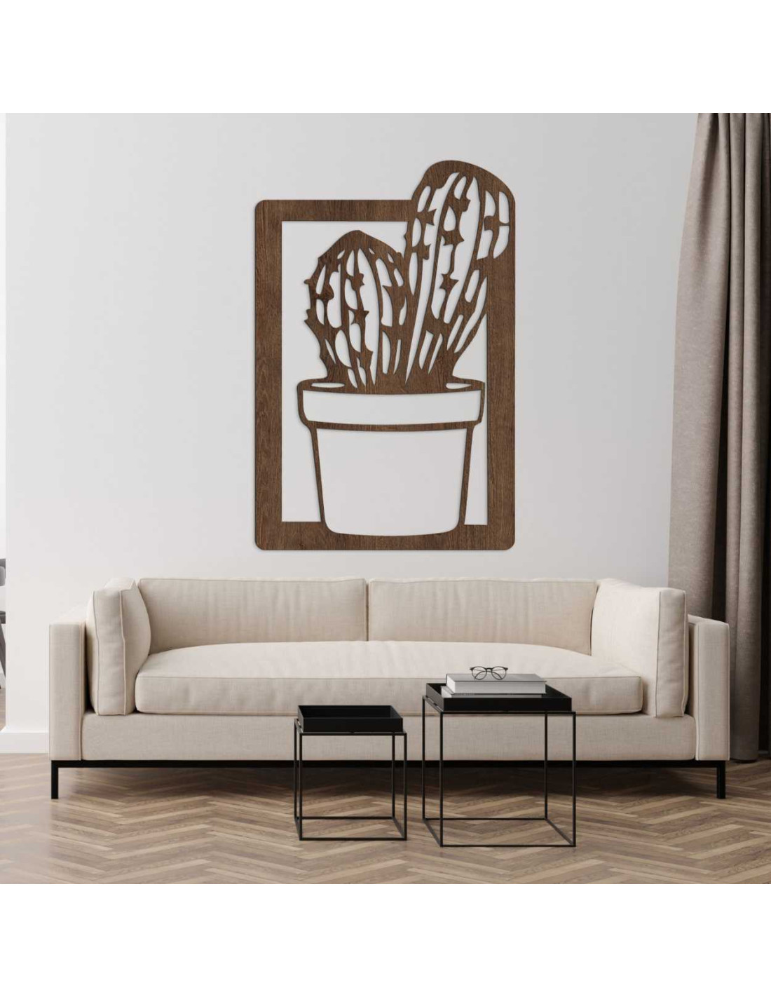 SentopStylowy, drewniany obraz w kształcie kaktusa to idealna dekoracja ścienna dla miłośników naturalnego designu.