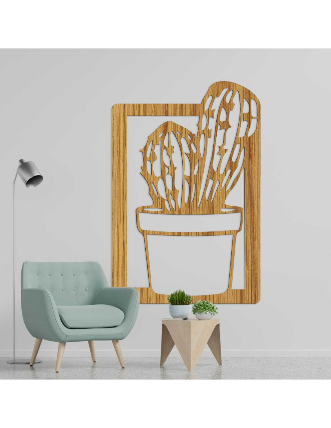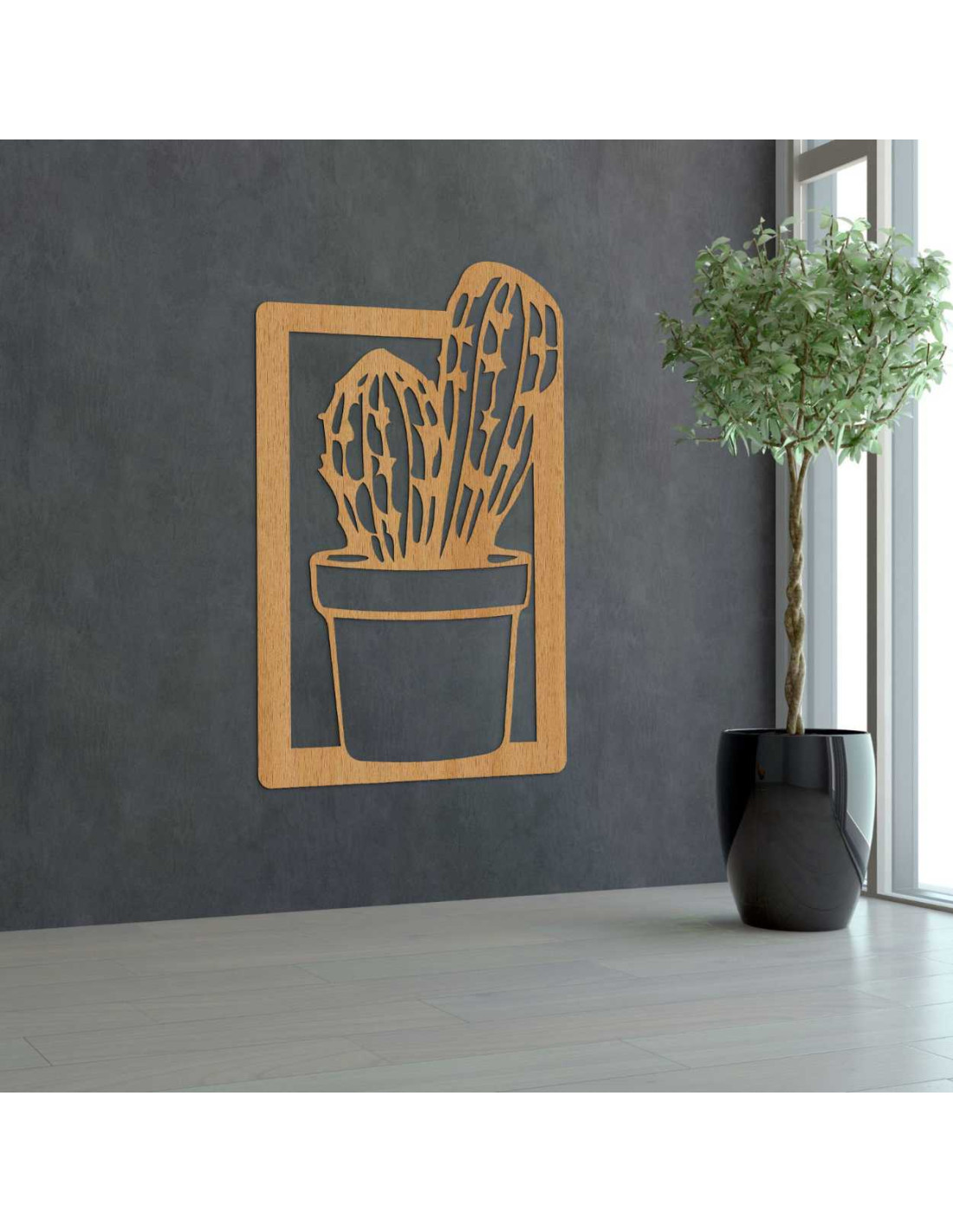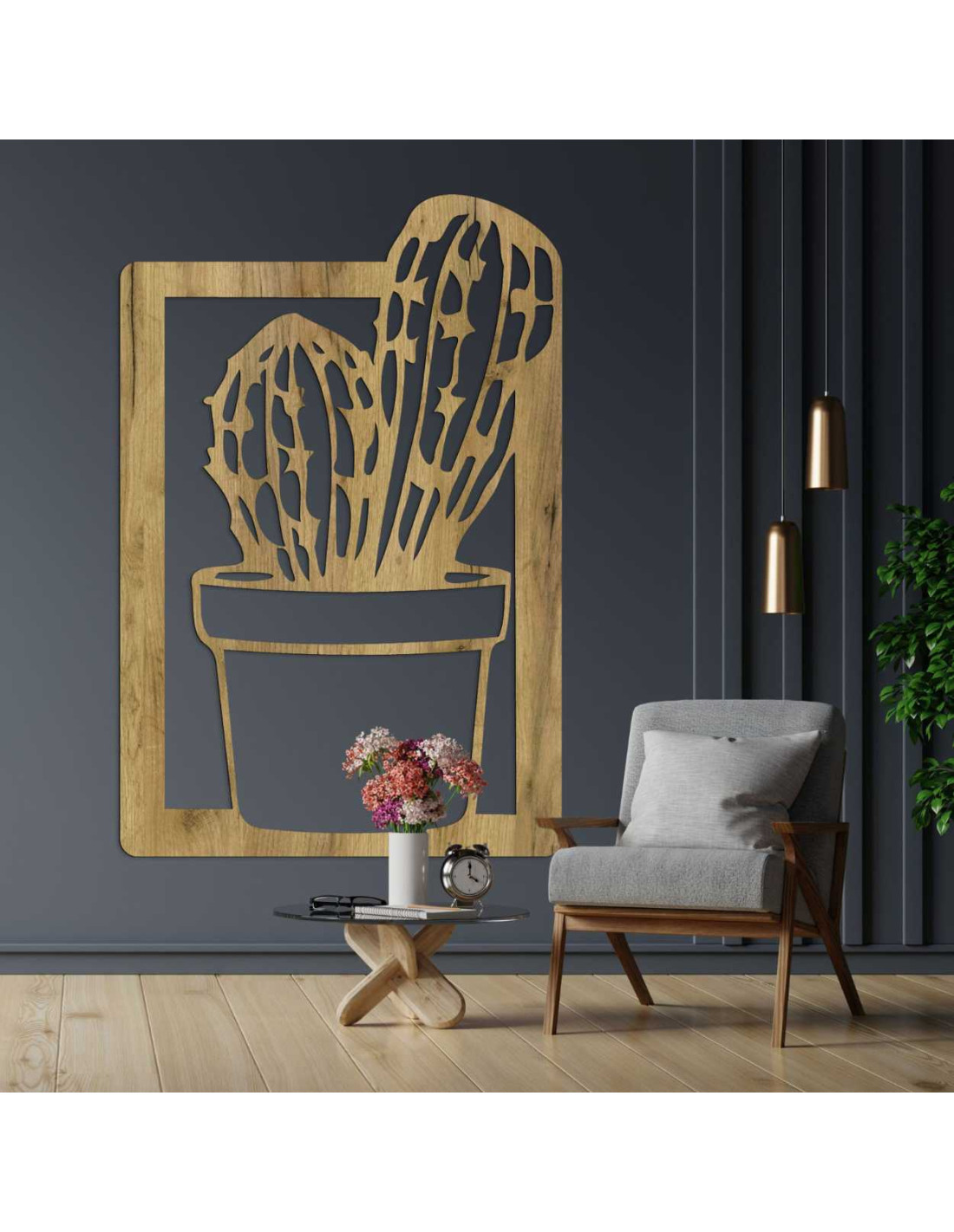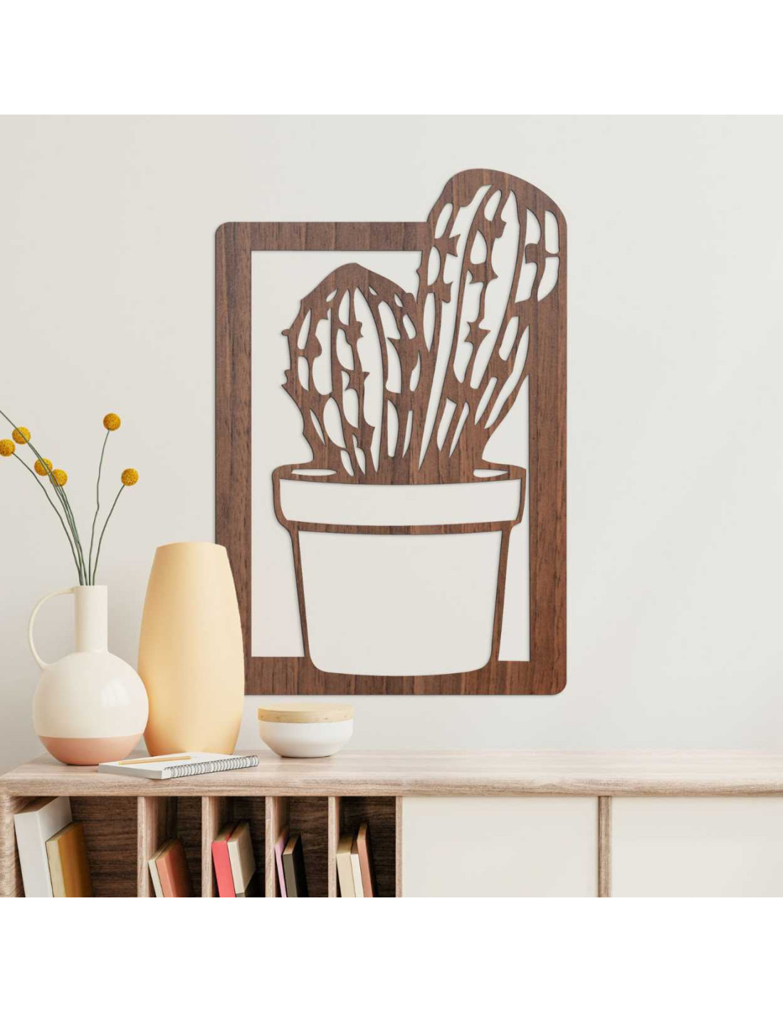 SentopStylowy, drewniany obraz w kształcie kaktusa to idealna dekoracja ścienna dla miłośników naturalnego designu.