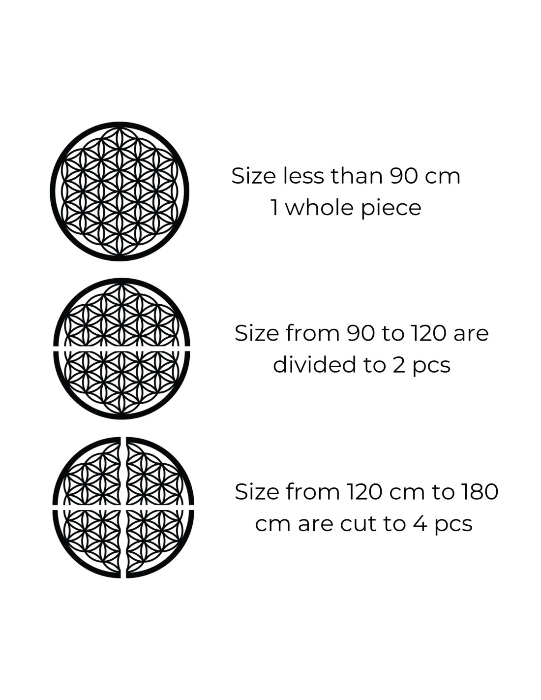 Projekt tej mandali inspirowany jest starożytnym symbolem życia , obecnym w różnych kulturach i reprezentującym fundamentalne zasady wszechświata i życia. Wierzy się , że ma on zdolność do poprawy energii przestrzeni i promowania wewnętrznego spokoju. Kwiat Życia to symbol reprezentujący harmonię, jedność i wzajemną więź wszystkiego, co nas otacza .