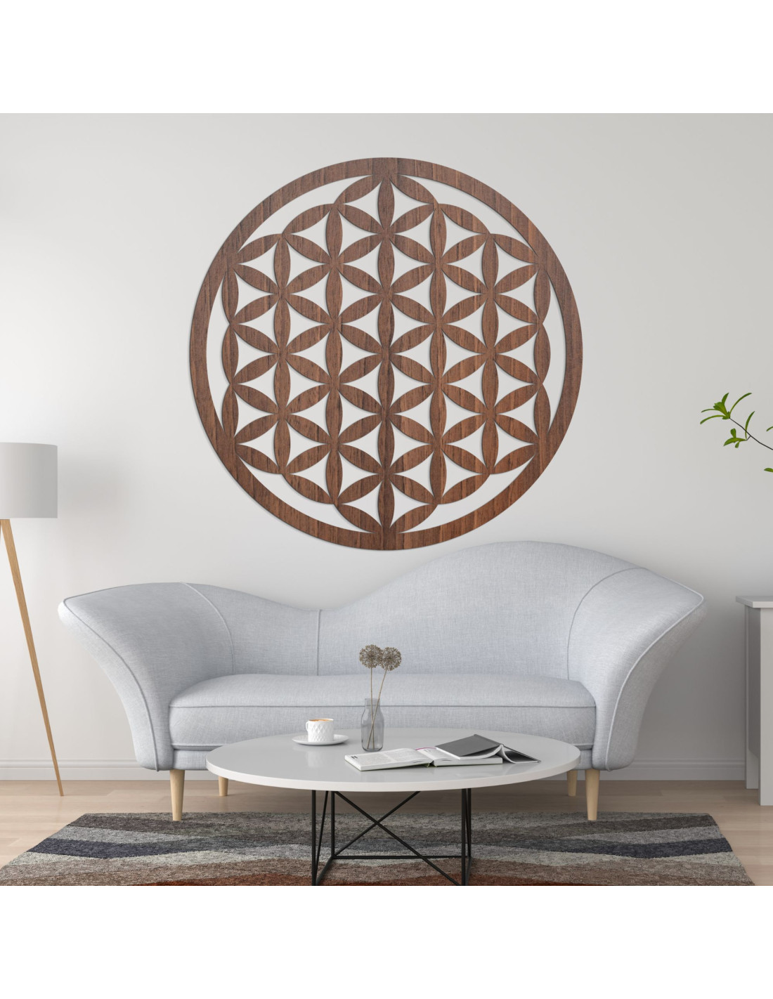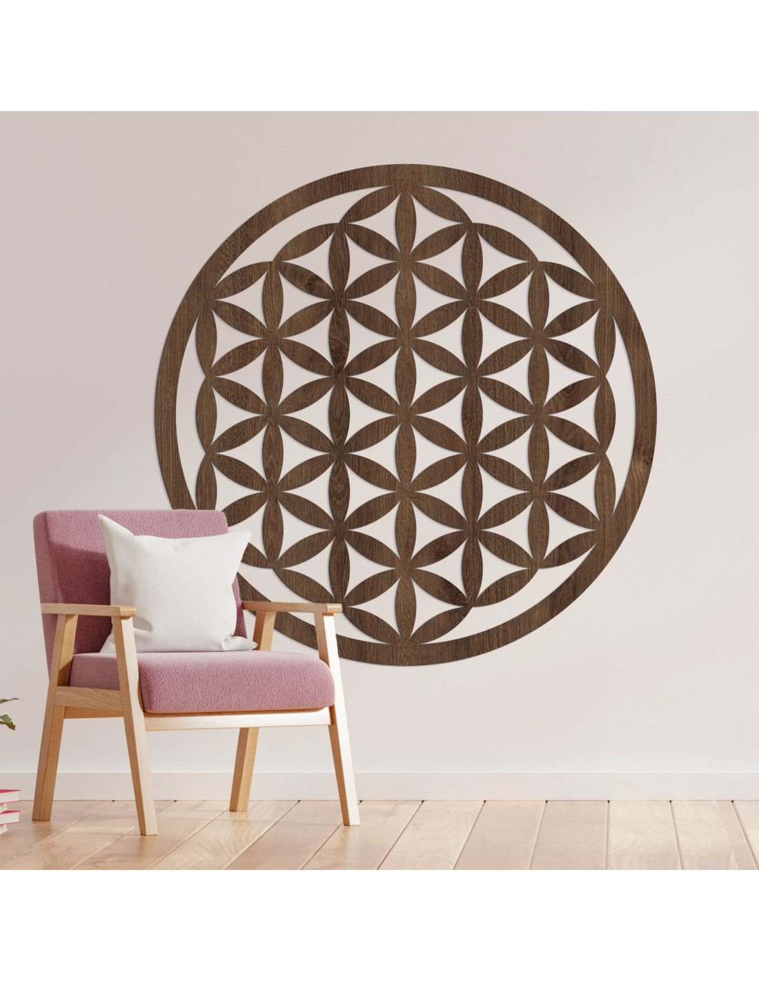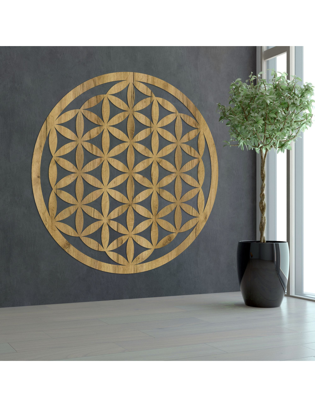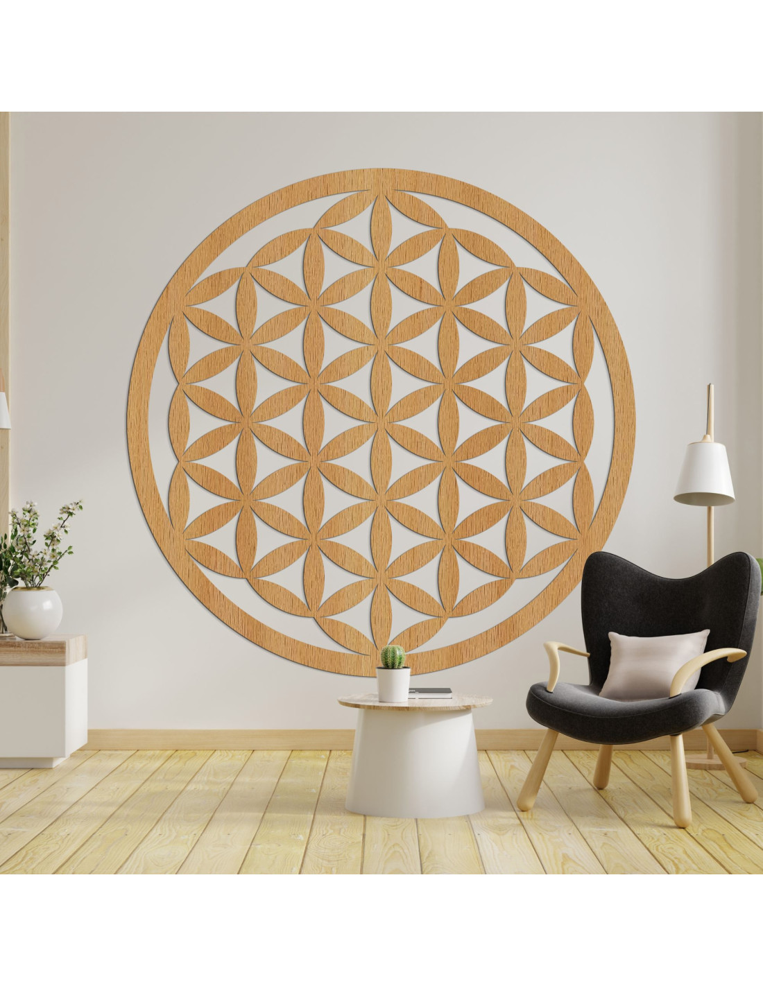 Drewniana dekoracja z motywem kwiatu życia ożywi Twoją przestrzeń symbolem jedności, harmonii i nieskończonej energii.