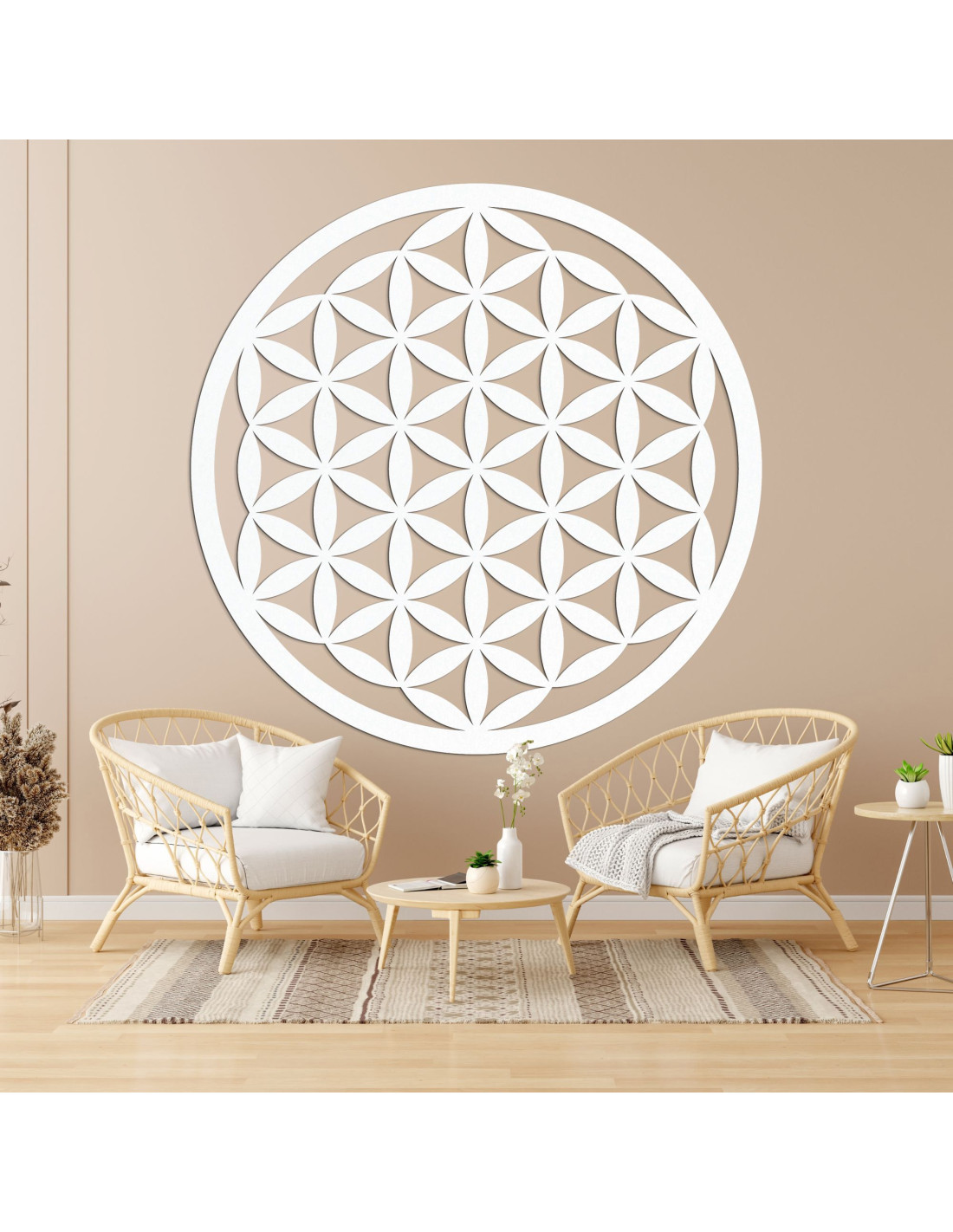 - Zrównoważona energia: Kwiat Życia jest symbolem doskonałości, który wprowadza harmonię do przestrzeni.