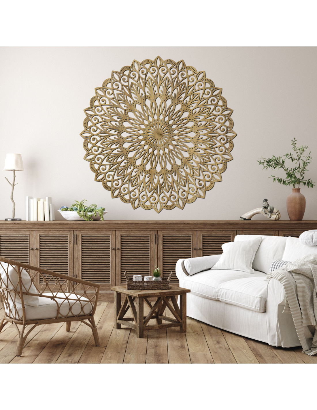 Drewniana mandala na ścianę - idealny obraz harmonii w przestrzeni - HELGA