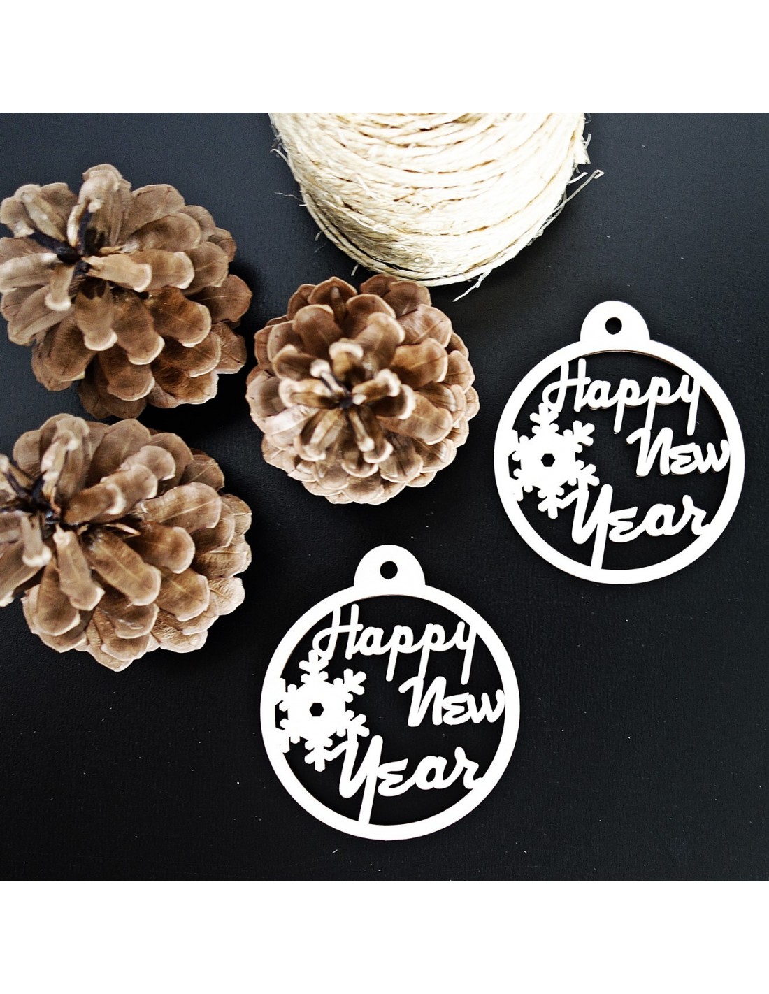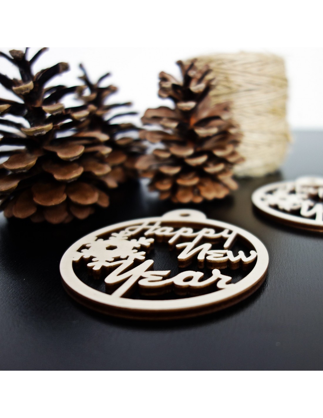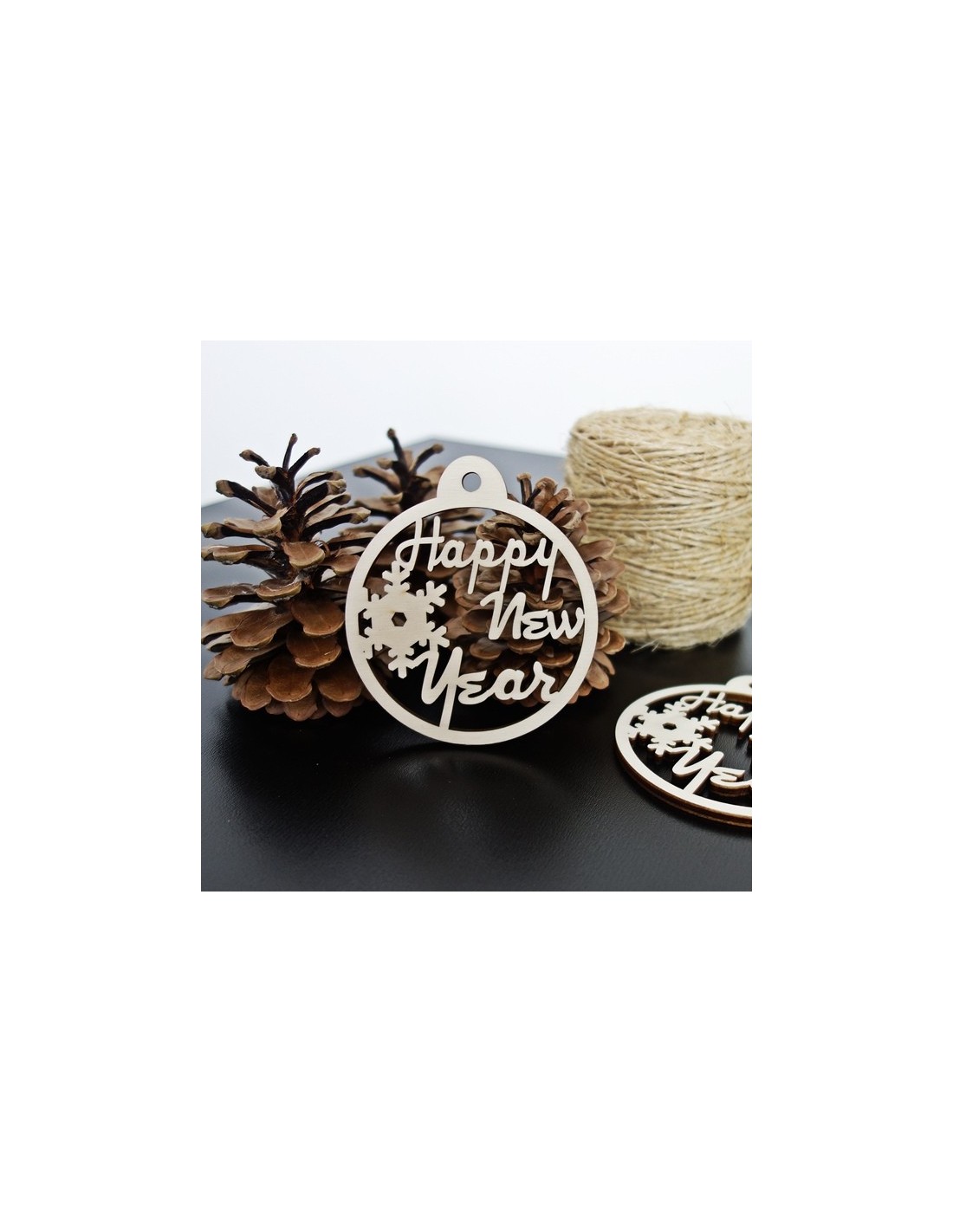 Drewniana ozdoba choinkowa - Nowy Rok, wymiary: 79x90 mm