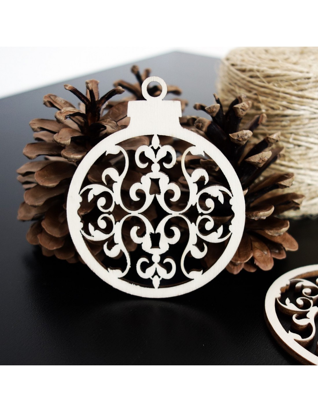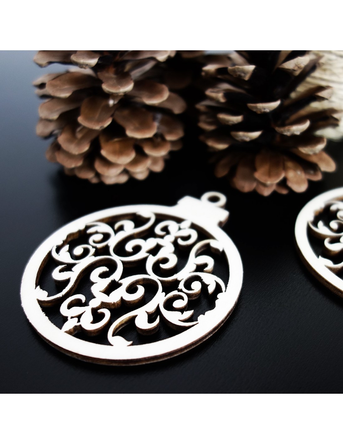 Drewniana ozdoba-bombka, wymiary: 79x90 mm