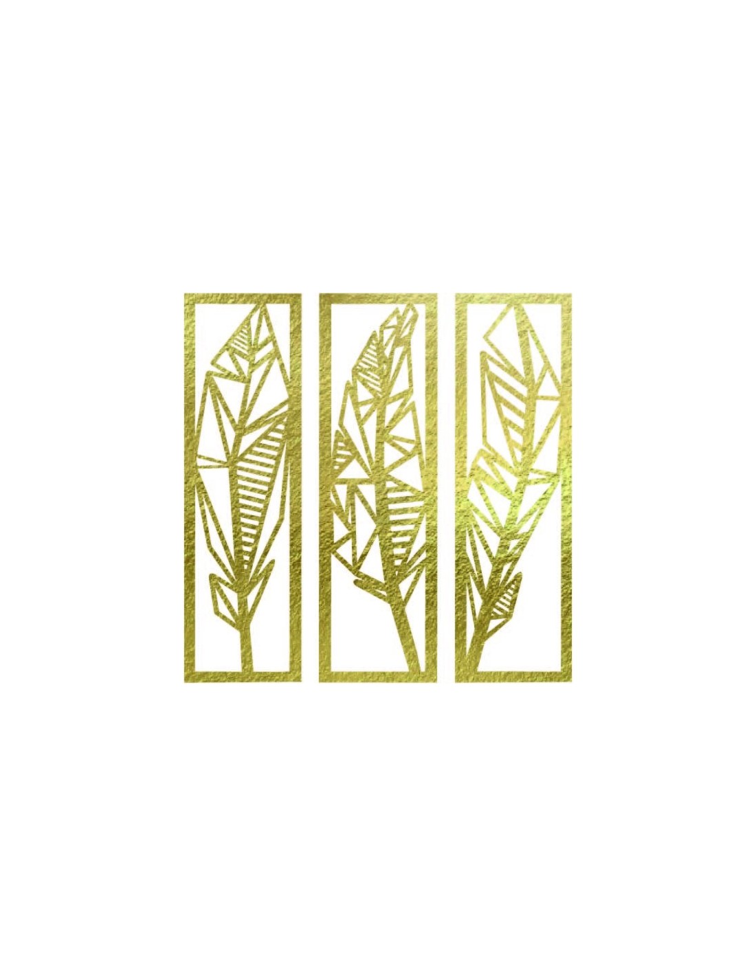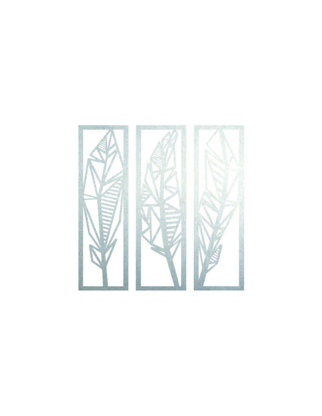 Obraz składa się z trzech części, a podane wymiary dekoracji obejmują spodziewane odstępy między poszczególnymi częściami po naklejeniu ich na ścianę (jak na zdjęciu).
