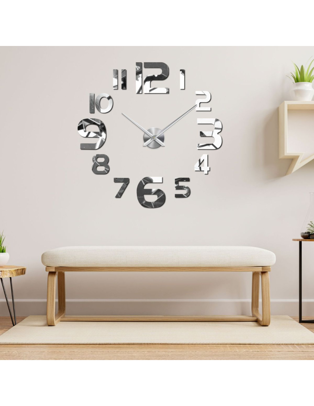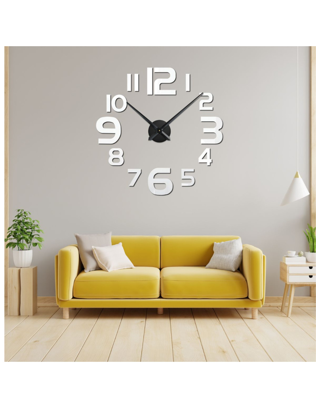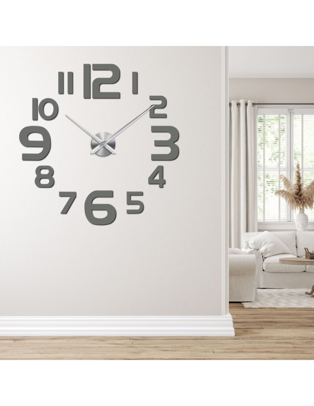Stylowy zegar samoprzylepny wykonany z wytrzymałego pleksiglasu o nowoczesnym, minimalistycznym wzornictwie.