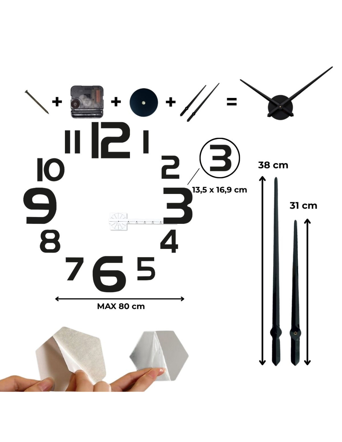 Zegar zaprojektowano tak, aby jego montaż był łatwy - wystarczy przykleić go na gładkiej, czystej powierzchni bez potrzeby używania narzędzi i wiercenia.