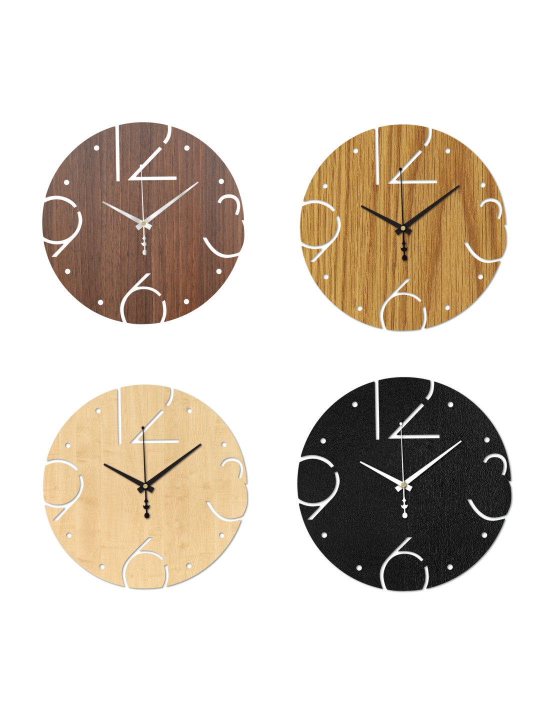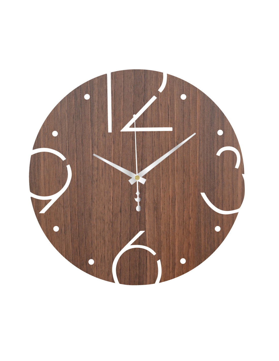 Nowoczesny zegar ścienny wykonany z najwyższej jakości płyty HDF dostępny w trzech rozmiarach - 30, 40 i 50 cm.
