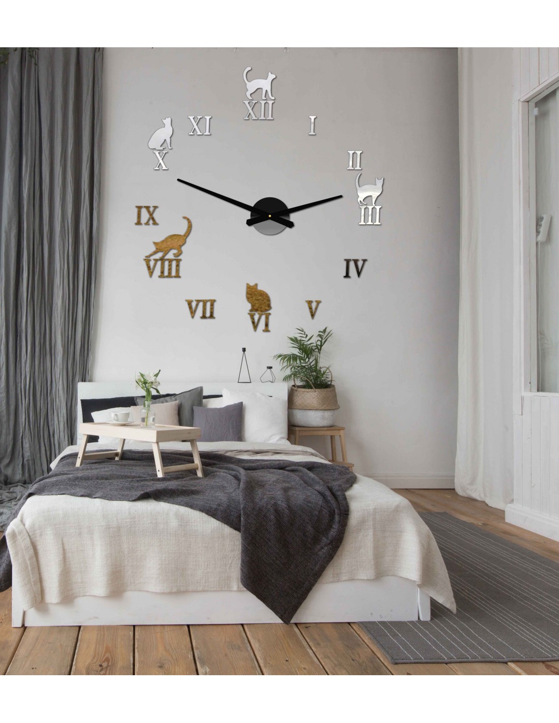 Nowoczesny zegar ścienny z motywem kota wykonany z pleksi, który ożywi Twoją pustą ścianę i doda Twojemu wnętrzu stylowego i zabawnego akcentu .
