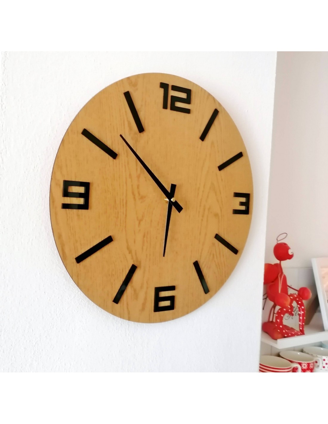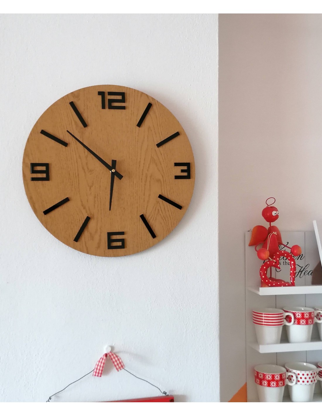 - Drewniane wskazówki: wskazówka godzinowa: 11 cm, wskazówka minutowa: 14 cm