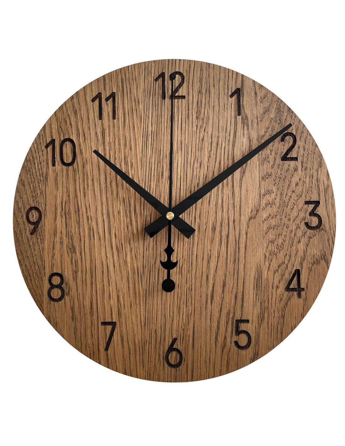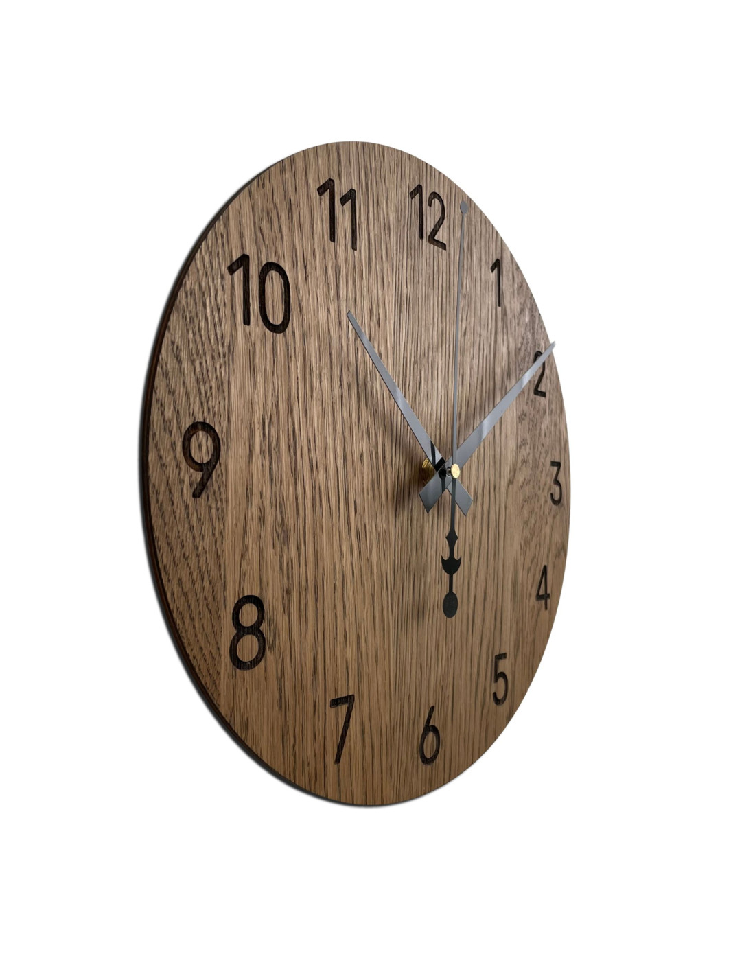 Ten ręcznie wykonany zegar ścienny z dębowej sklejki to unikatowy produkt słowacki, którego każdy wariant jest oryginalny. Dzięki naturalnemu drewnu dębowemu, każdy z nich różni się nieznacznie strukturą i odcieniem, co czyni go niepowtarzalnym. Produkcja odbywa się ręcznie na Słowacji (UE), a ostateczny kolor drewna może się nieznacznie różnić w zależności od jego naturalnego usłojenia.