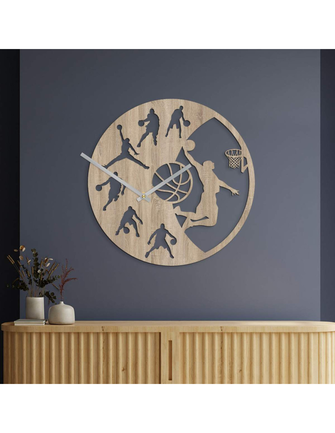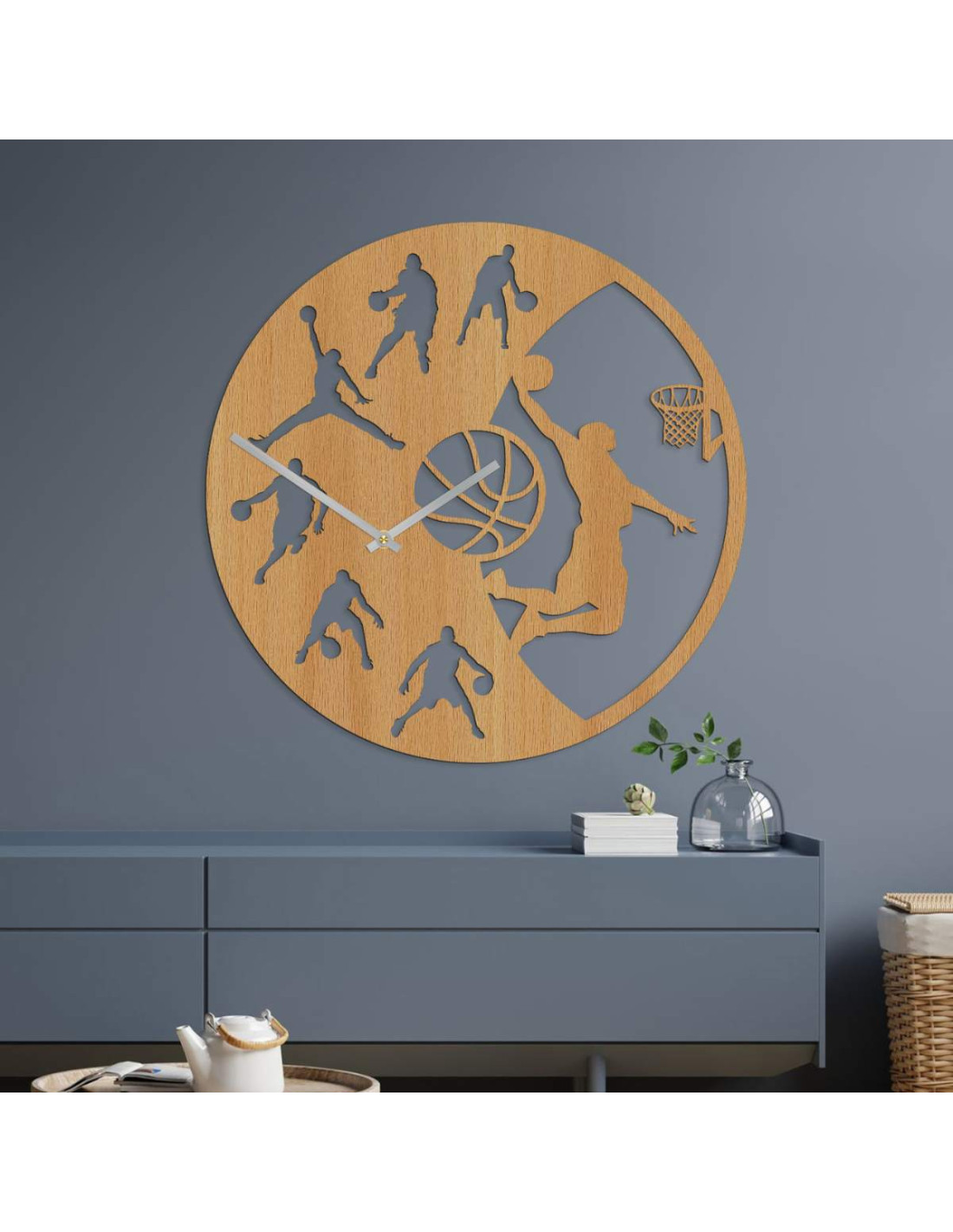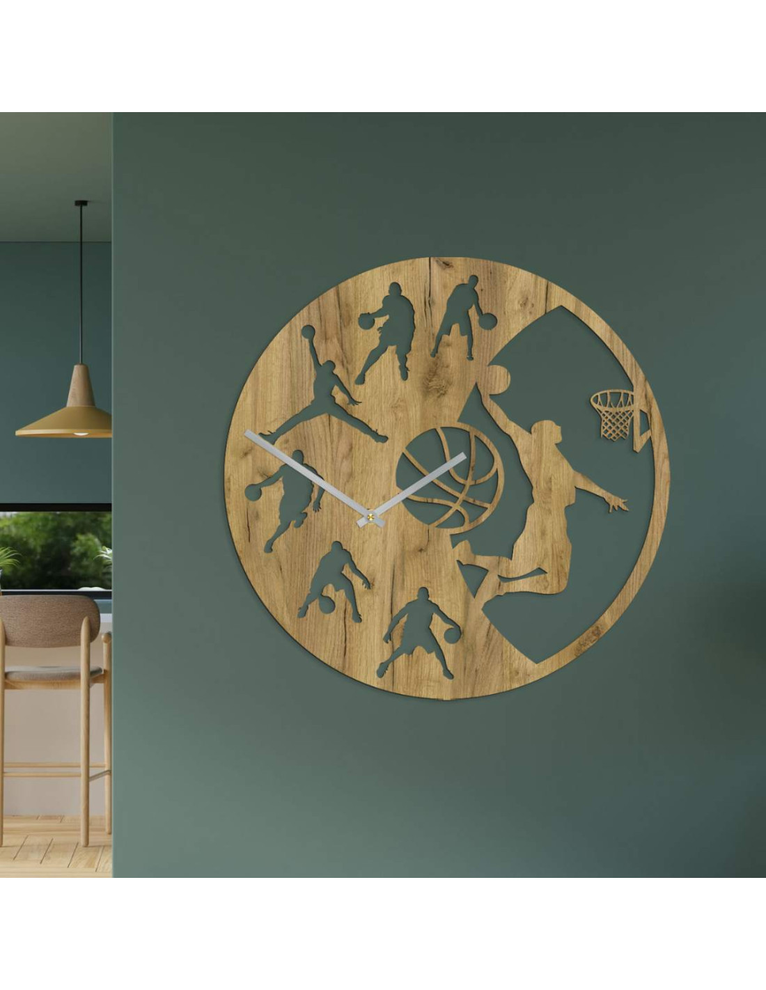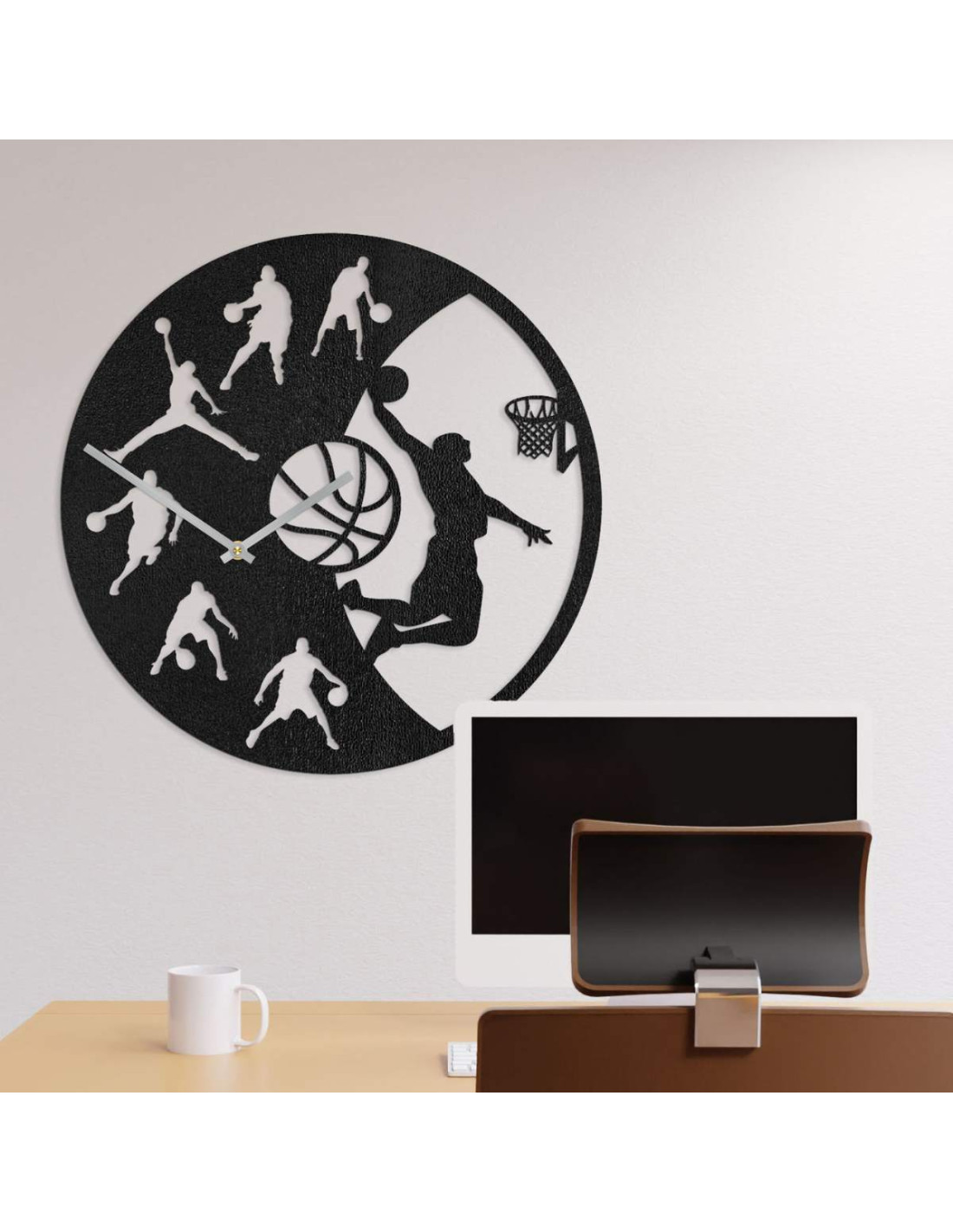 Wprowadź energię gry do swojego wnętrza dzięki temu nowoczesnemu zegarowi ściennemu z motywem koszykówki.