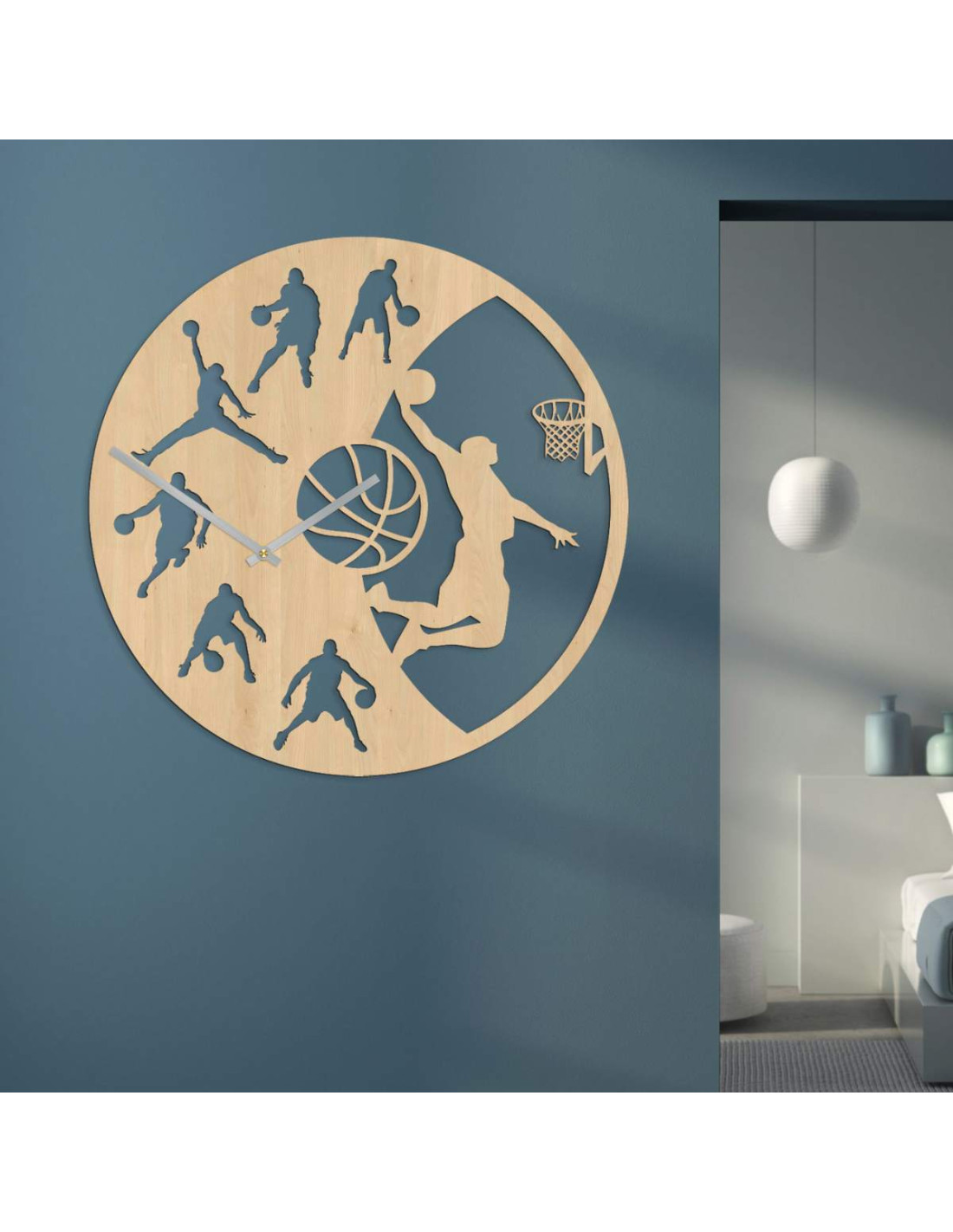 zegar ścienny z koszykarzem do salonu