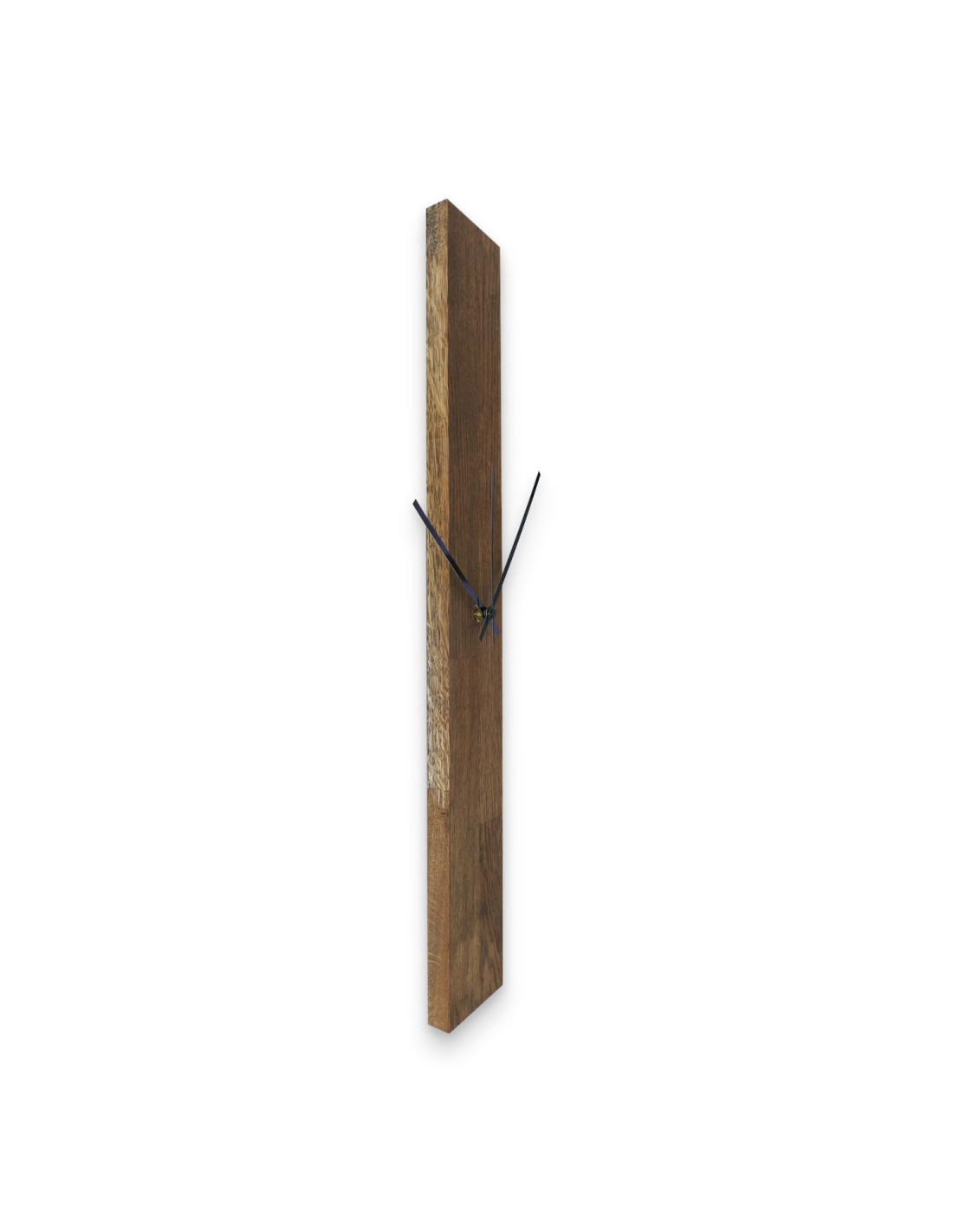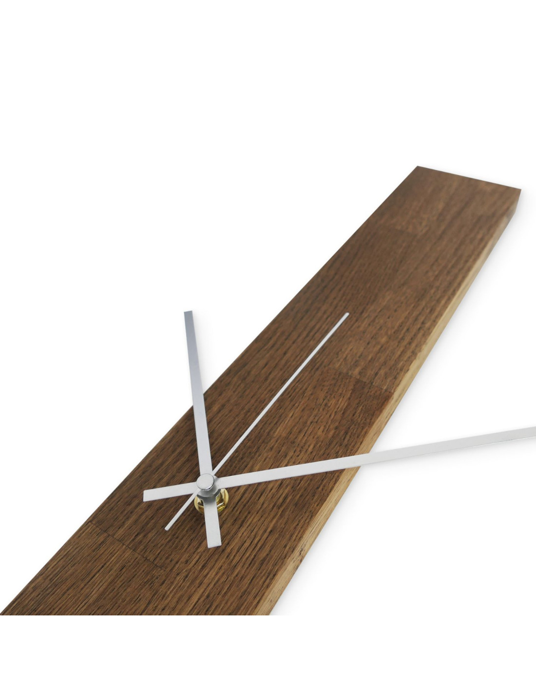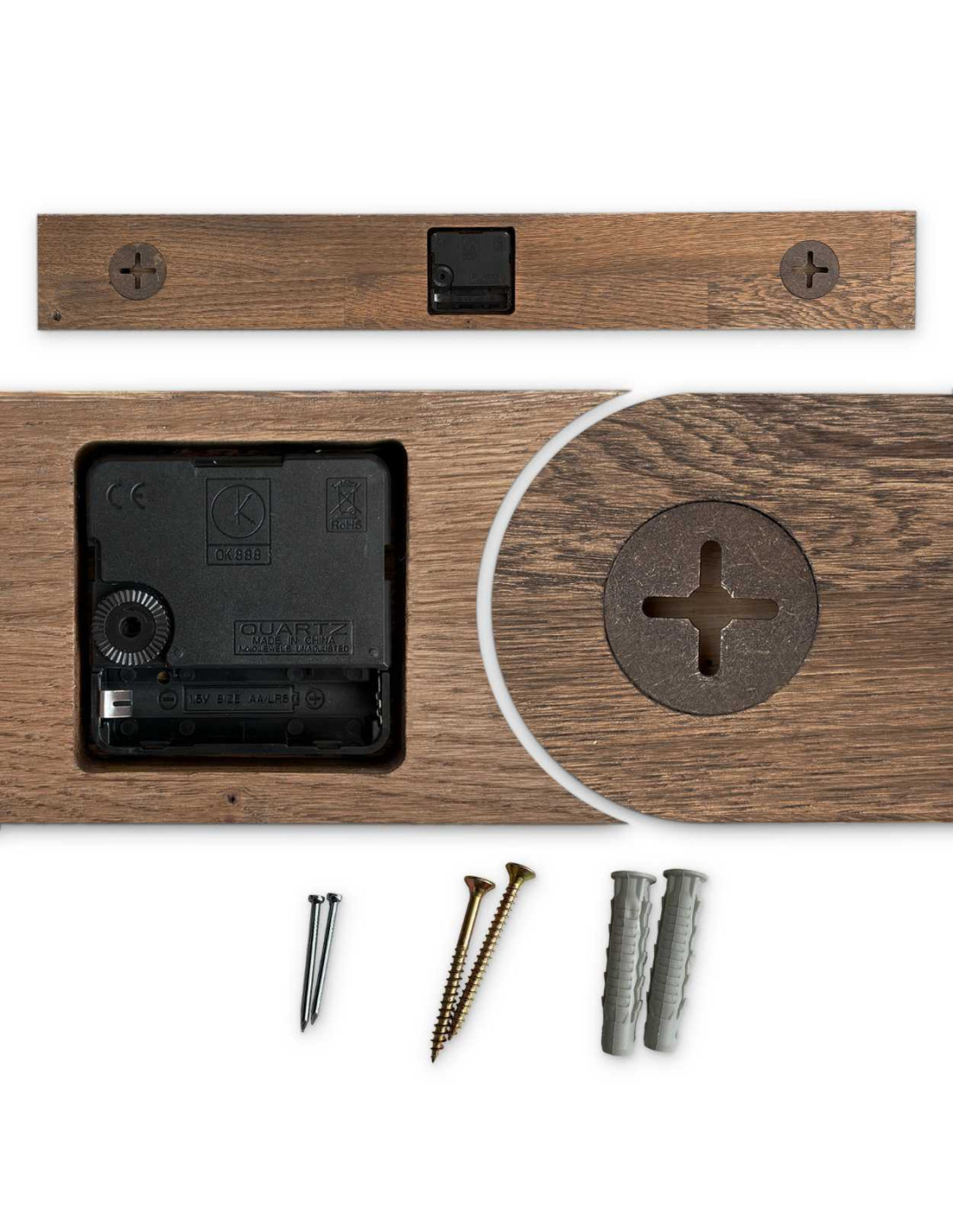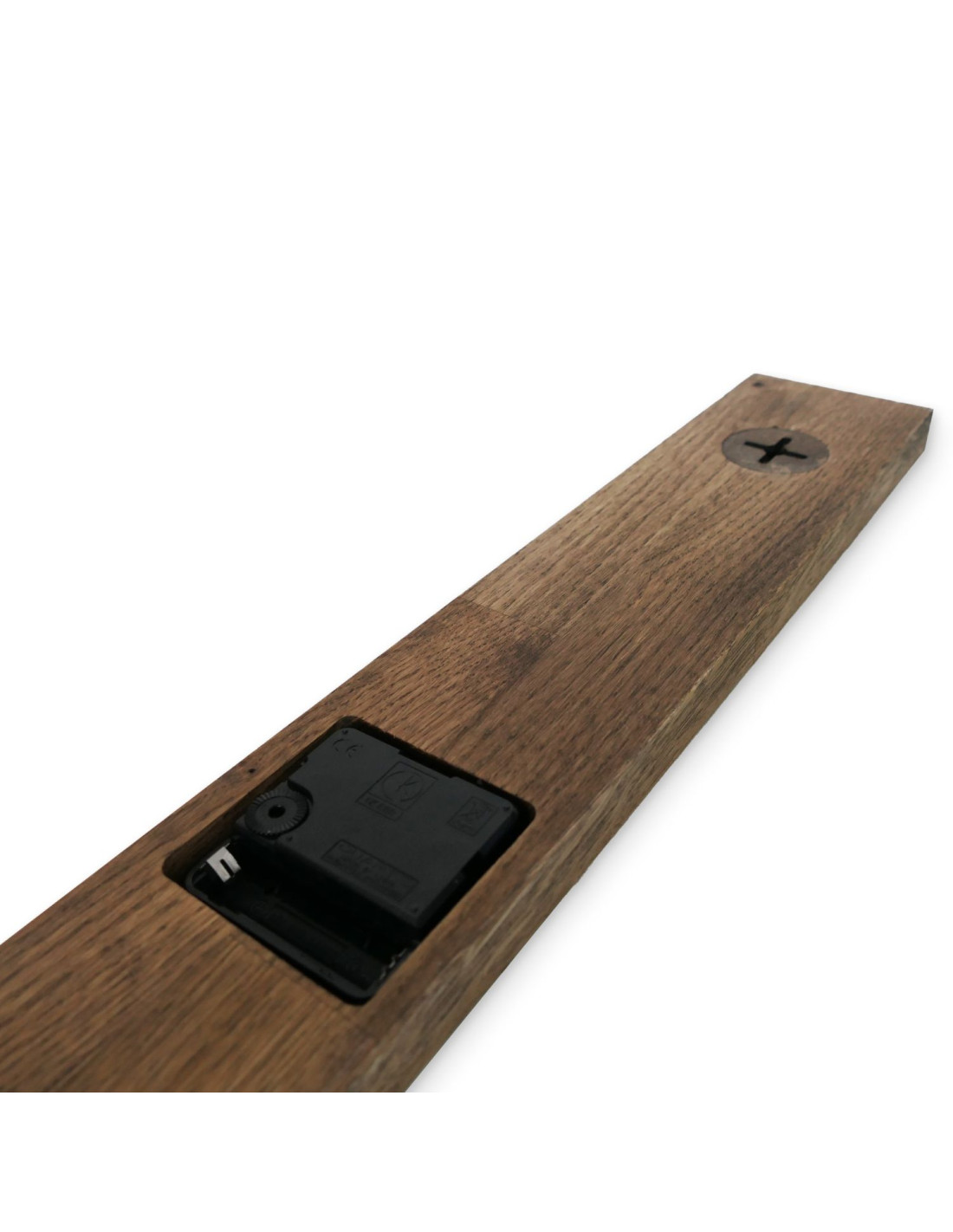 Każdy zegar wykonany jest z litych paneli dębowych, które najpierw są precyzyjnie wycinane przy użyciu technologii CNC, nadając im pożądany kształt i rozmiar.