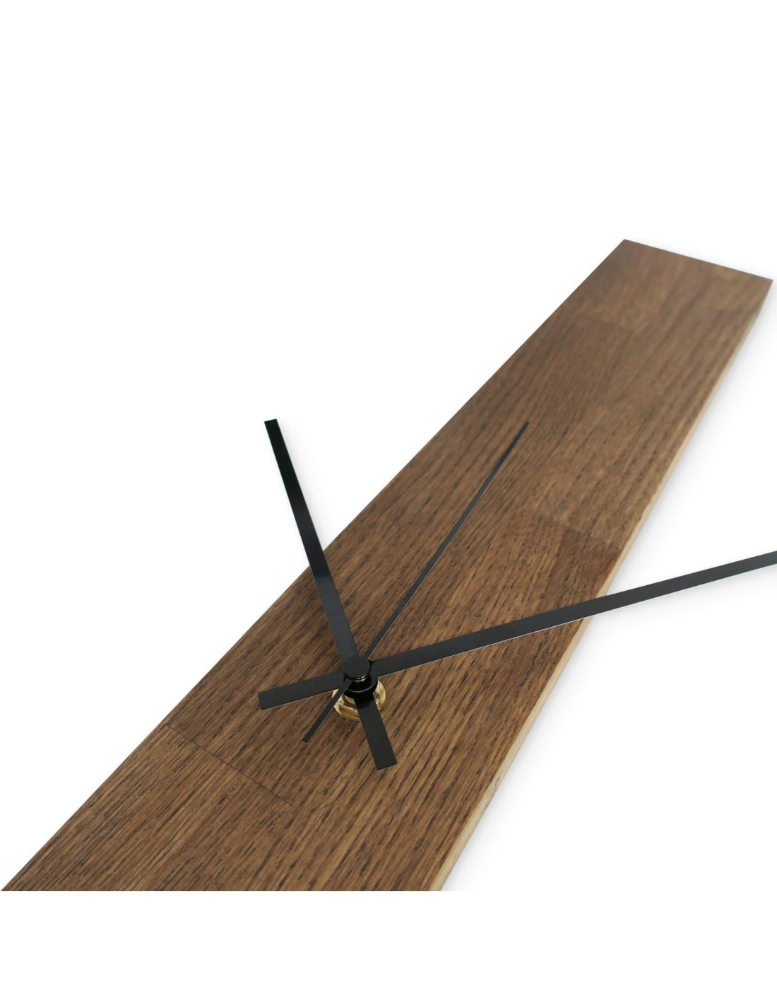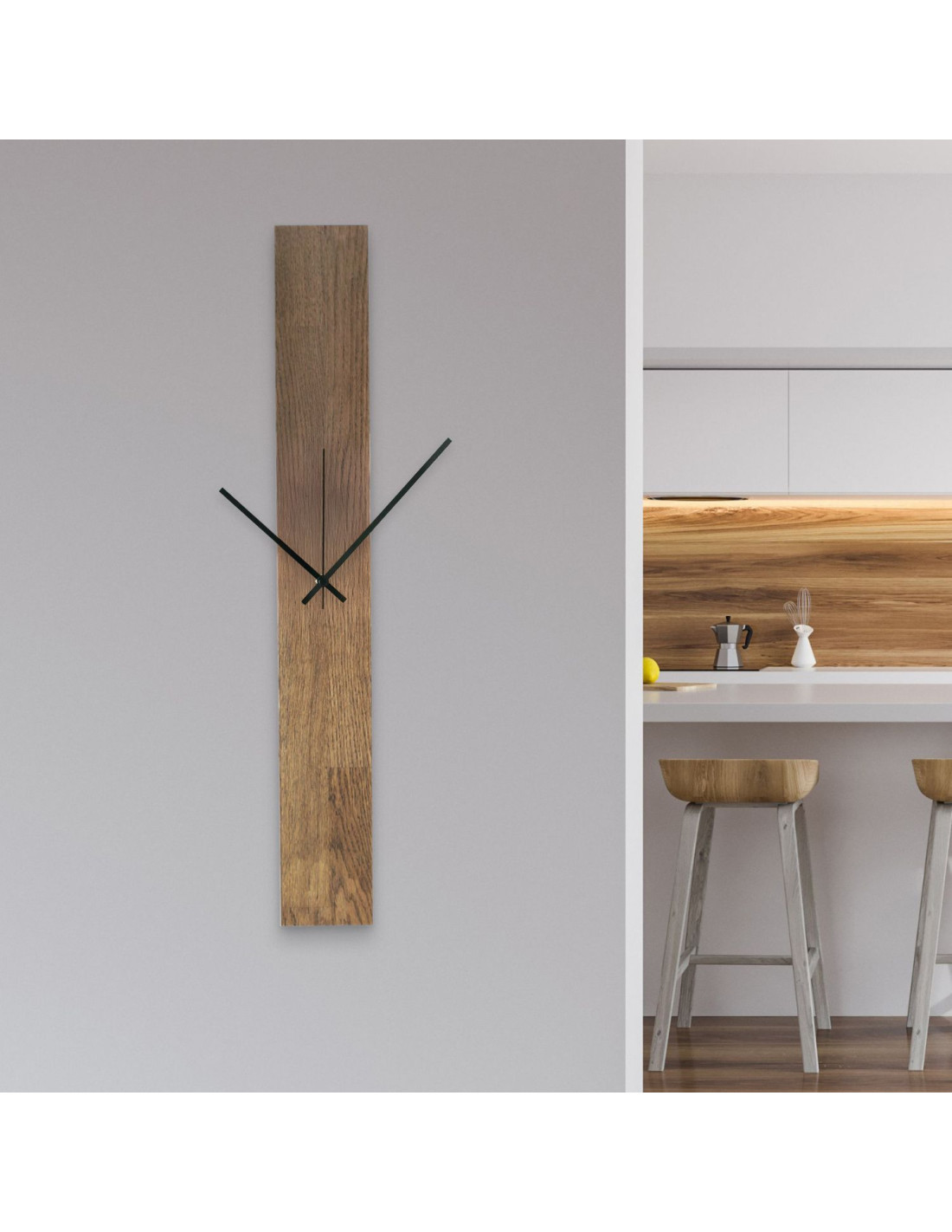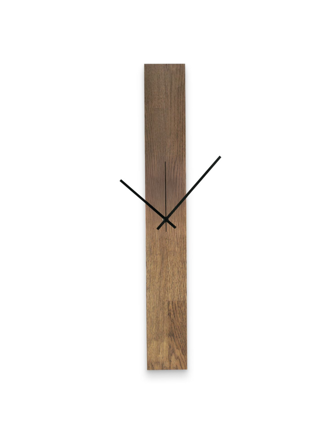 Każdy zegar wykonany jest z litych paneli dębowych, które najpierw są precyzyjnie wycinane przy użyciu technologii CNC, nadając im pożądany kształt i rozmiar.