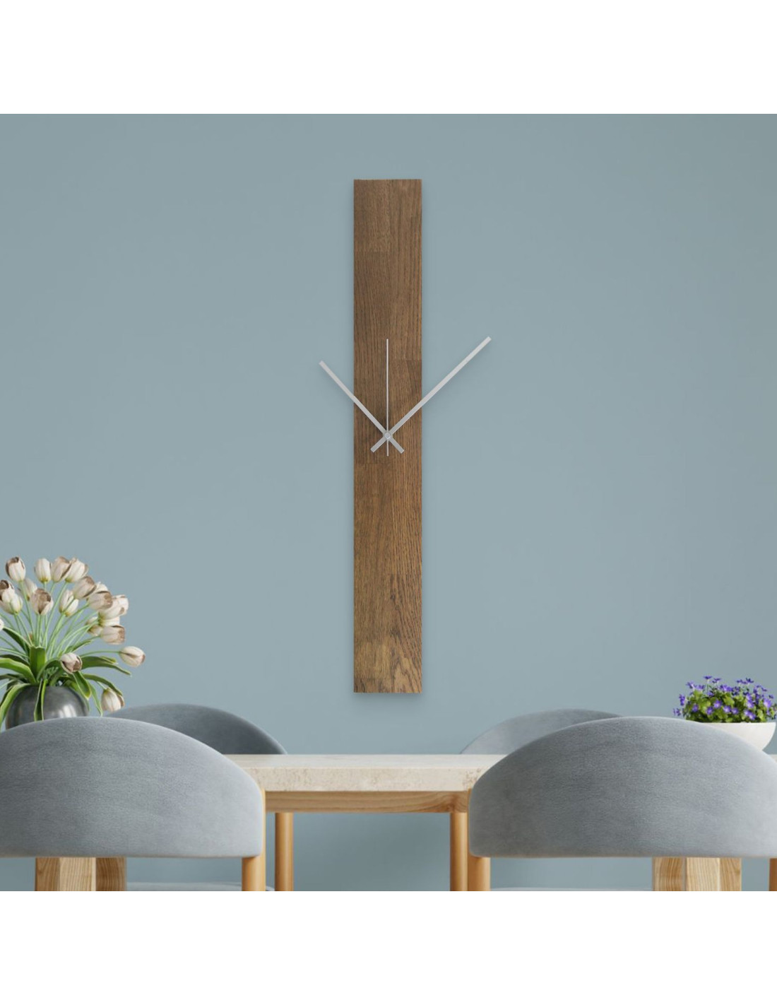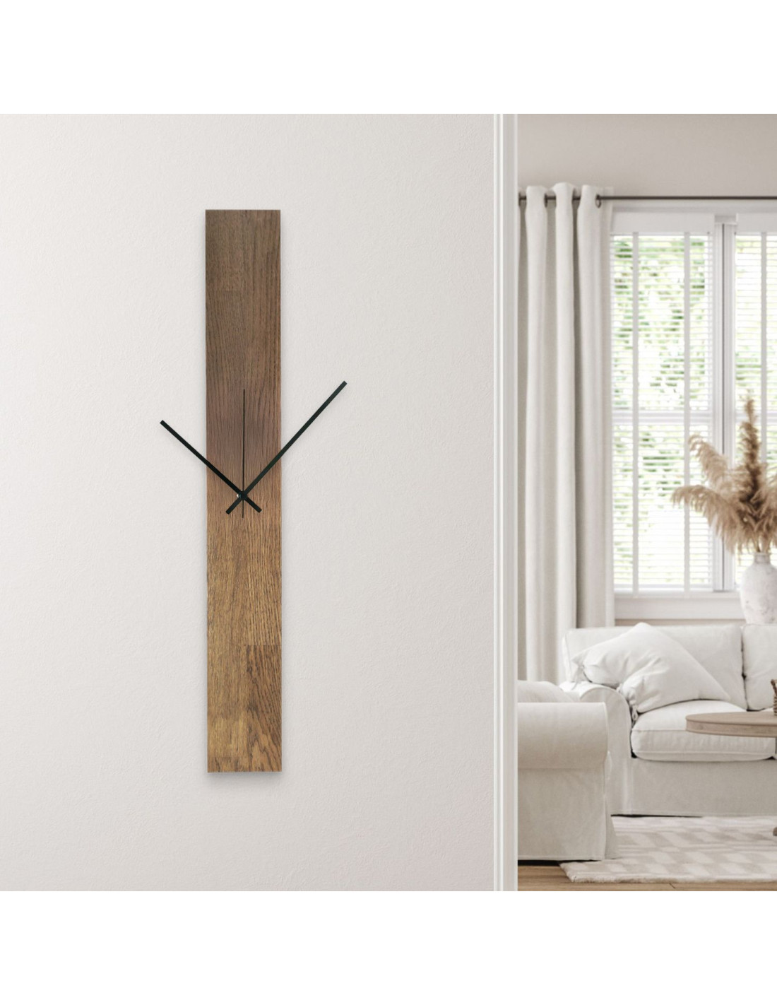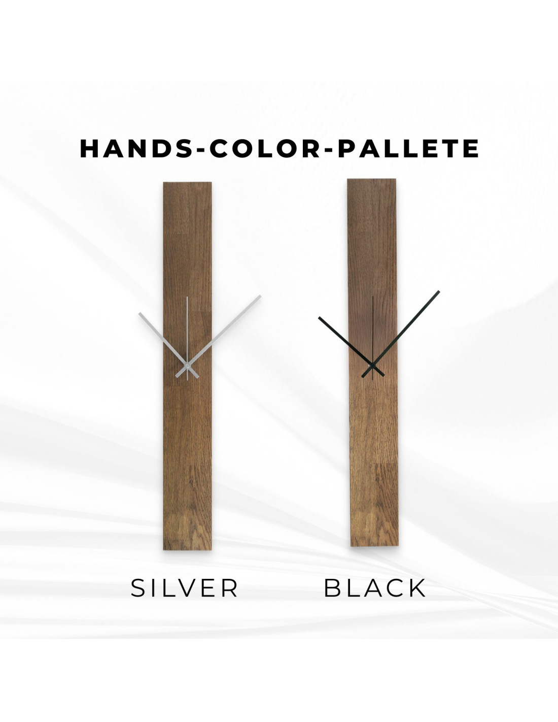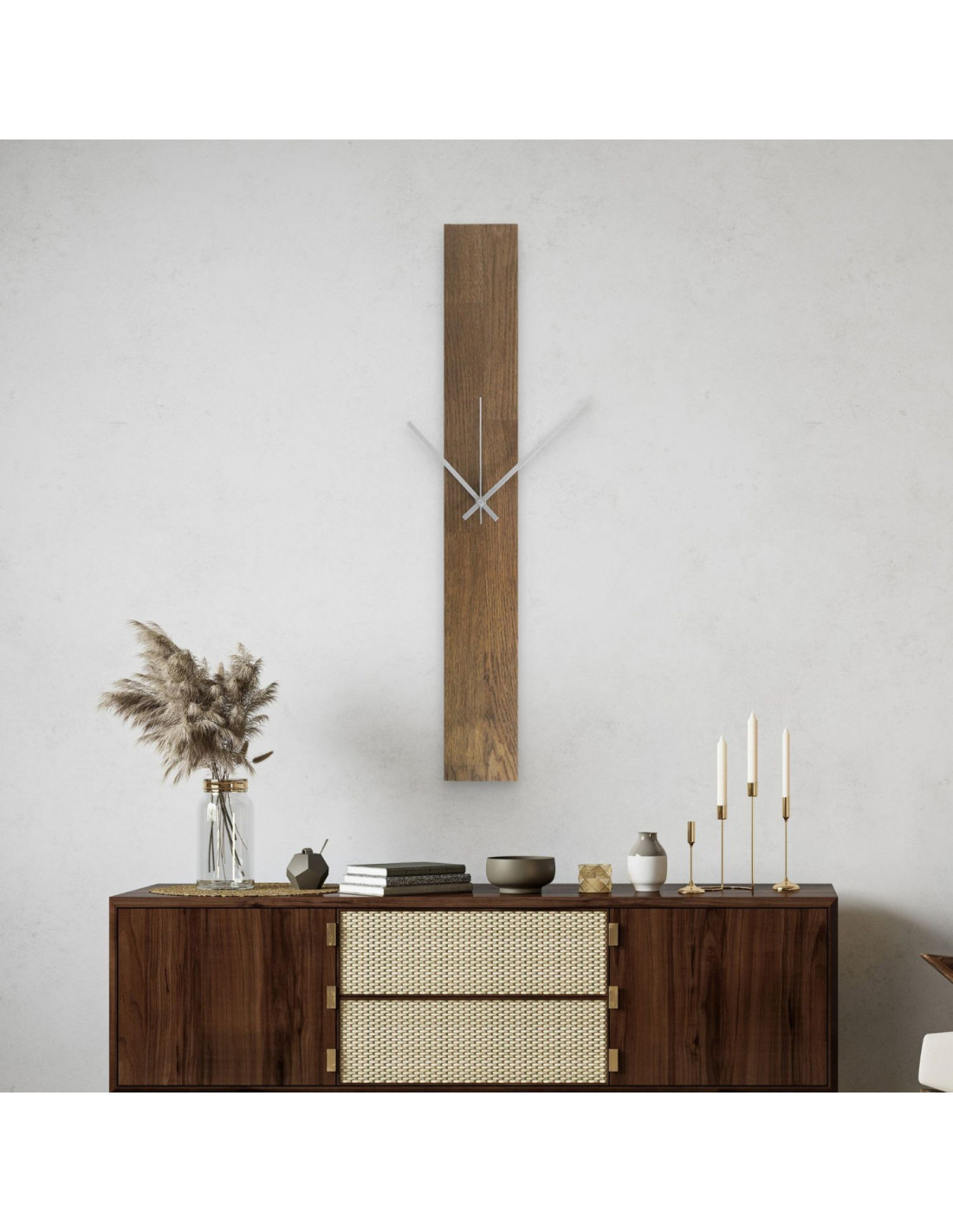 Każdy zegar wykonany jest z litych paneli dębowych, które najpierw są precyzyjnie wycinane przy użyciu technologii CNC, nadając im pożądany kształt i rozmiar.