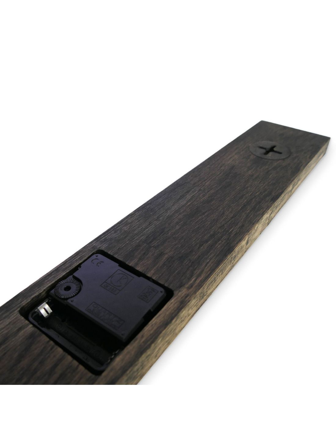 Każdy zegar wykonany jest z litych paneli dębowych, które najpierw są precyzyjnie wycinane przy użyciu technologii CNC, nadając im pożądany kształt i rozmiar.