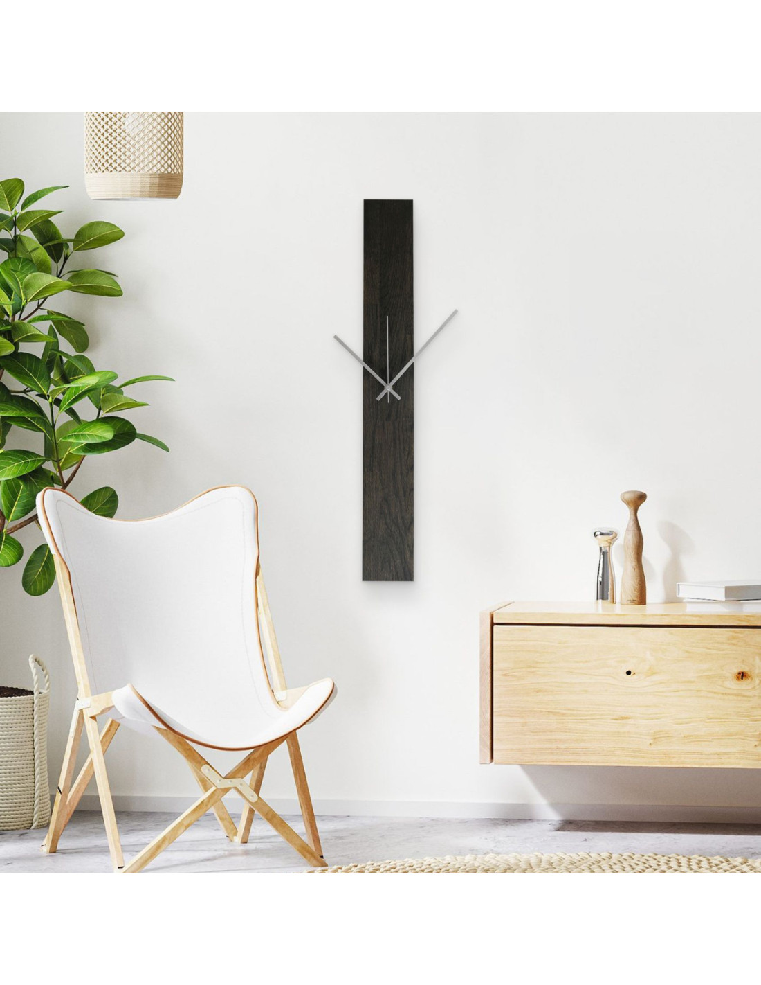 Designerskie zegary ścienne wykonane z ciemnego, litego drewna są ucieleśnieniem elegancji i prostoty.