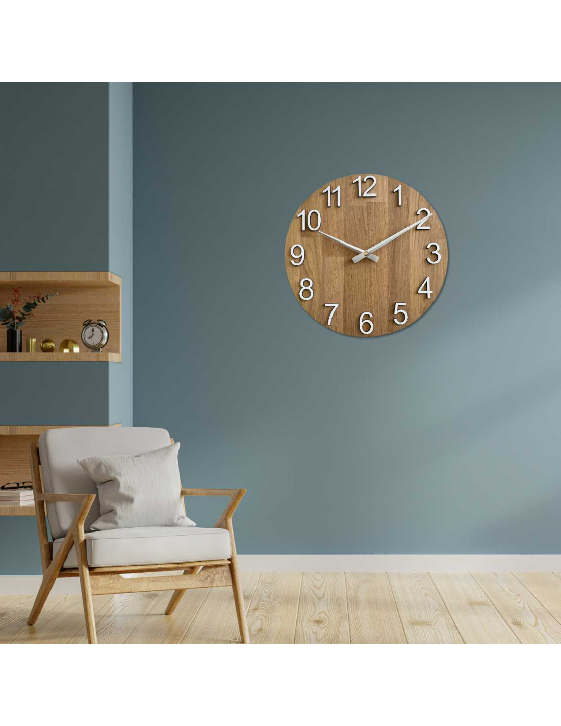 Zegar sprawdzi się w każdym pomieszczeniu: od salonu, przez kuchnię, po biuro lub kawiarnię, tworząc przyjemną atmosferę bez hałasu.